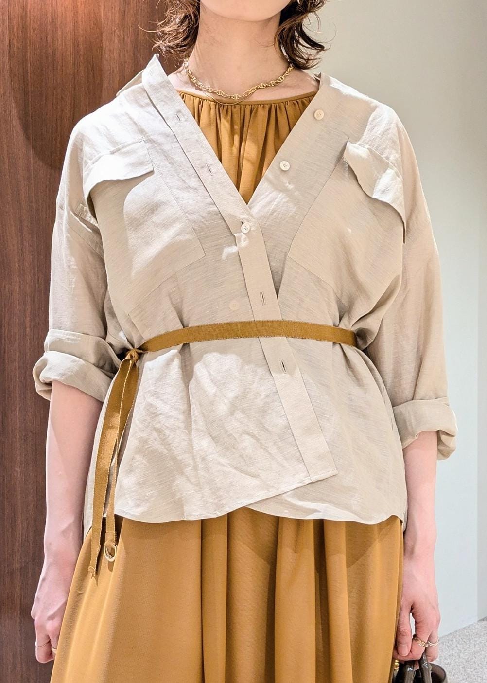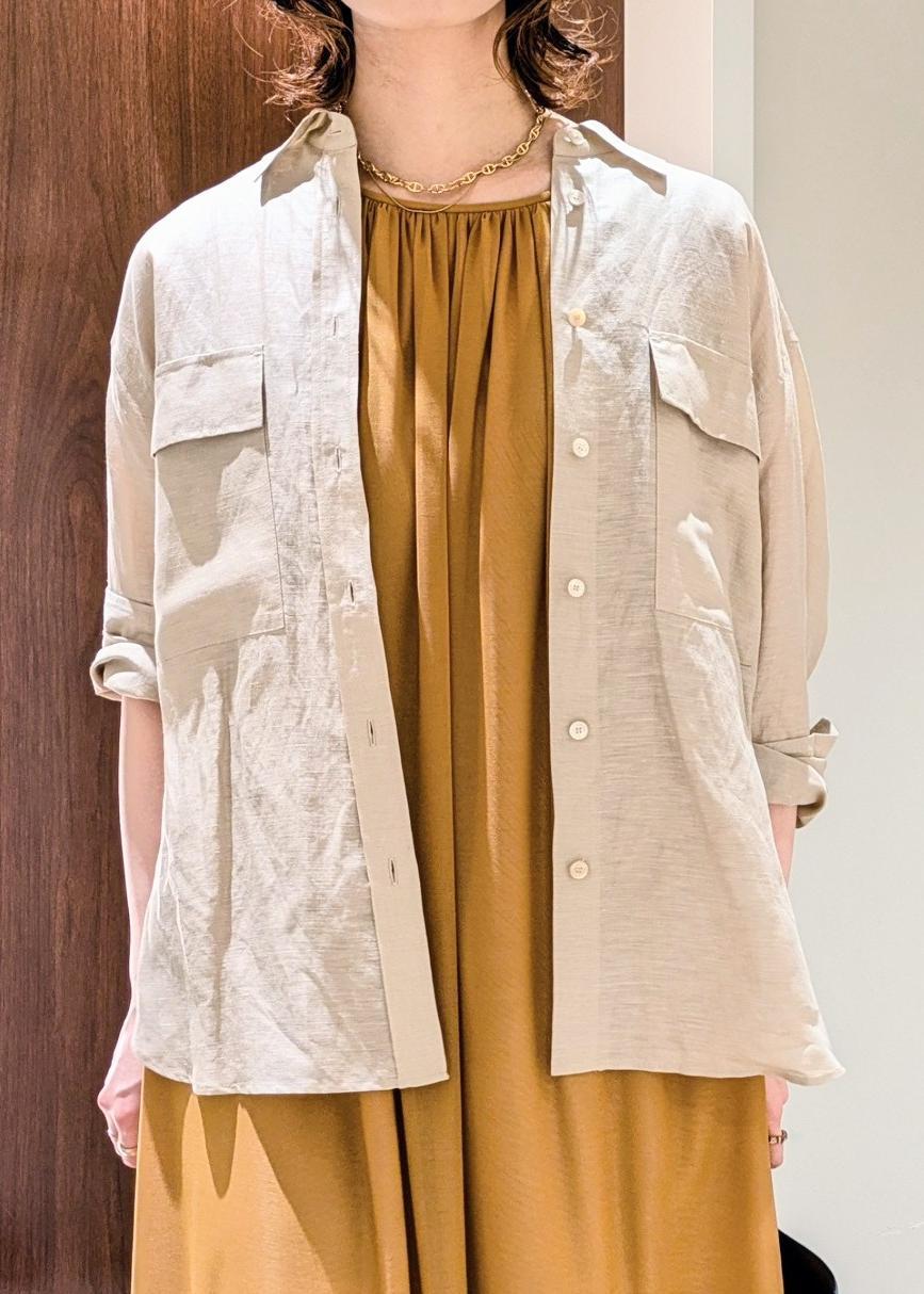 アウトレットROPÉブライトリネン フラップシャツブラウス/洗えるベージュ / F¥16,500レビュー肌離れのいいゆるシルエットのリネンシャツ。