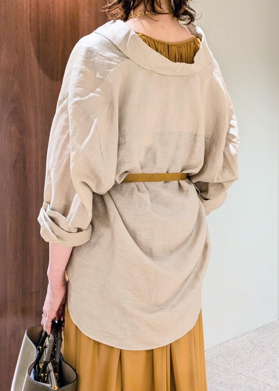 そのまま着用してもリラックス感があり素敵ですが、付属のベルトを合わせていただくと、メリハリついて女性らしいシルエットになりますよ♪ -