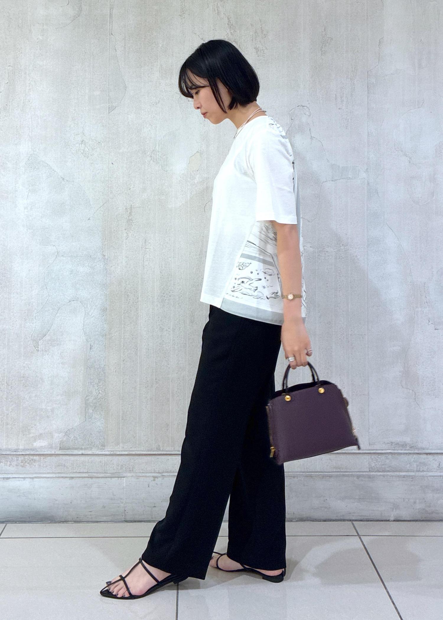 最近入荷してきた佐伯ゆう子さん描き下ろしアートのコラボ商品と組み合わせて、モードスタイルにまとめてみました!