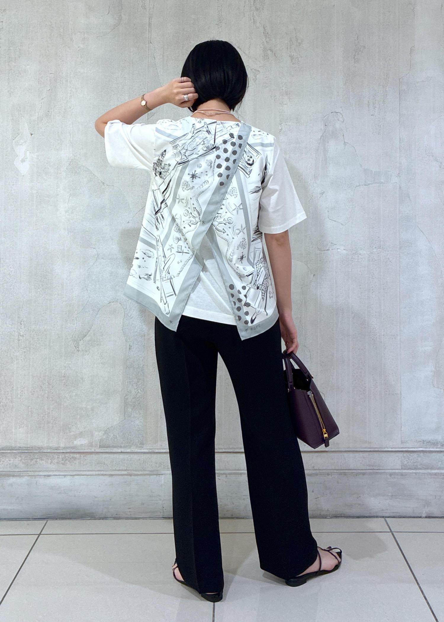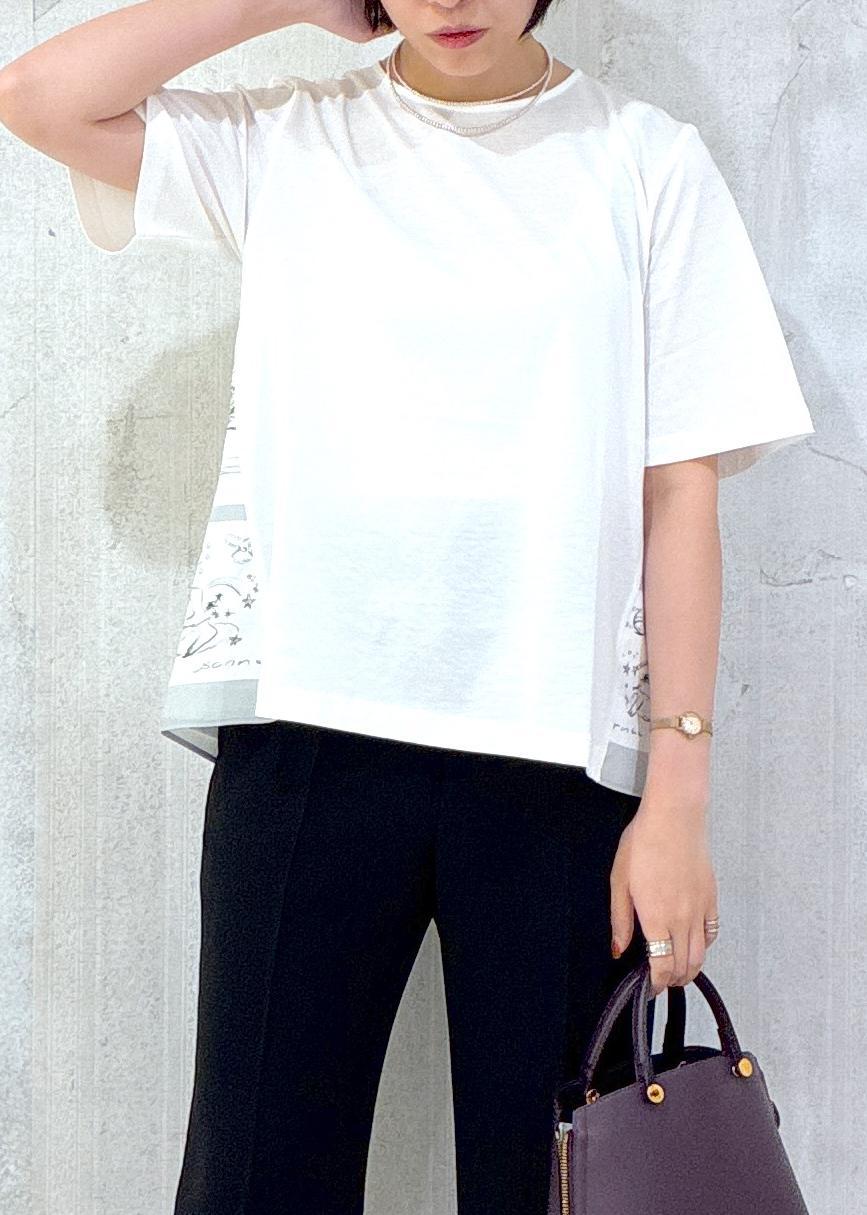 ROPÉ【洗える】【YUKO SAEKI for ROPE'・コラボ】スカーフ柄プリント Aラインカットソーオフホワイト / F¥19,800レビューカットソーにスカーフドッキングされたプルオーバーです。
