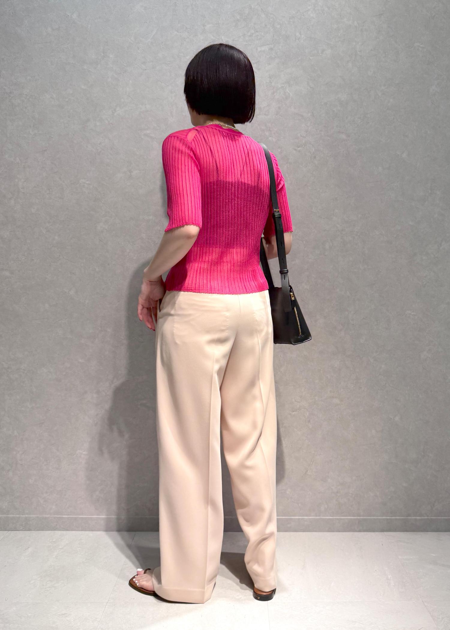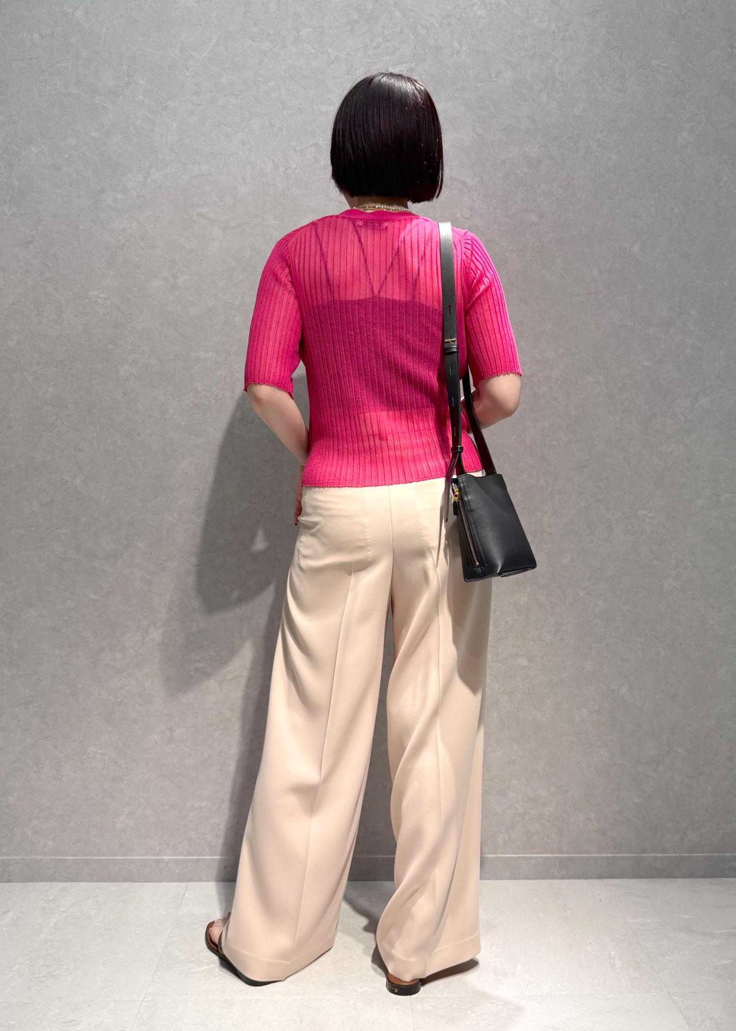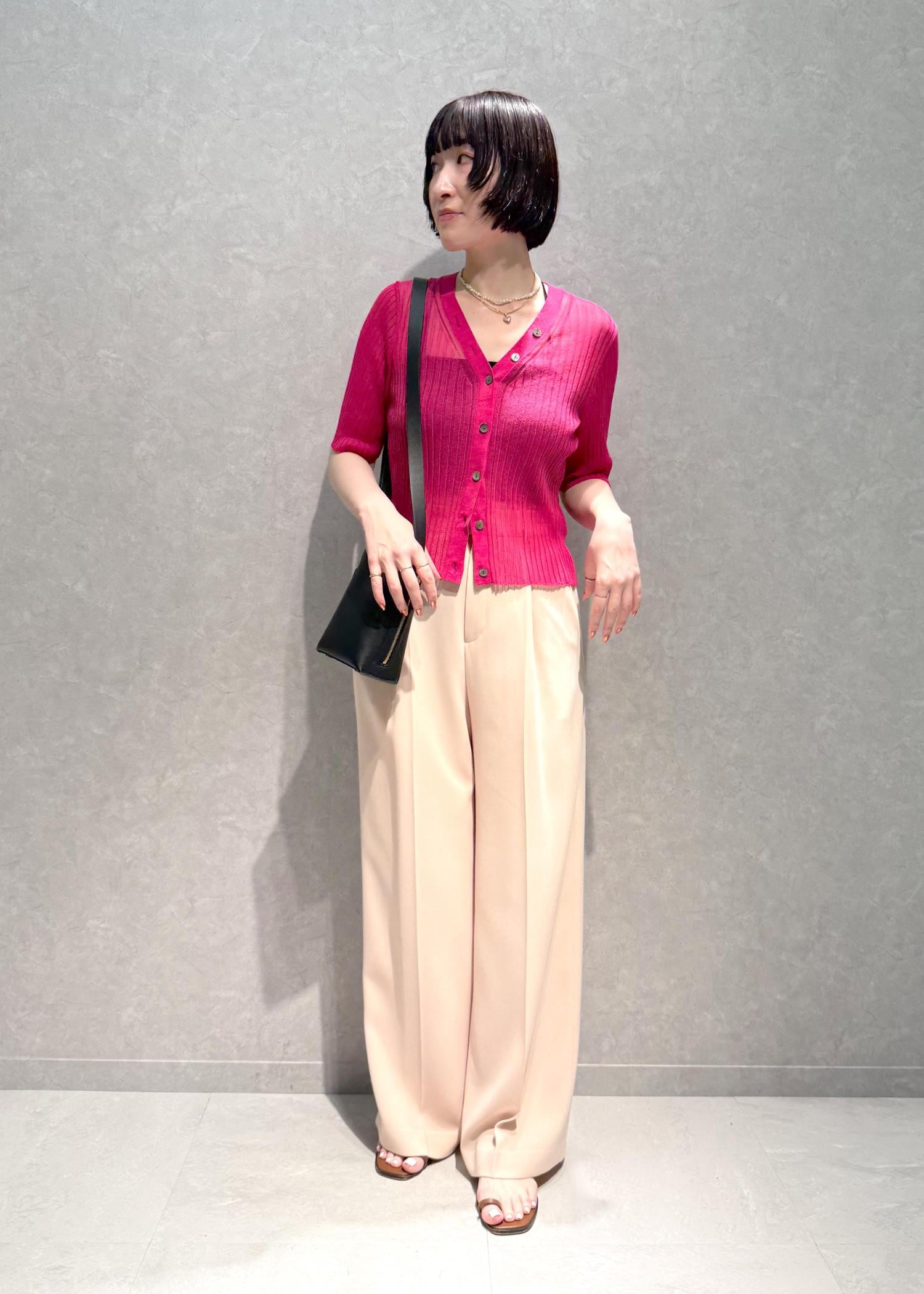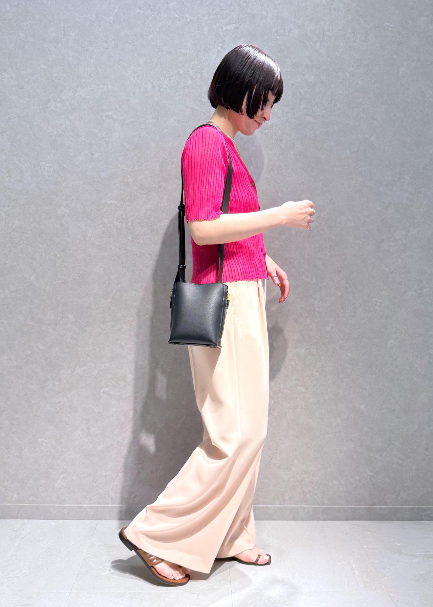 店頭でも目を引くピンクのカラーを使ってスタイリングしてみました。