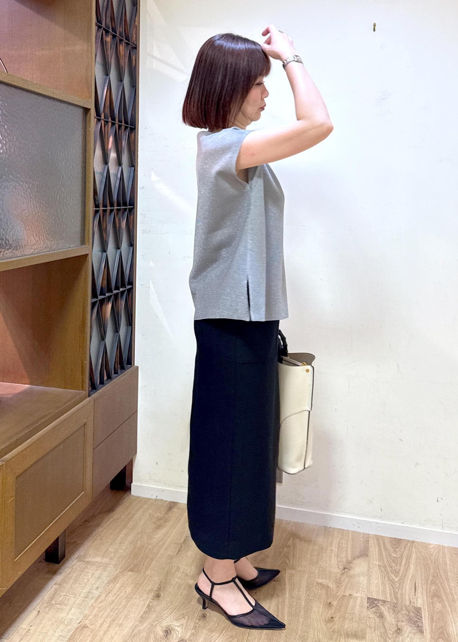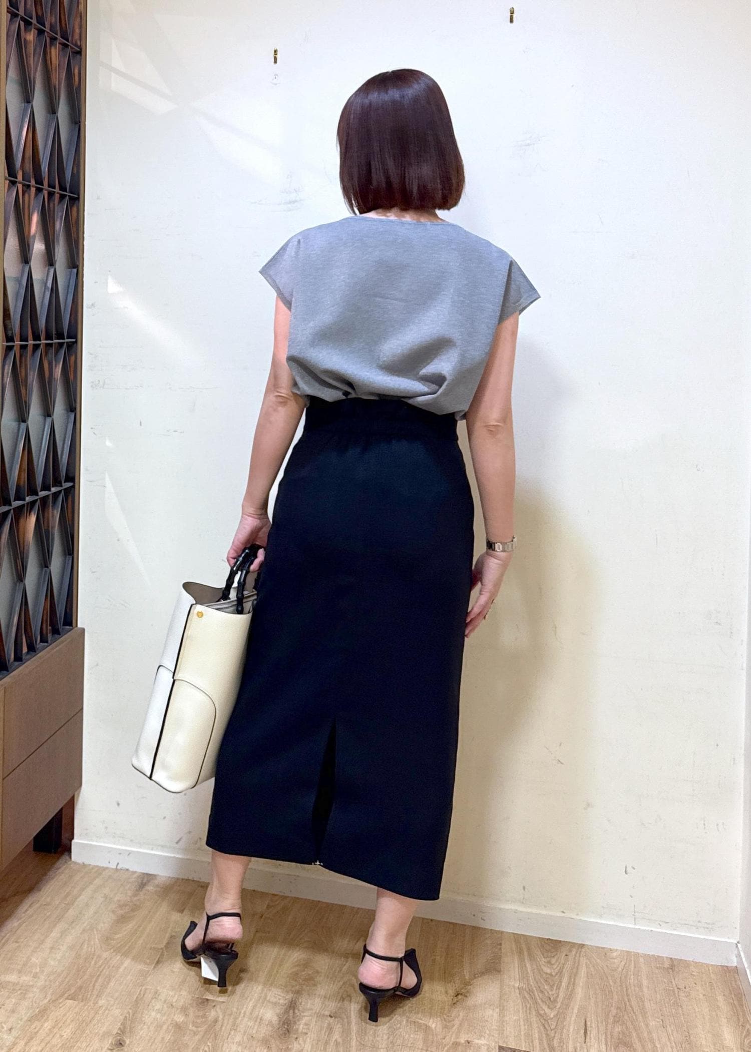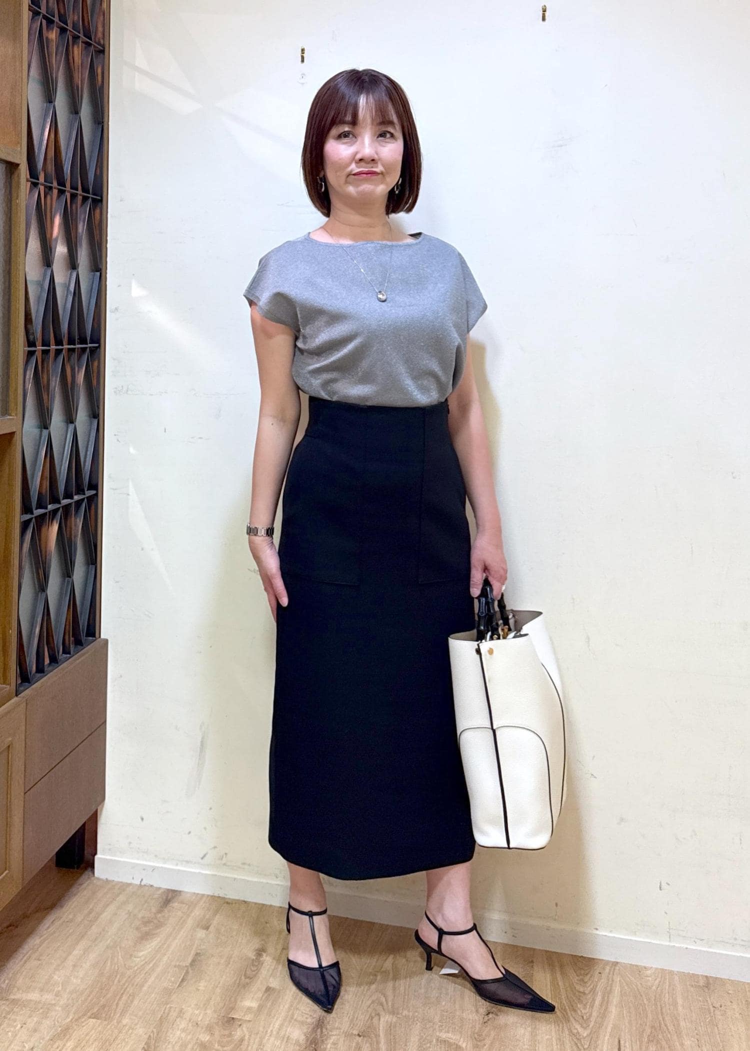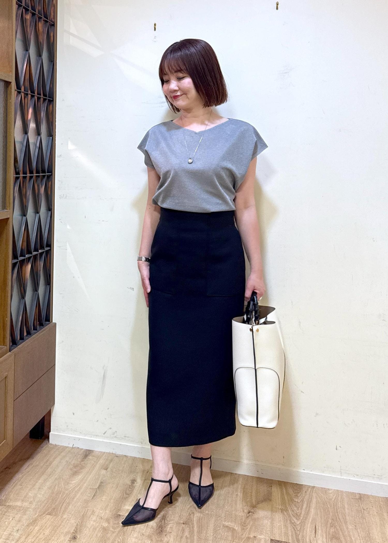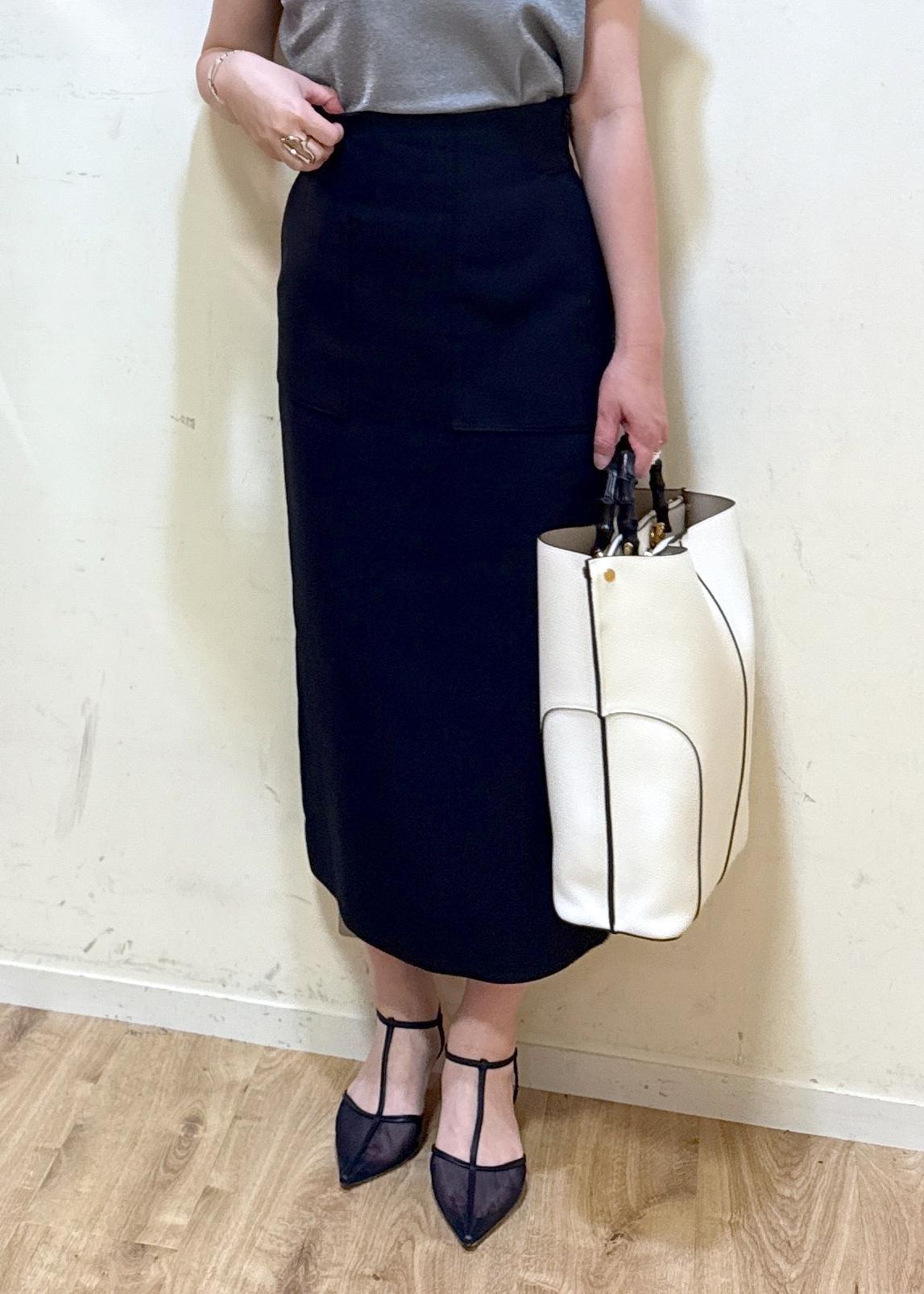 ROPÉリネンライク ポケット付きタイトスカート/イージーケアブラック / 36¥20,900レビュー157センチ•36サイズ着用
