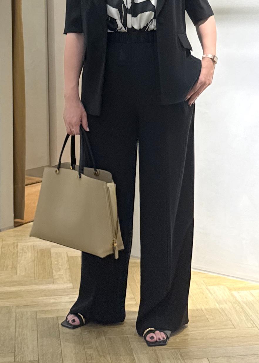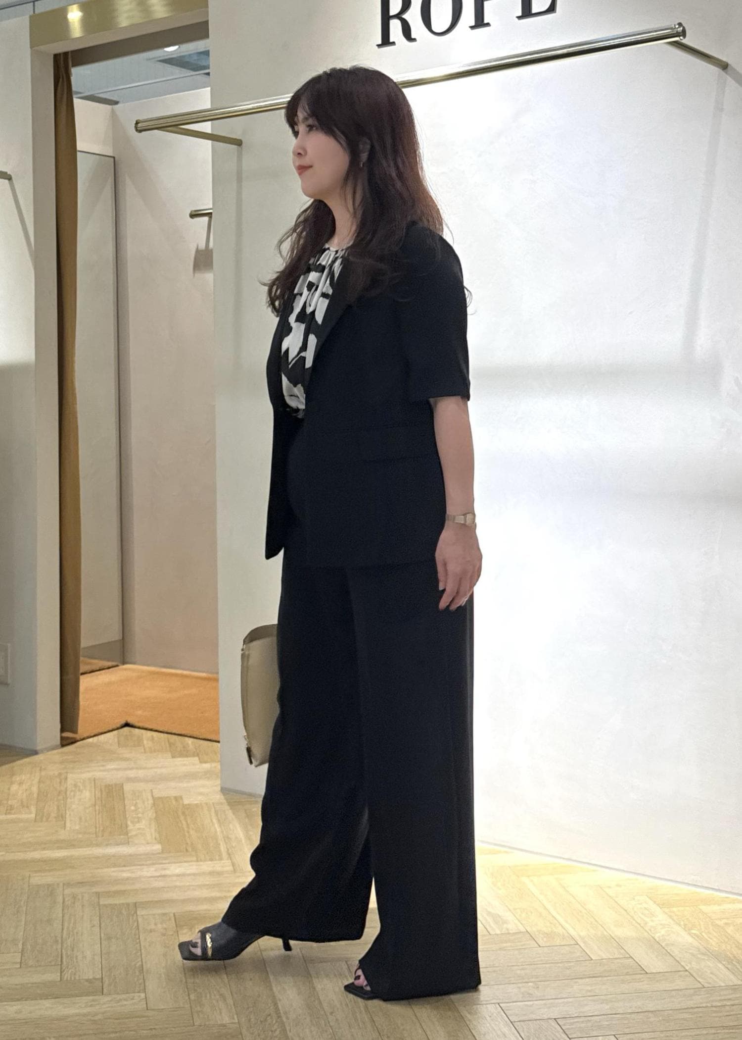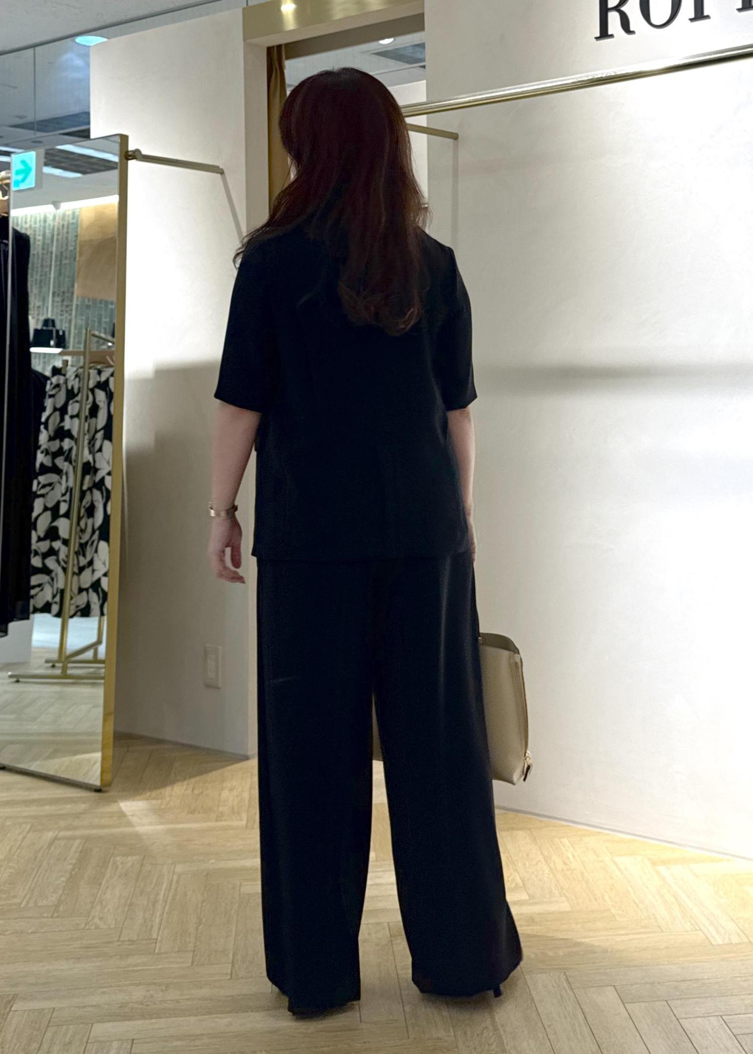 ROPÉ【洗える・カセット服】ライトトリアセイージーワイドパンツ/お仕事・通勤・セットアップ対応ブラック / 38¥25,300レビュー38サイズを履いています。