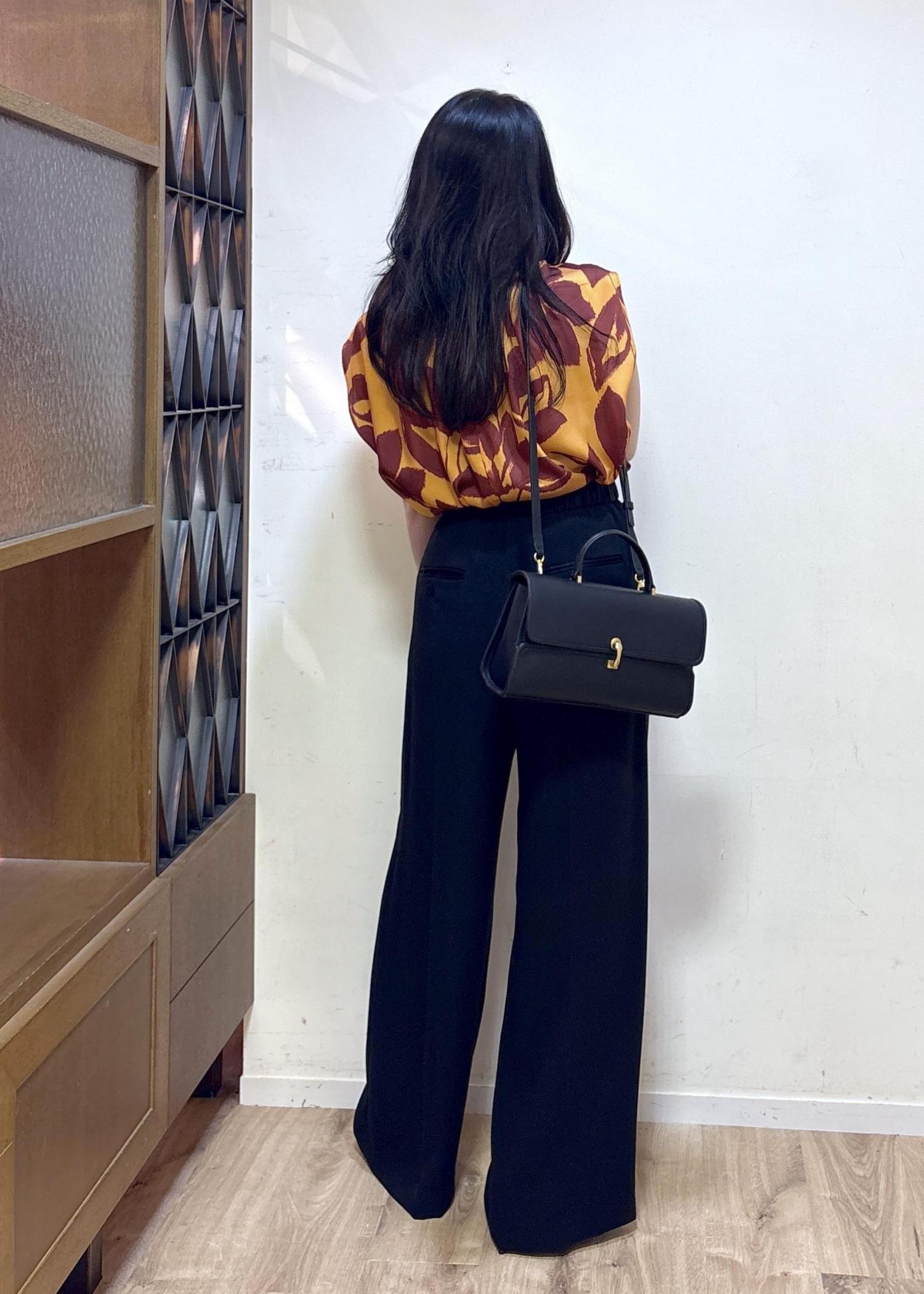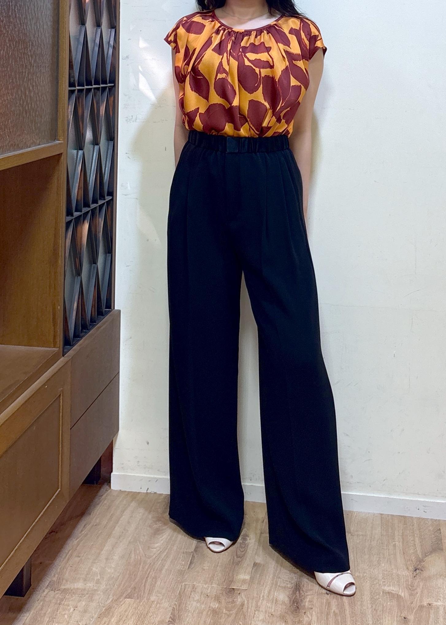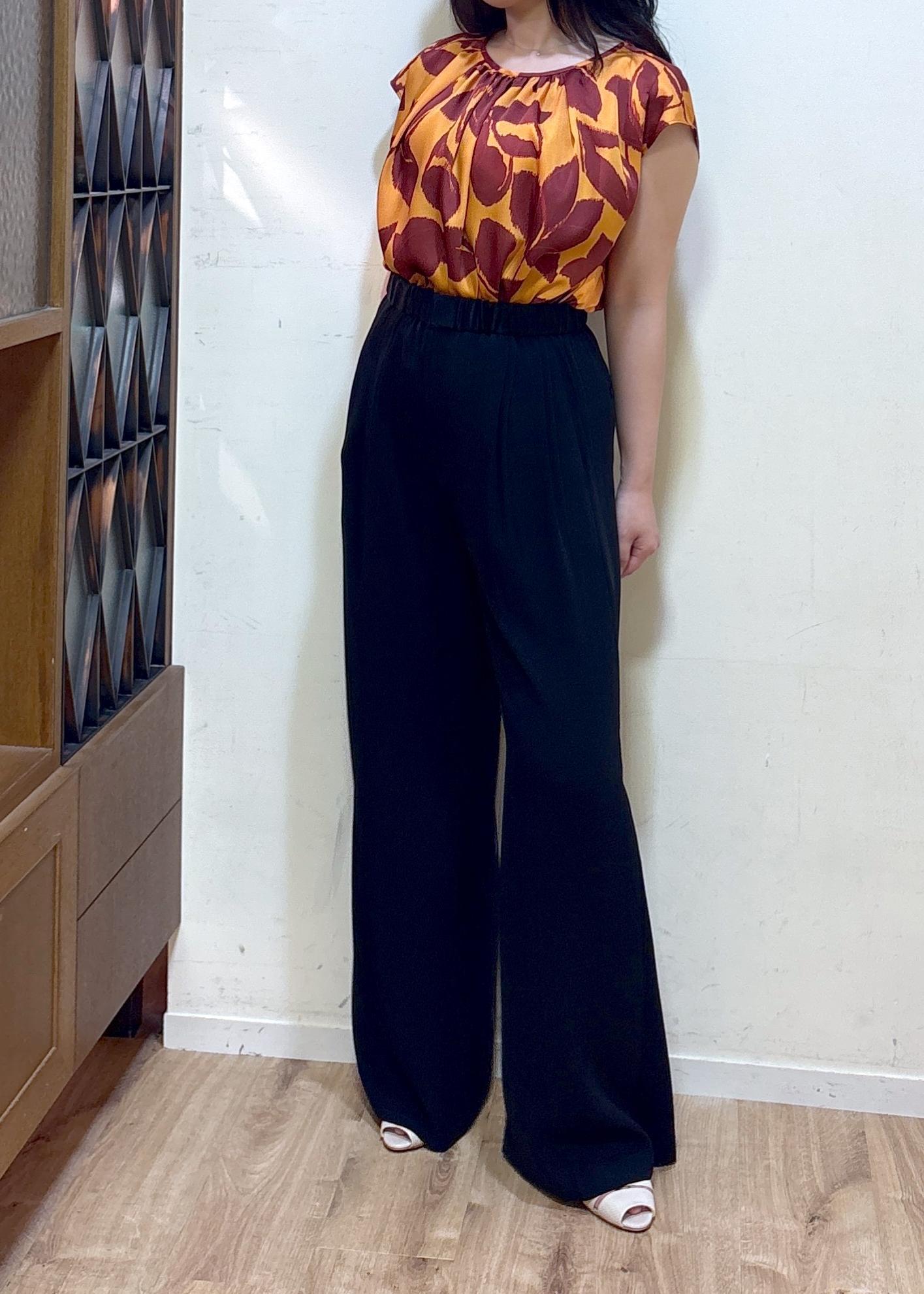 柔らかくとろみのあるワイドパンツですので、広がりすぎないスッキリとしたシルエットがキレイなパンツです。