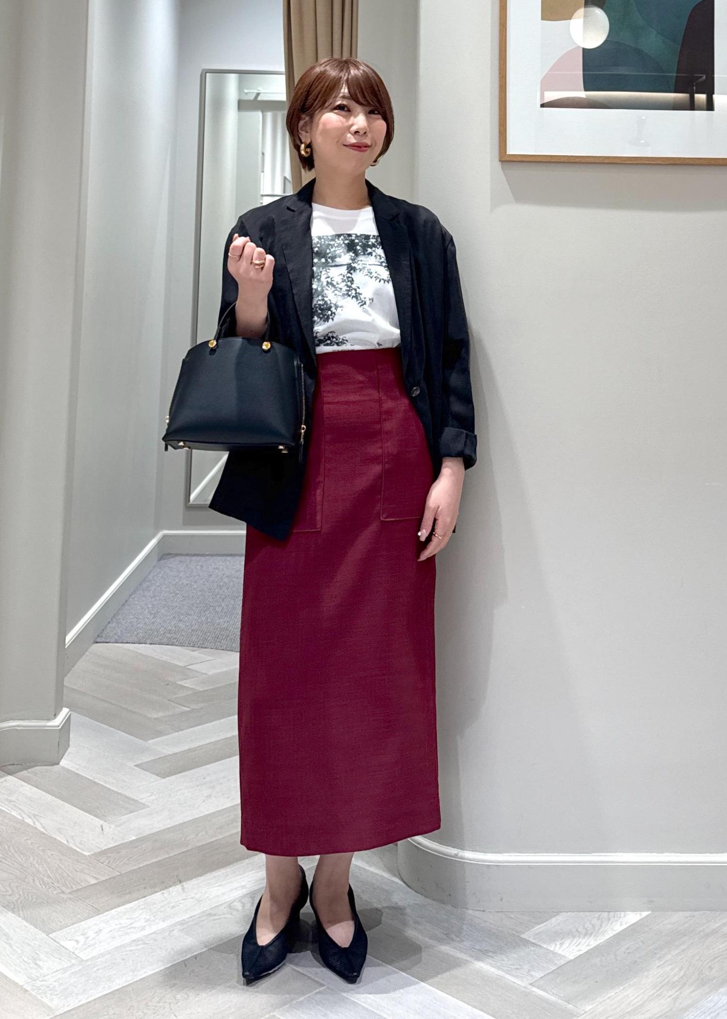 ROPÉリネンライク ポケット付きタイトスカート/イージーケアワイン / 38¥20,900レビューさらっとした生地で見た目ほど厚くないので