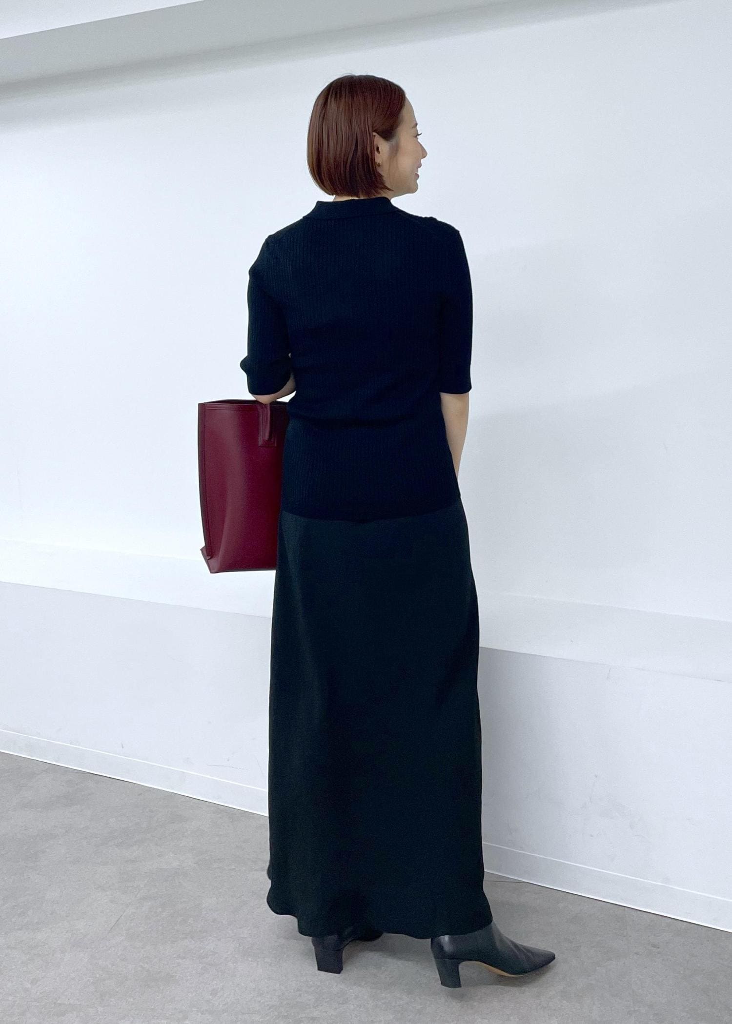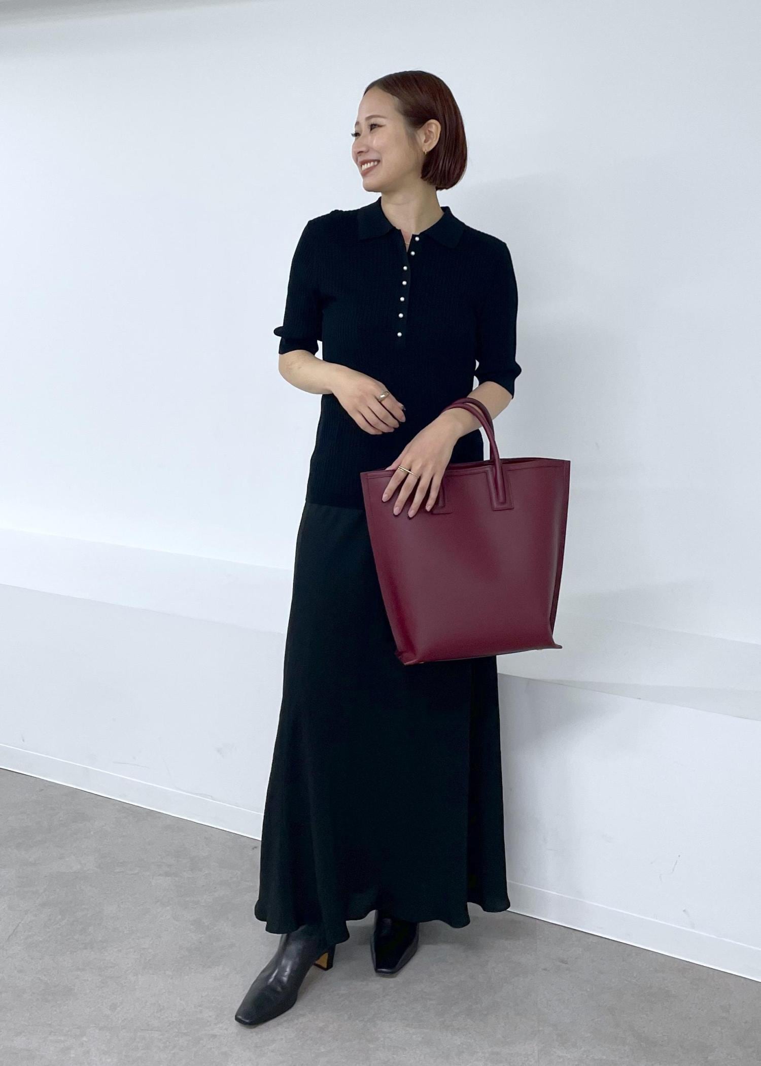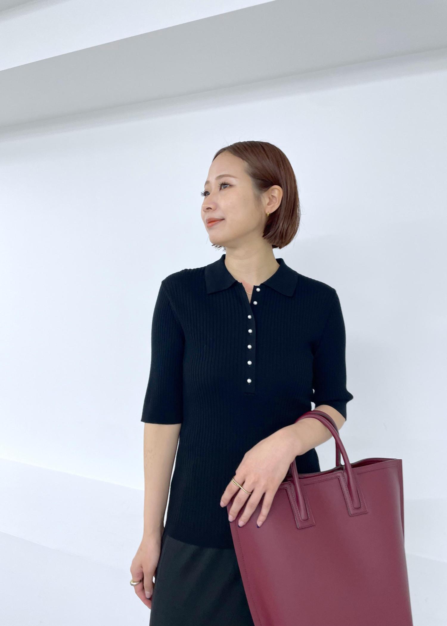 ROPÉパール釦ポロニット/イージーケアブラック / F¥19,800レビューリブニットですがリブが細すぎないため体型を拾いにくくスッキリ着ることが出来ました。