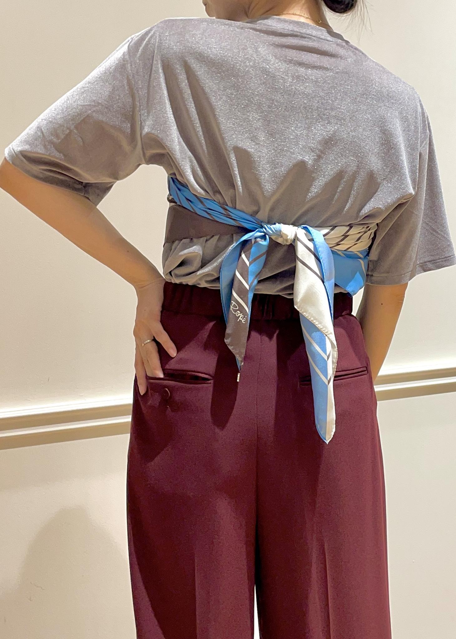 ROPÉストライプパターンシルクスカーフサックス / F¥17,600レビューシルク100%で張り感がとても上品です。