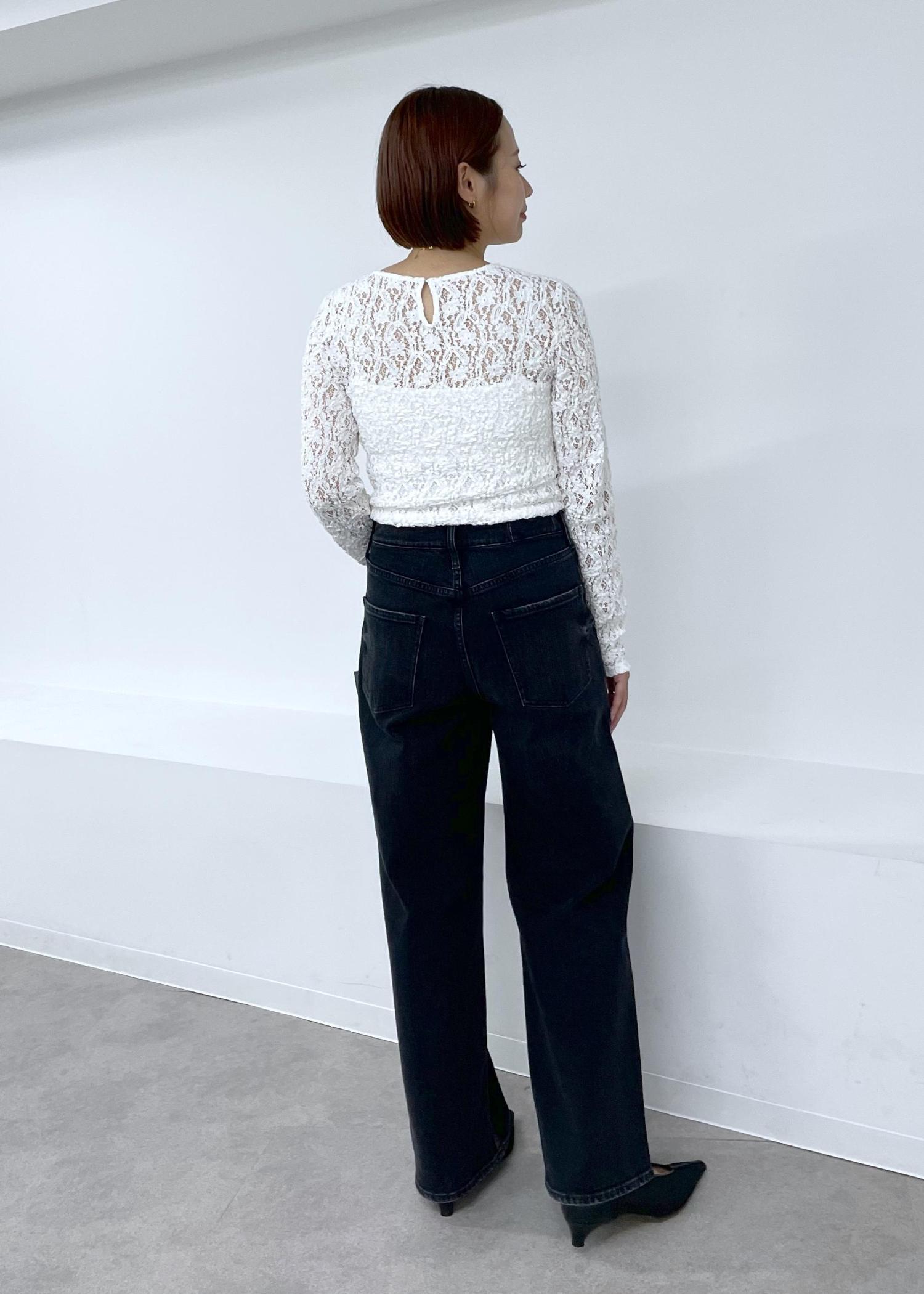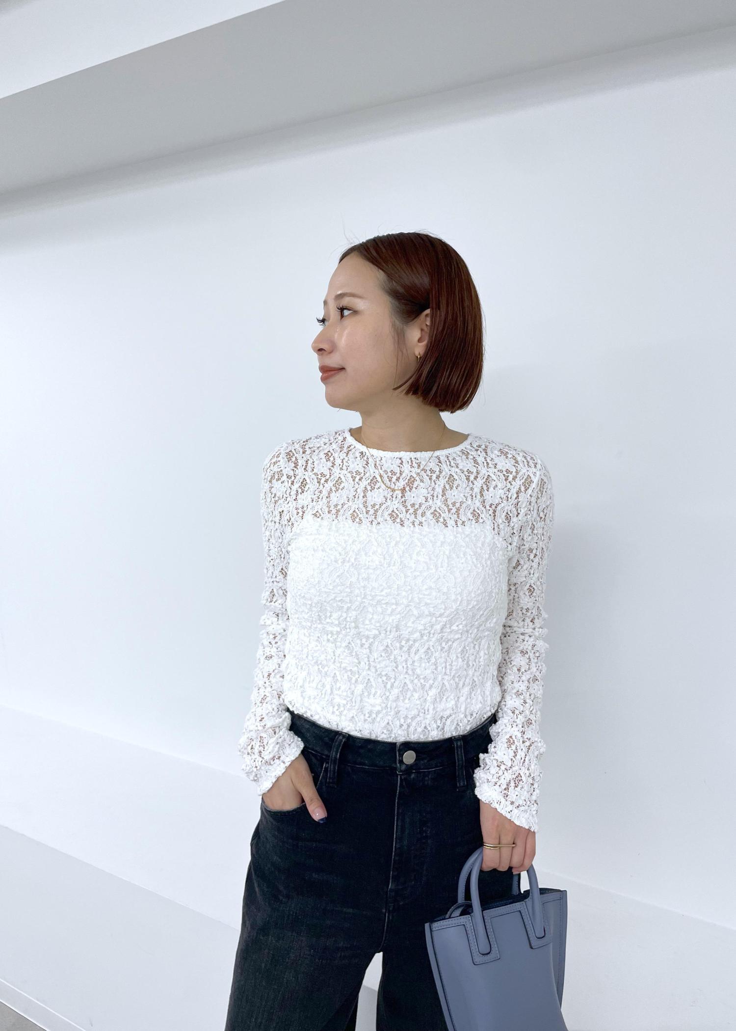 初秋にもおすすめな程よいレースの透け感が大人ヘルシーカジュアルなスタイルに。