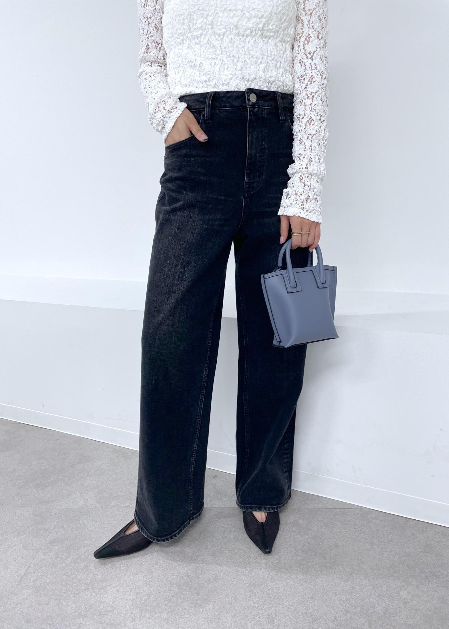 シンプルな合わせですがトップスはレースにして足元はヒールをあわせることでカジュアル過ぎずバッグも小さめが◎