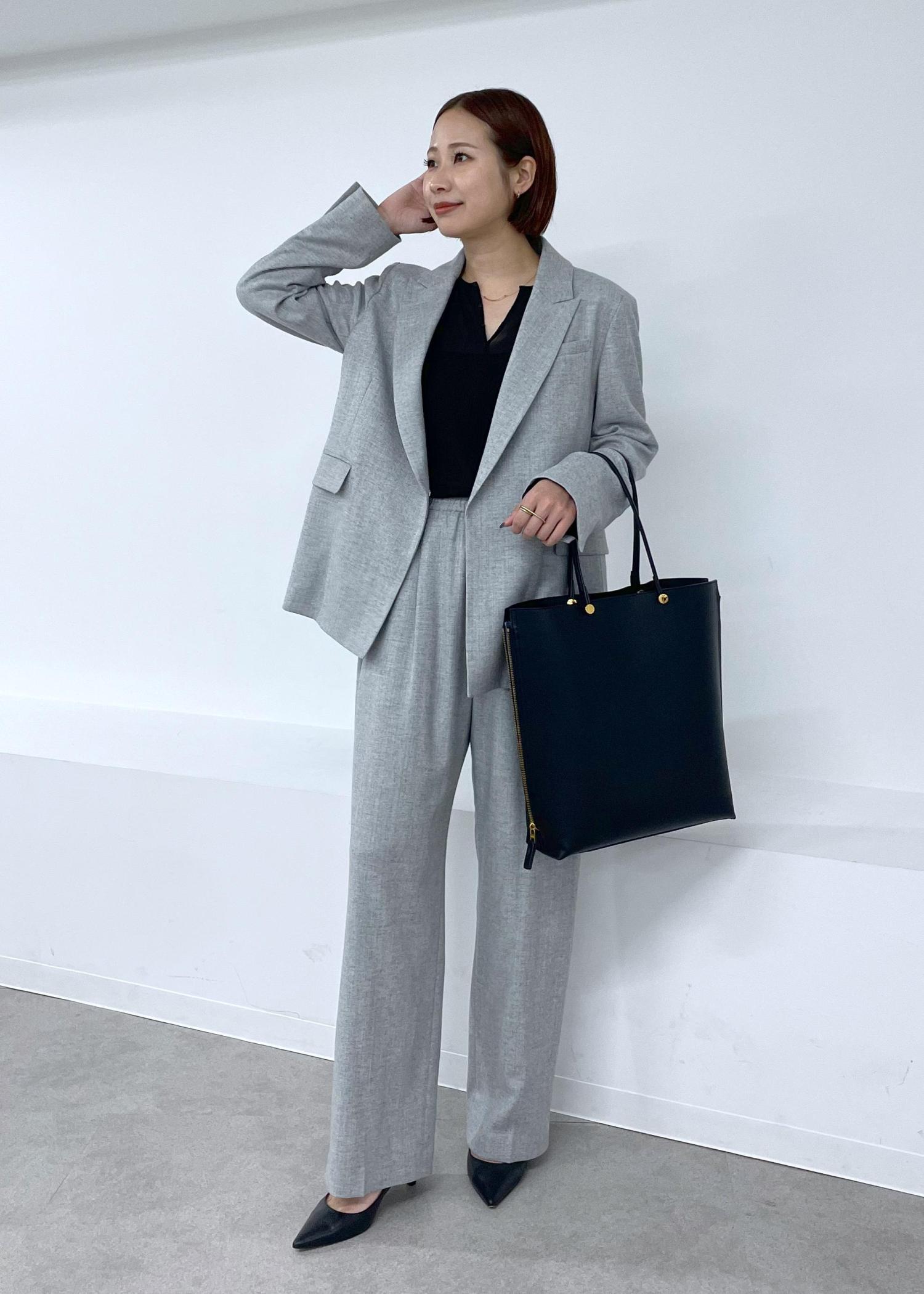 セットで着るとかっちり綺麗めな印象ですが、デニムにジャケットを合わせたカジュアルスタイルやゆったりとしたニットとパンツを合わせても◎