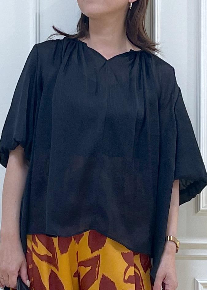アウトレットROPÉ楊柳スキッパーブラウス/イージーケアブラック / F¥10,450レビューFsize着用。