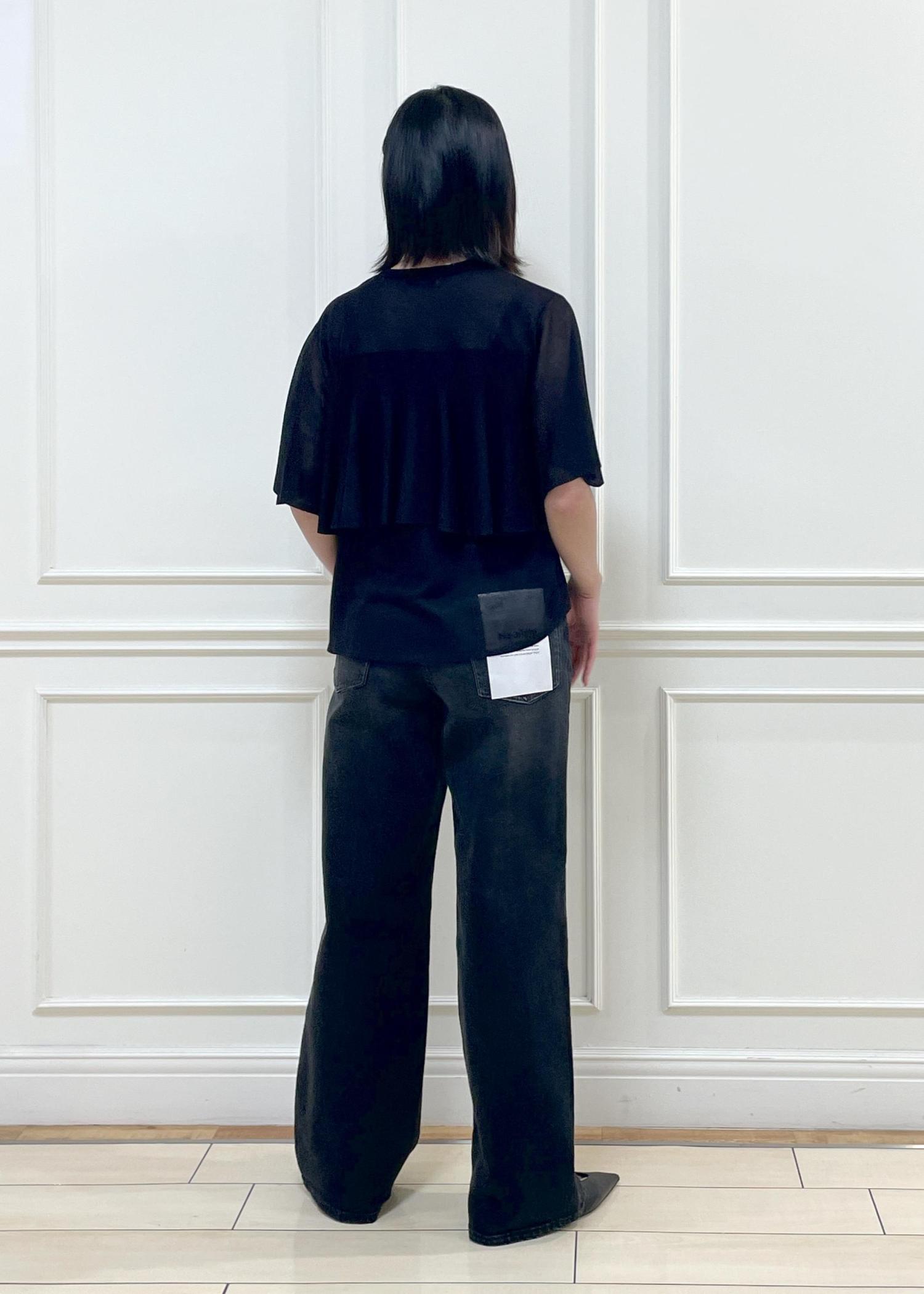 ウエストにゆとりがありましたので、ベルトでウエスト位置を高めに調整し、足長効果をプラスしてみました。