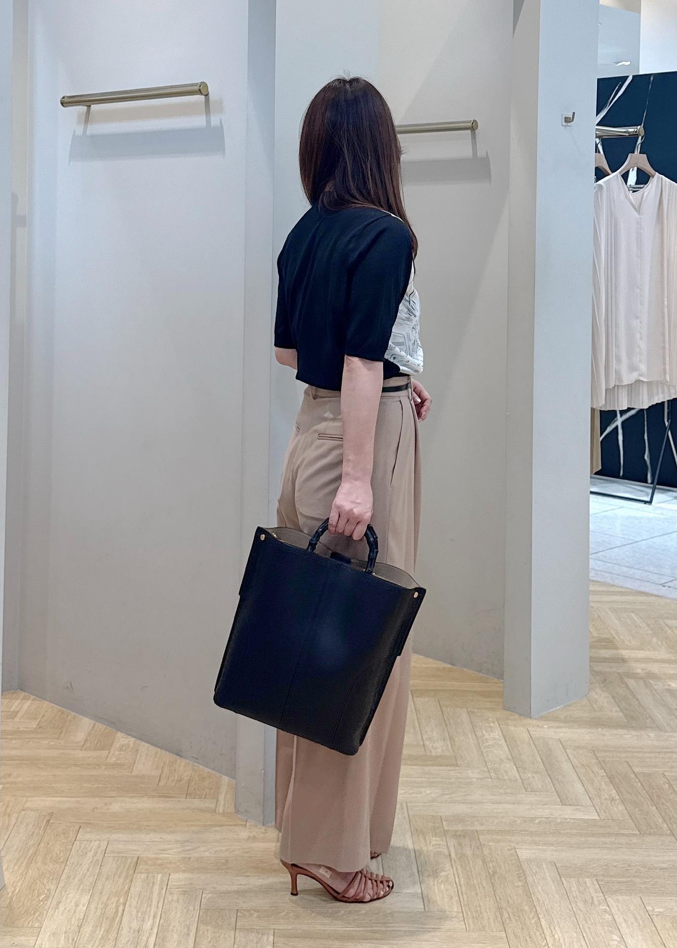 バンブーの持ち手が高級感がありアクセントになるのでベーシックな装いの時にもおすすめです。