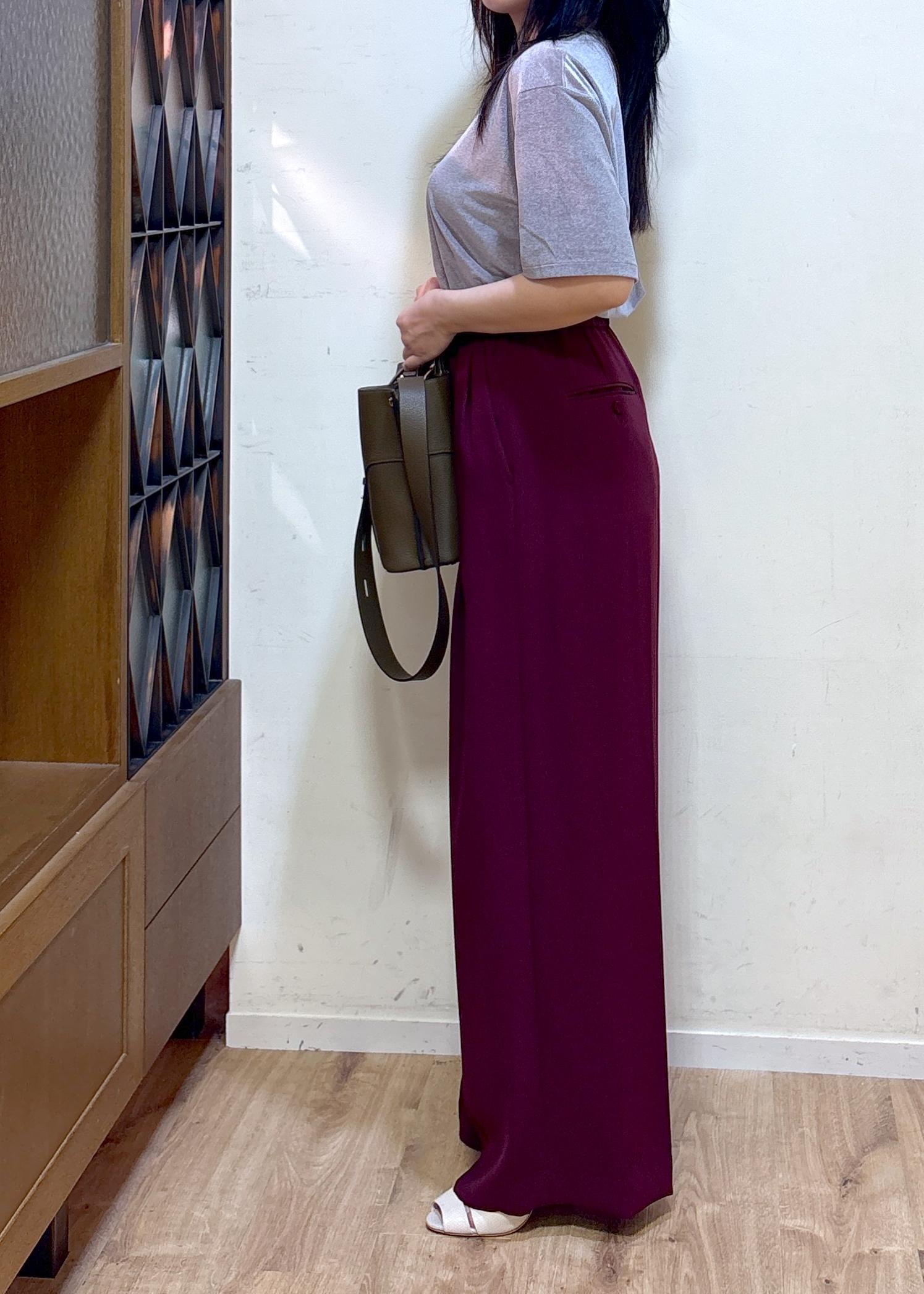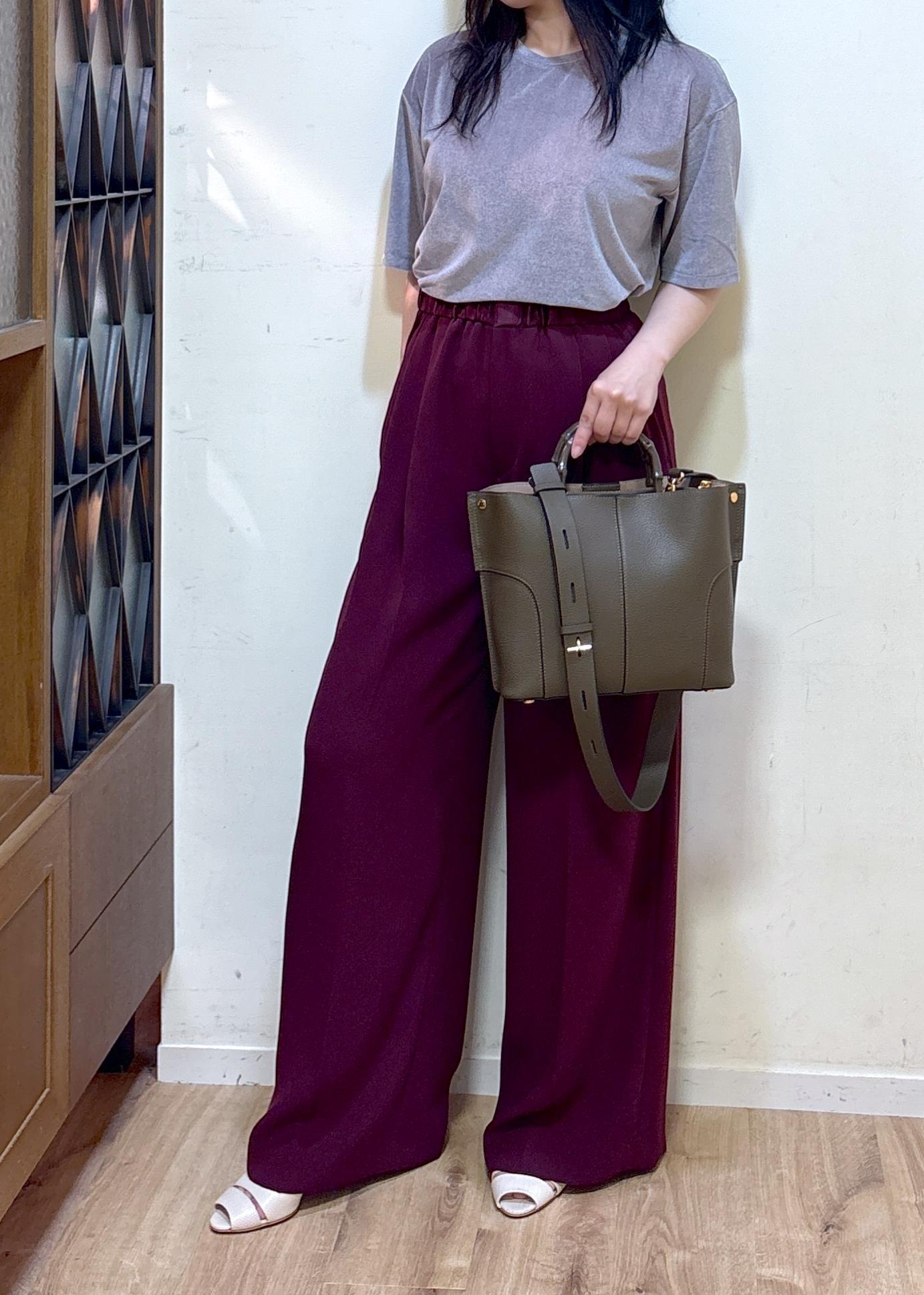 柔らかくとろみのあるワイドパンツですので、広がりすぎないスッキリとしたシルエットがキレイなパンツです。