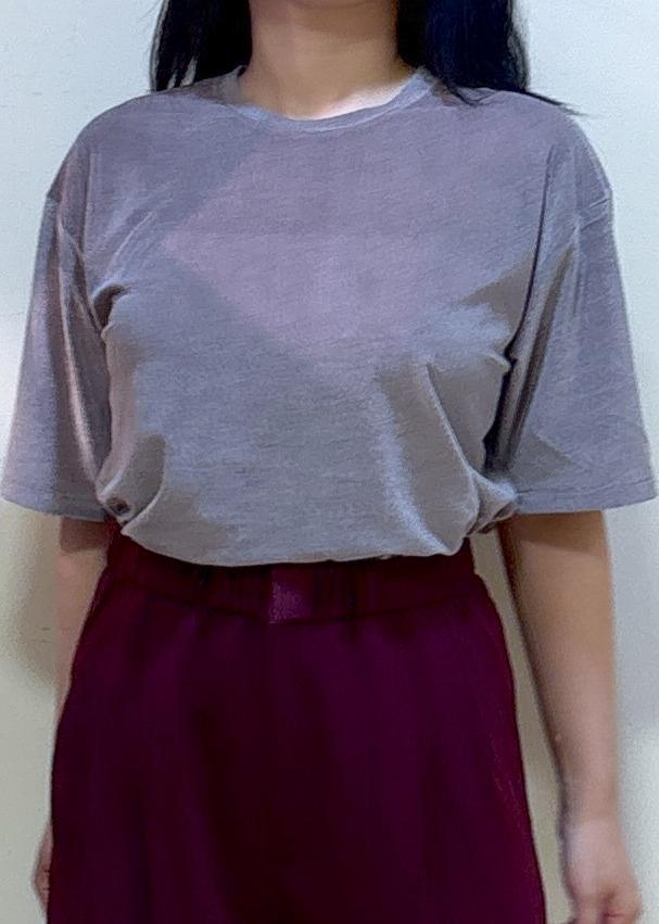 光沢感とシアー感のベロアTシャツで涼しい秋コーデです。