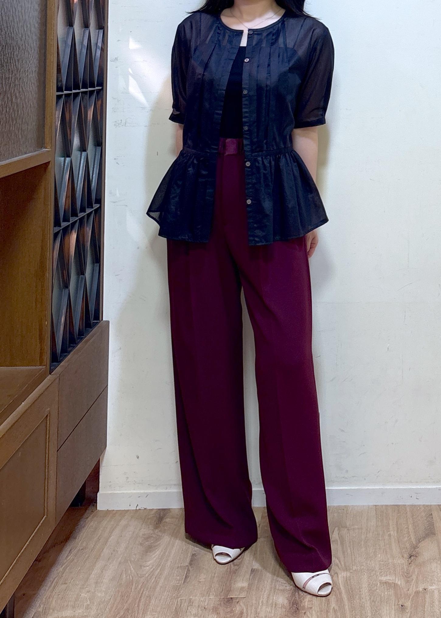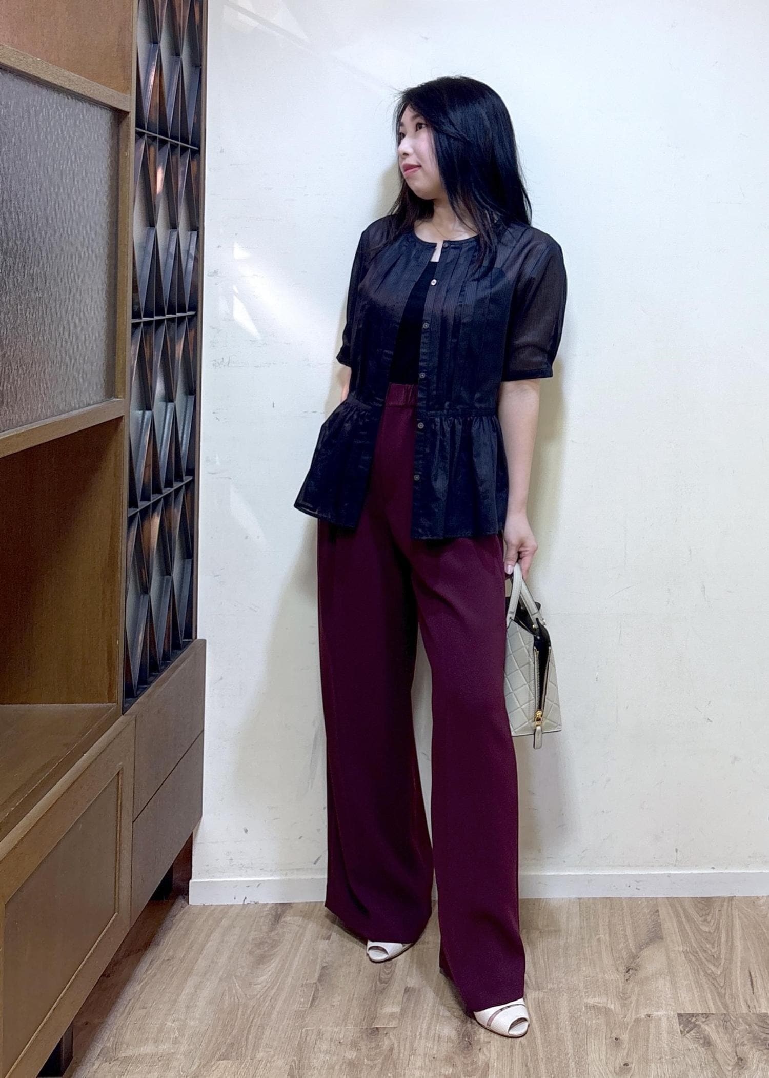 ROPÉ【洗える・カセット服】ライトトリアセイージーワイドパンツ/お仕事・通勤・セットアップ対応ワイン / 36¥25,300レビュー身長152cm 36サイズ着用