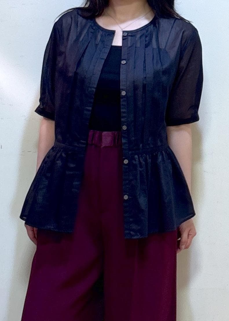 着丈はヒップにかかるほどで後ろからのシルエットもフェミニンさが素敵なブラウスです。 -