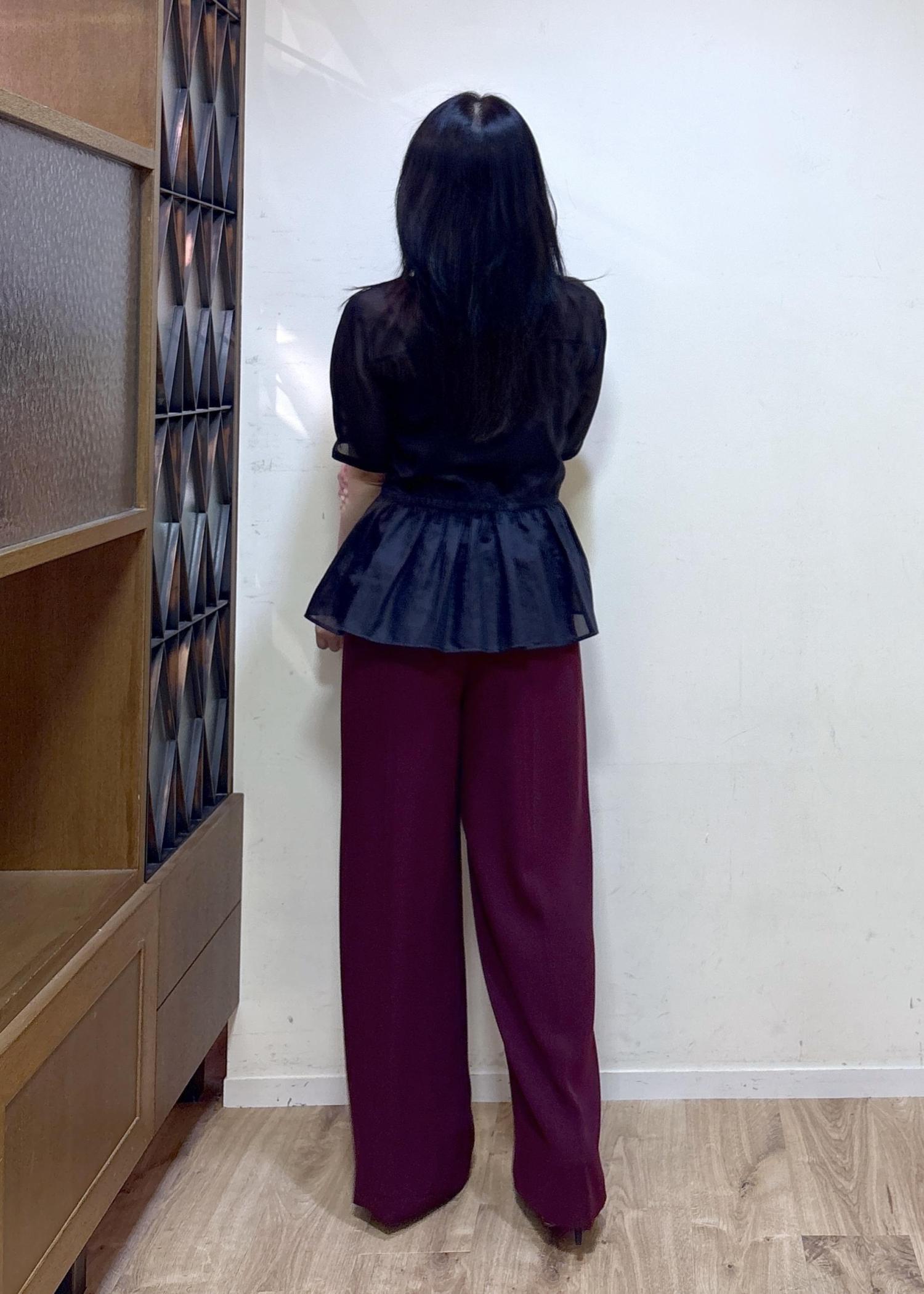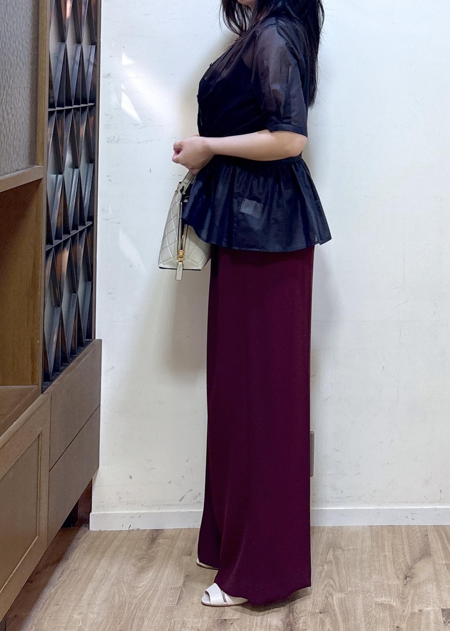 柔らかくとろみのあるワイドパンツですので、広がりすぎないスッキリとしたシルエットがキレイなパンツです。