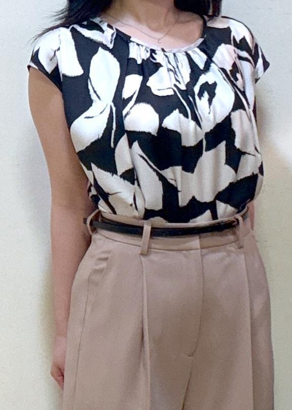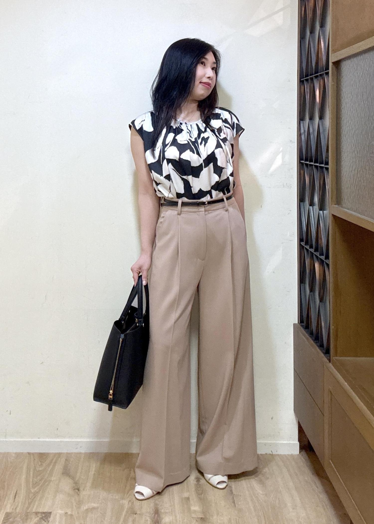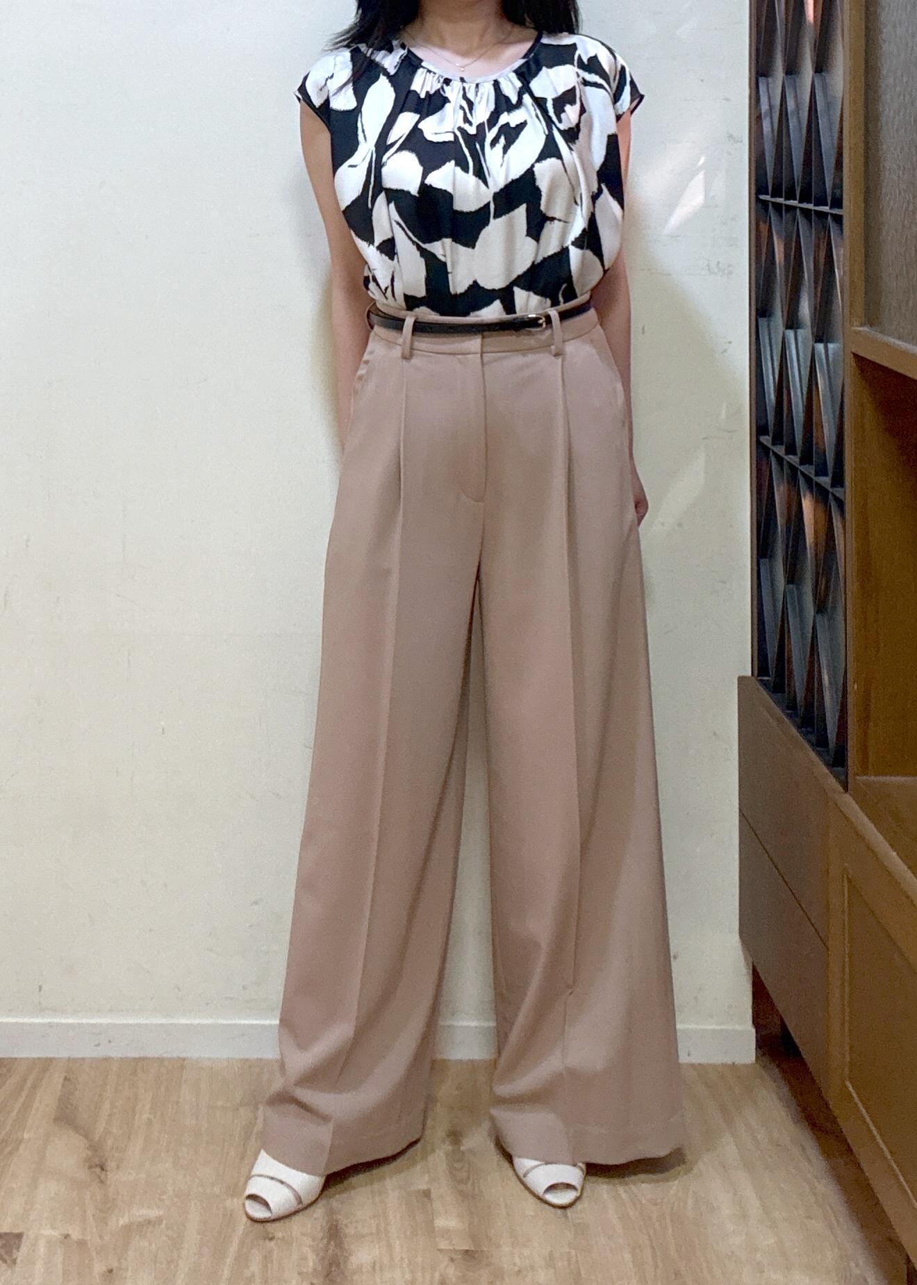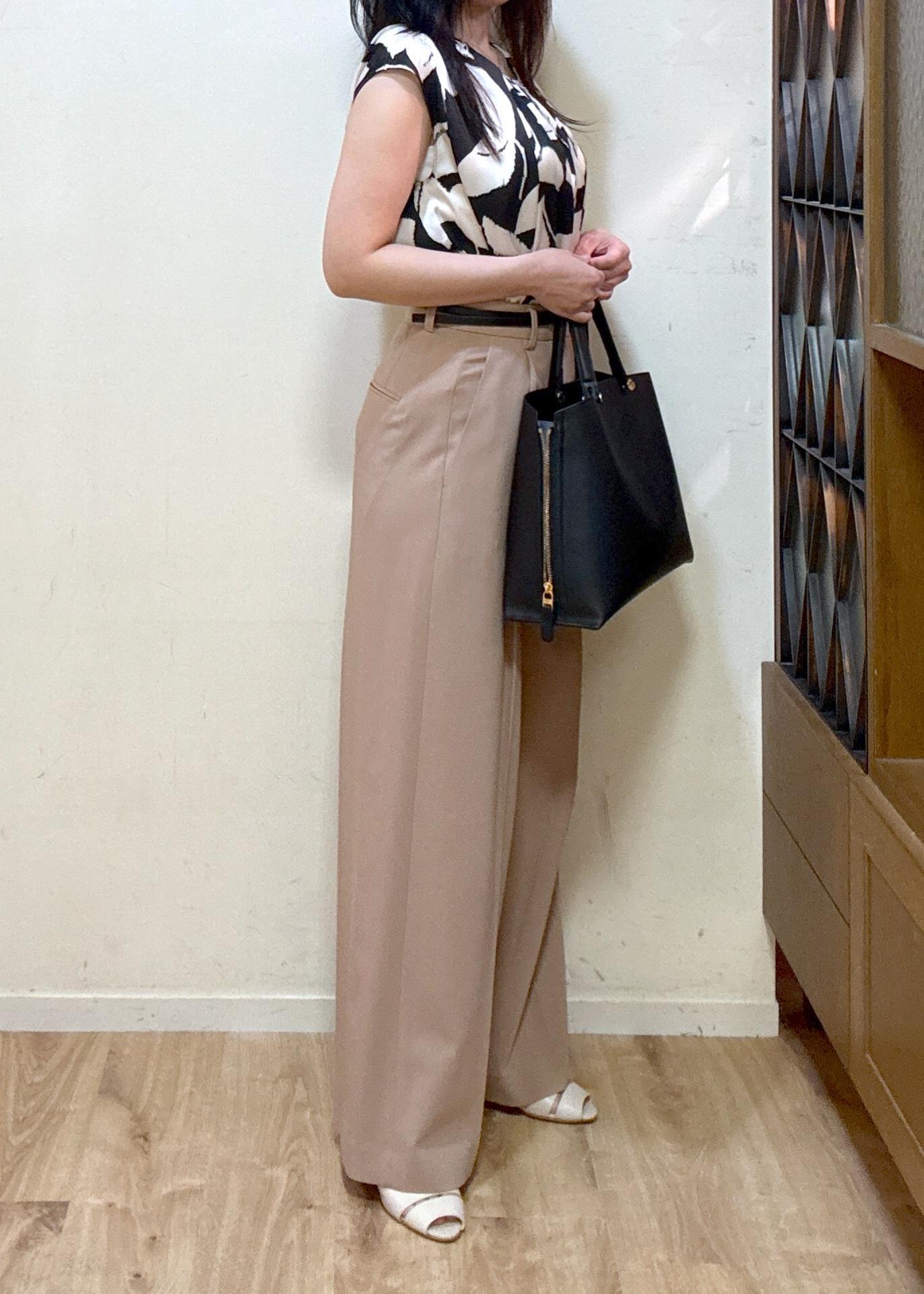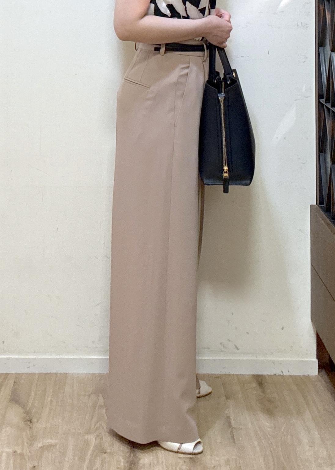 着丈は私の身長では高めのヒールを履いて丁度良いバランス。フラットシューズなど合わせる靴によっては丈直しが必要です。