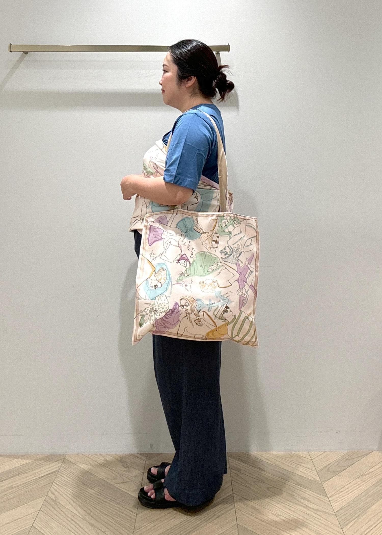 大判なトートバッグは汎用性も高く、使い勝手もしやすいのがおすすめ。