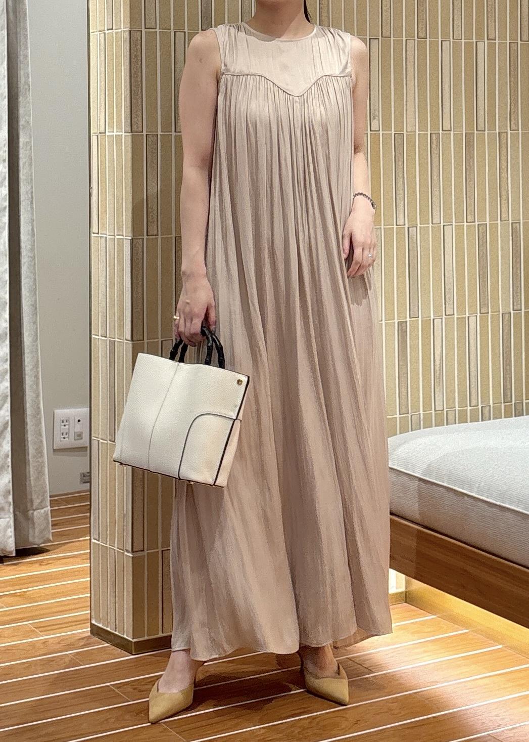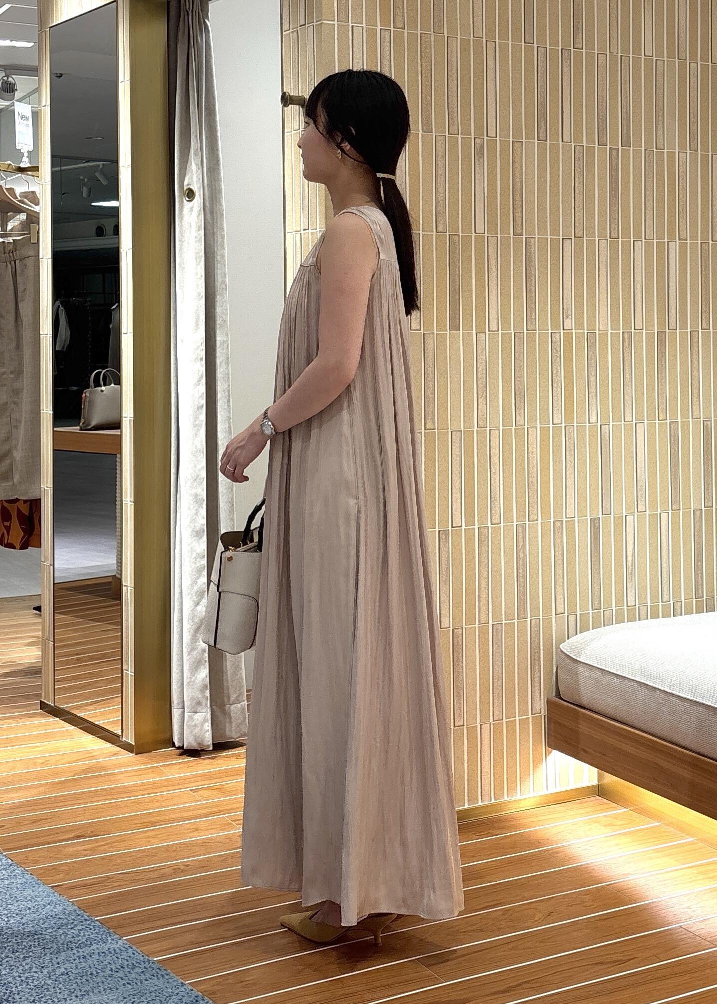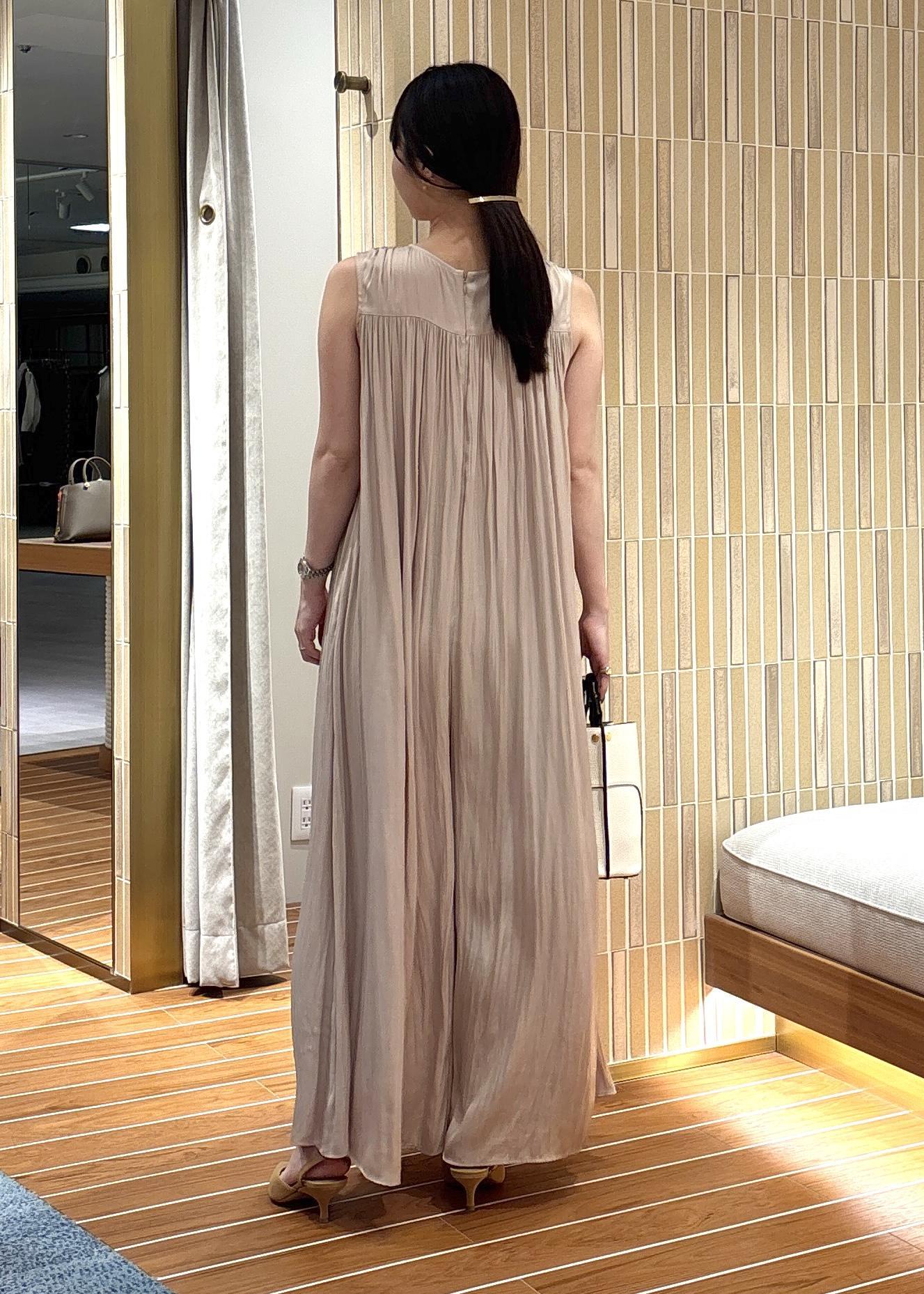 アウトレットSALON adam et ropéカッセンギャザーサロペットベージュ / S¥11,880レビュー158cm、Sサイズでかかと辺りにくる着丈でした。