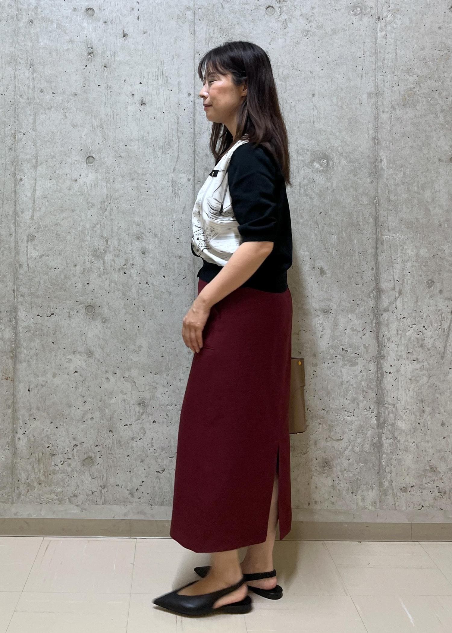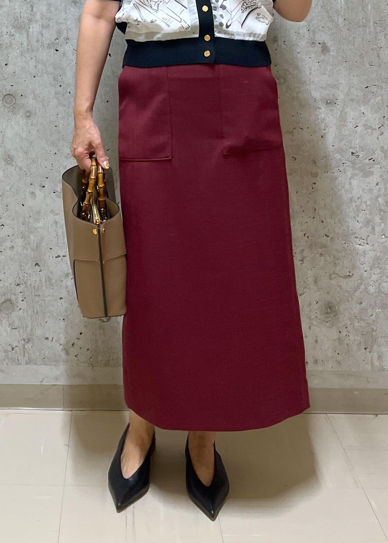 定番のポケット付きタイトスカートで大人っぽいスタイルにしました。