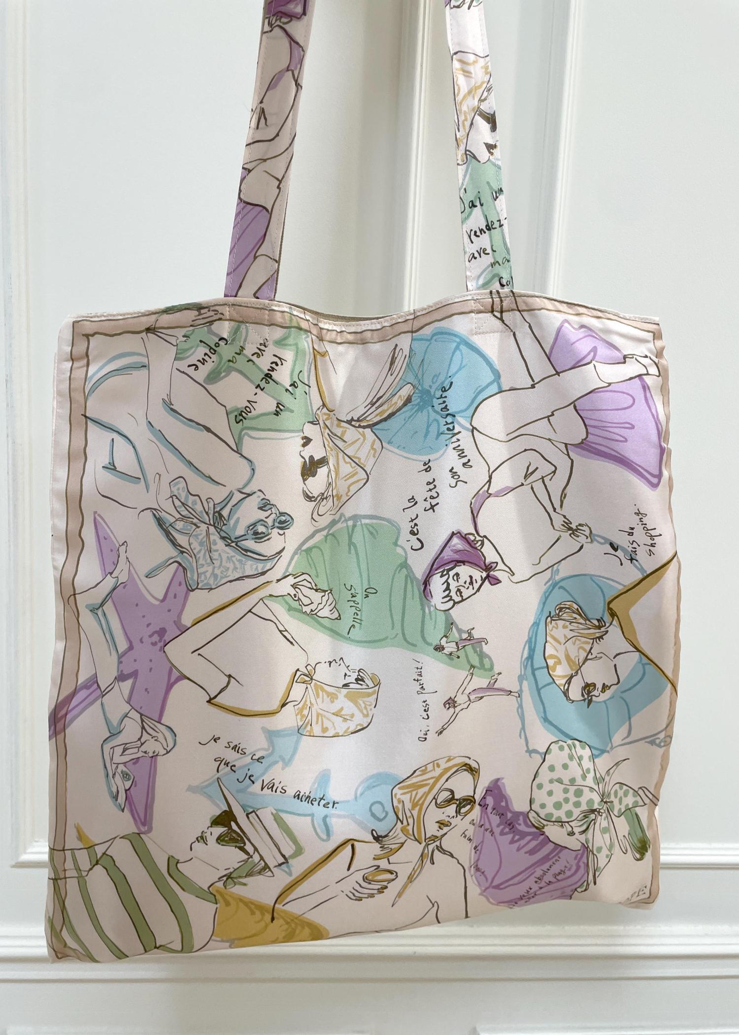 【YUKO SAEKI for ROPE’・コラボ】スカーフ柄プリント シルクトートバッグ【A4対応】