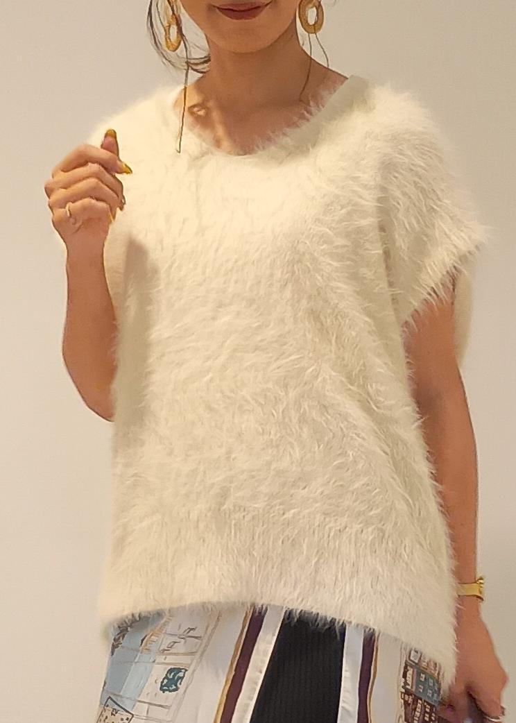 ROPÉ PICNICシャギーニットベストキナリ / F¥3,993レビュー手触りがとってもさらさらなフェザーニット。ざっくりゆったりしたシルエットでパンツでもスカートでも着回しできます!二の腕がカバーできるのも嬉しいポイントです。