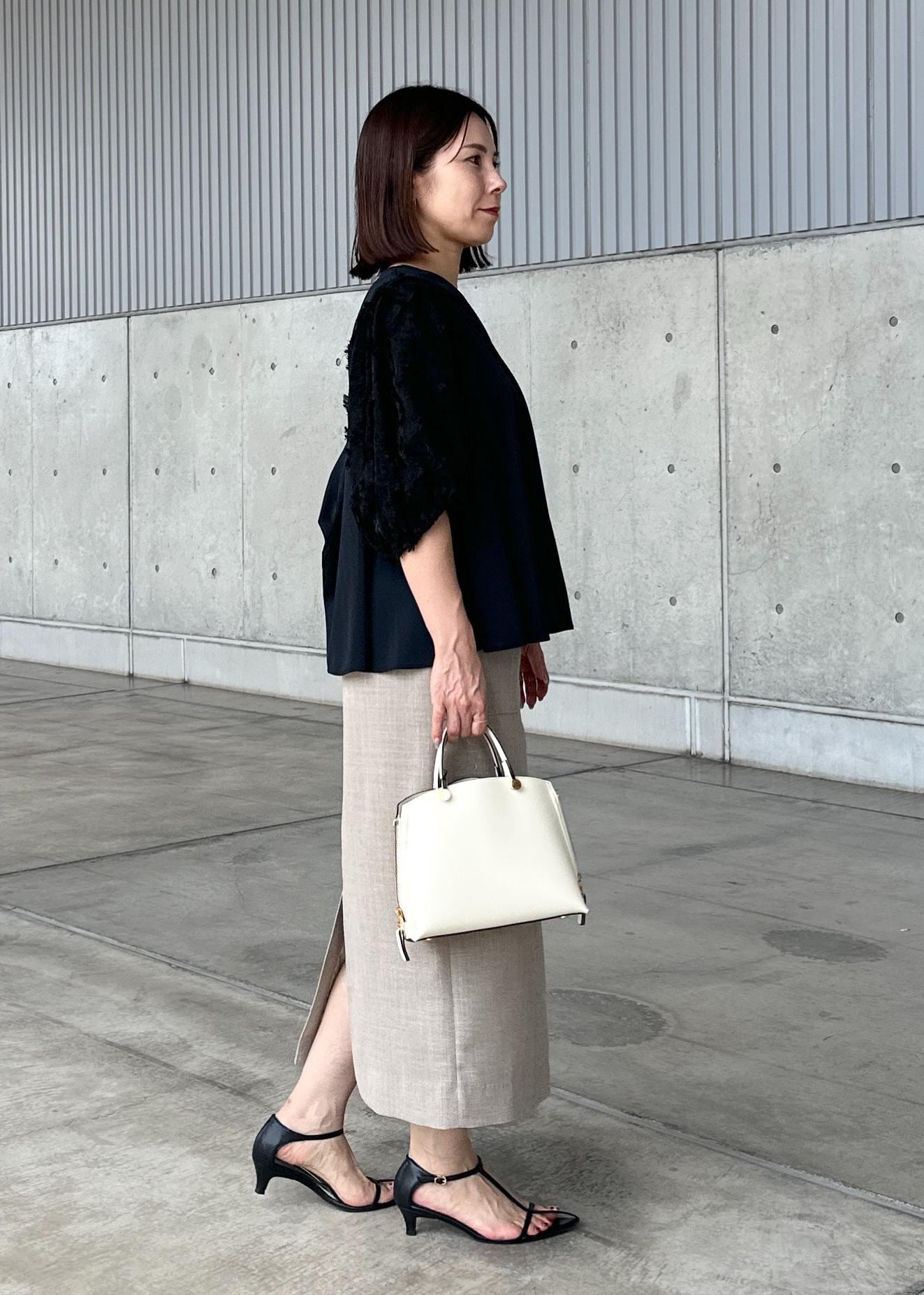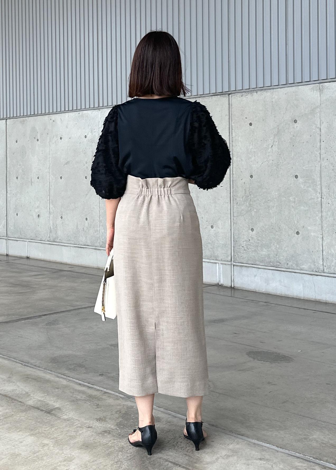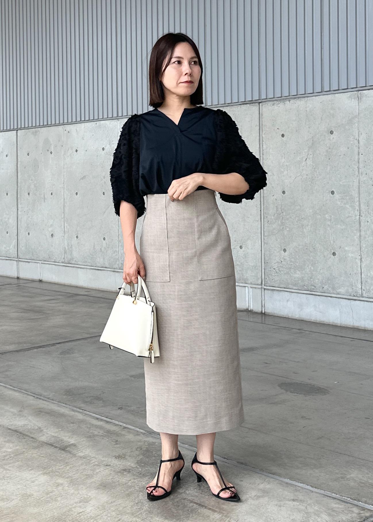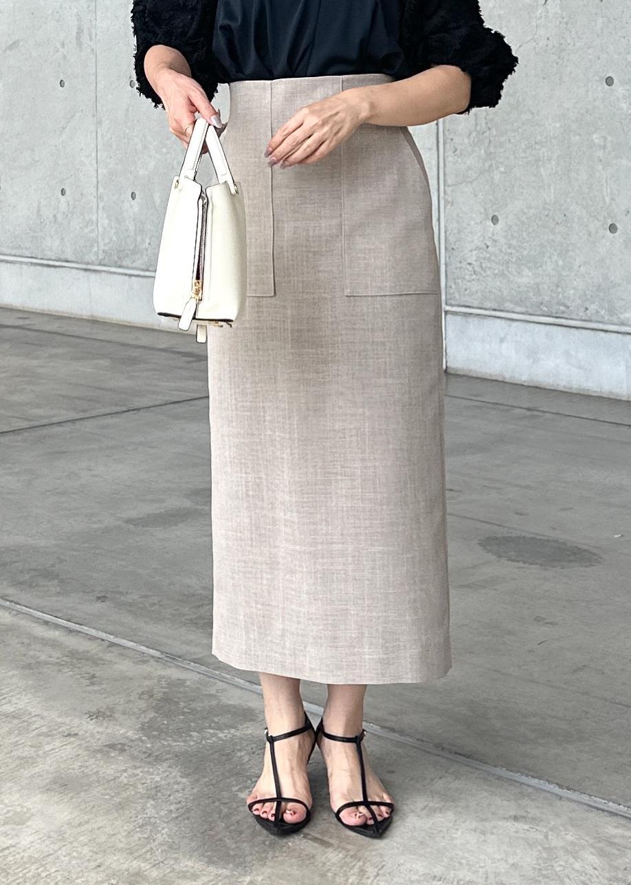 ROPÉリネンライク ポケット付きタイトスカート/イージーケアベージュ / 36¥20,900レビュー身長156cm、36サイズ着用。