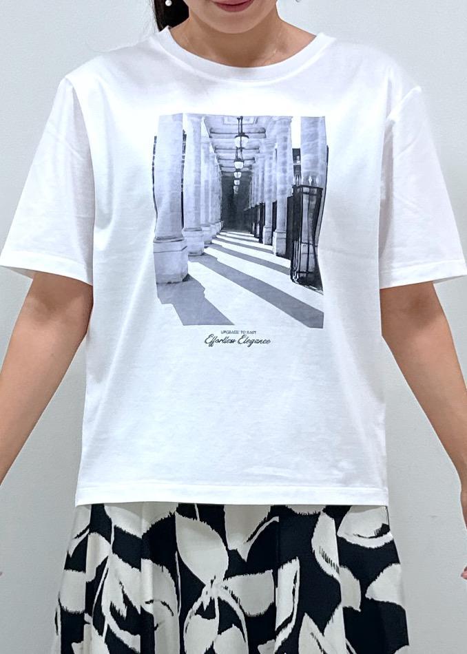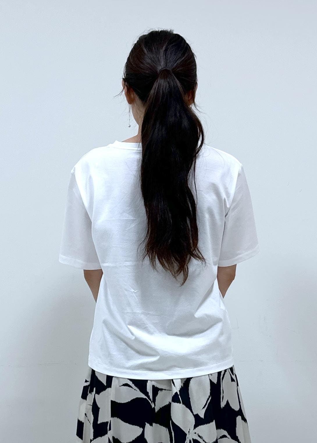 ROPÉプリントTシャツ/イージーケアホワイト系 / F¥8,800レビュー着丈はヒップにかかかるくらいの長さです。