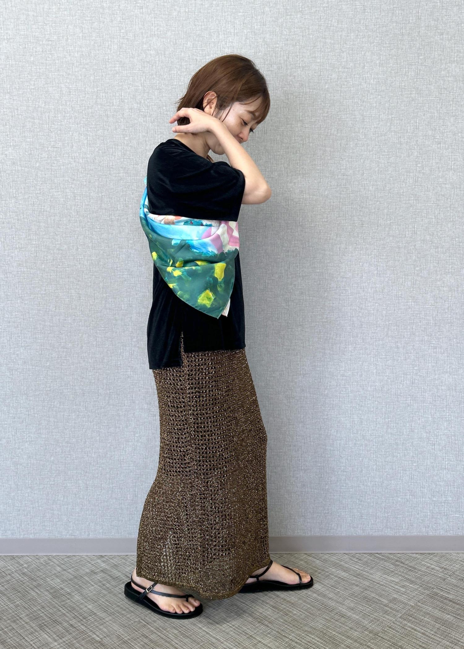 スカーフは大判サイズなのでアレンジもしやすいです。