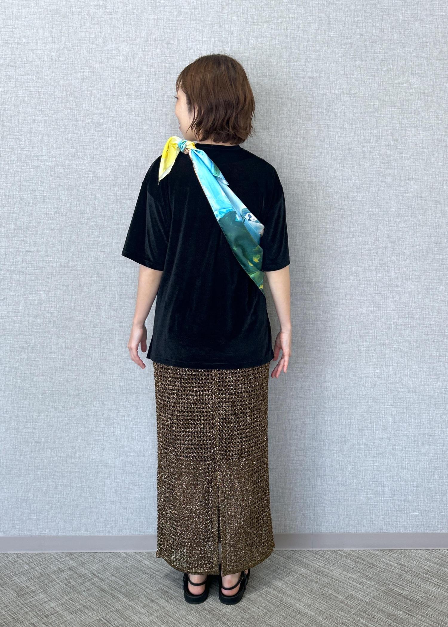 ベロアTシャツは肌辺りもなくサラッと着やすいです。