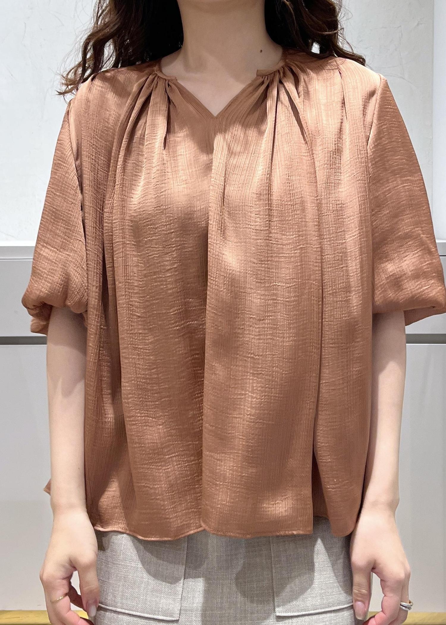 まだ暑いけど、少し秋らしい雰囲気にしたい時におすすめのブラウスです♪ -