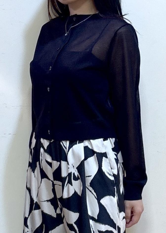 ROPÉ【洗える】LEVITAクルーネックシアーカーディガンブラック / F¥13,860レビュー身長152cm Fサイズ着用