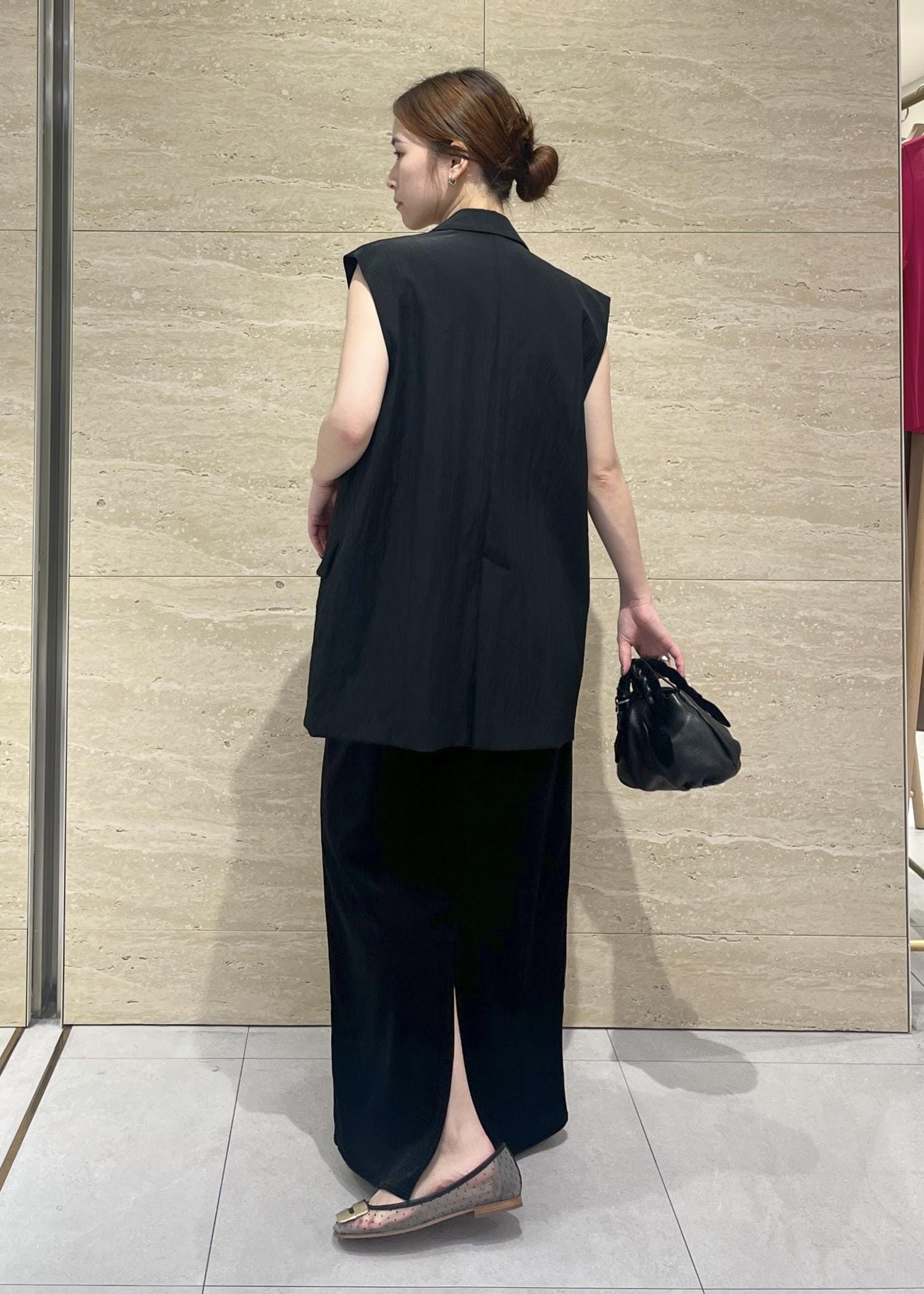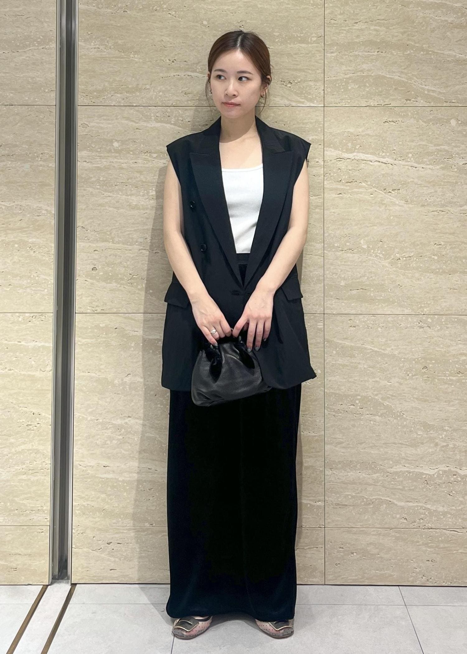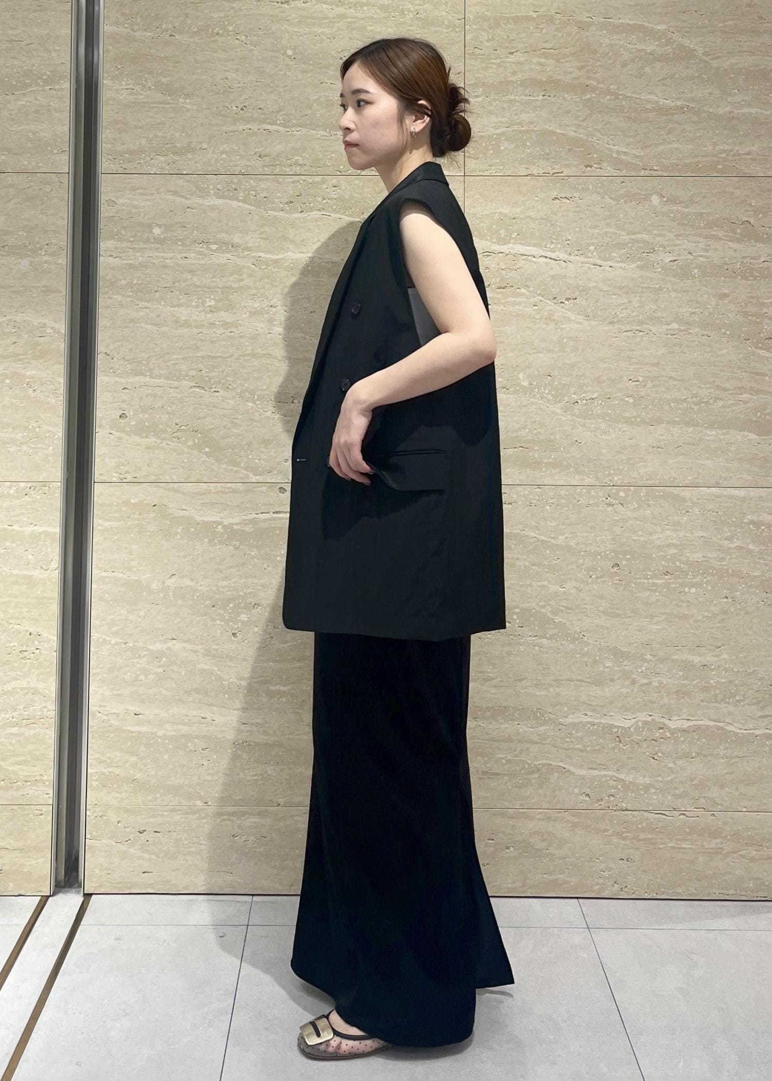オールブラックにインナーを白で合わせて抜け感を出しました!