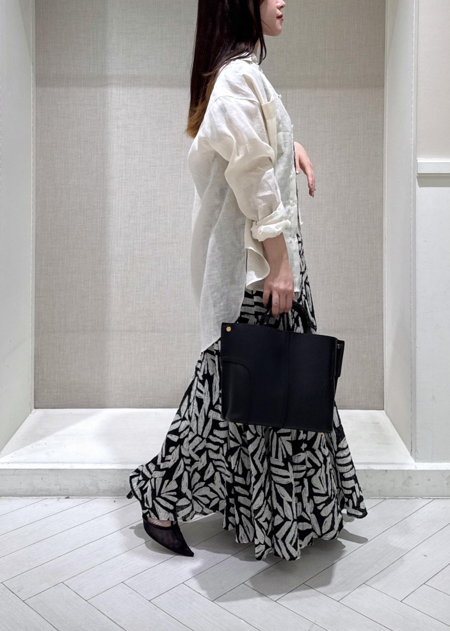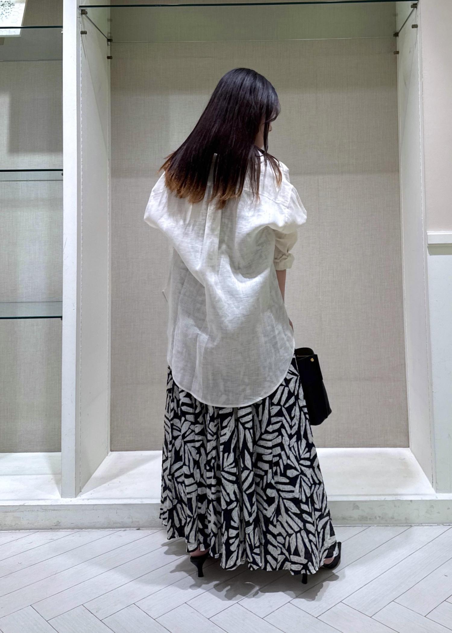 フランスのテキスタイルメーカー『DEVEAUX』の別注生地。清涼感のあるさっぱりとした素材感で涼しく着用していただけます。シワになりにくいのも嬉しいポイント♪ ロング丈ですが150cmで38サイズ着用で余裕もあるので低身長さんでも安心して着ていただけます。