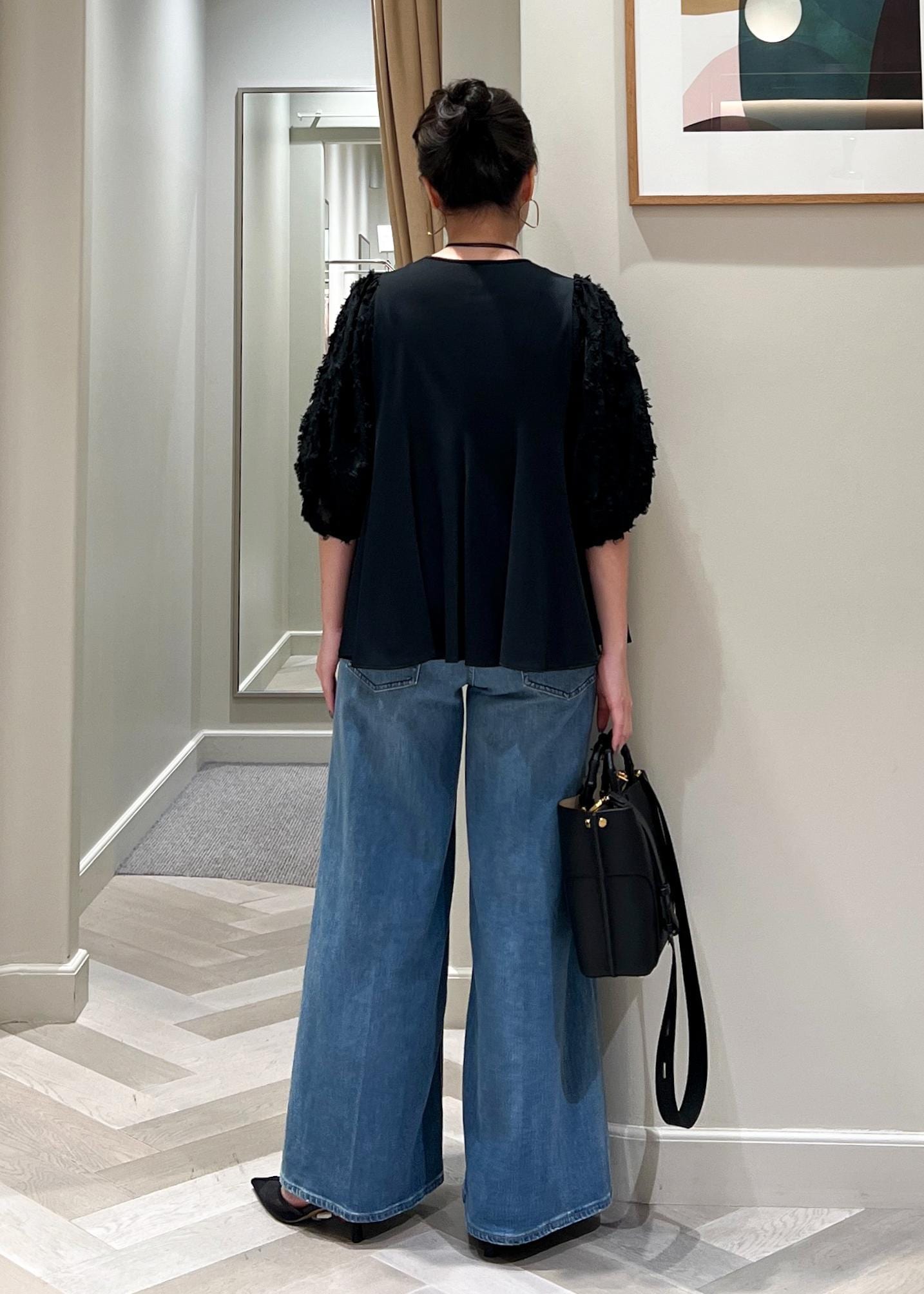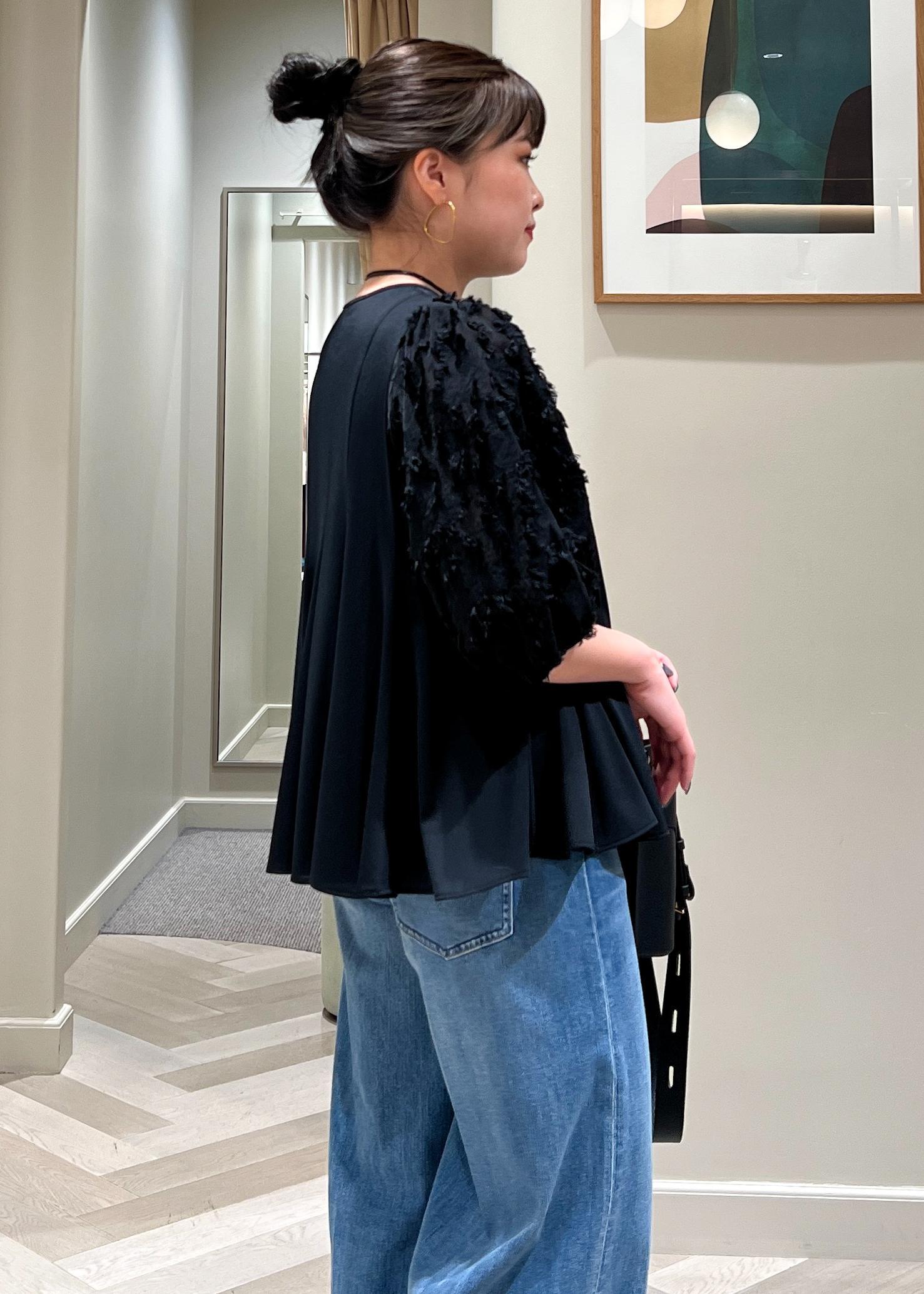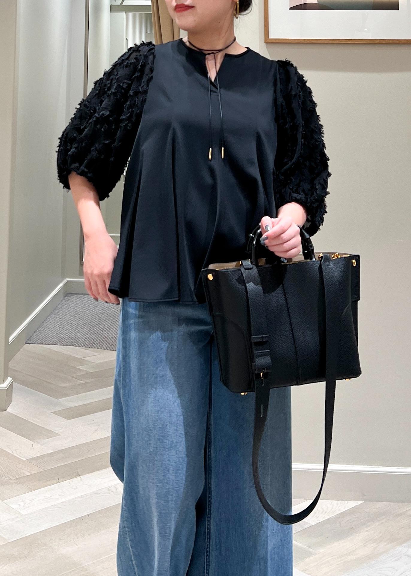 ROPÉジャガードスリーブコンビブラウス/イージーケアブラック / F¥19,800レビュー袖が肘まで隠れるくらいの五分袖で