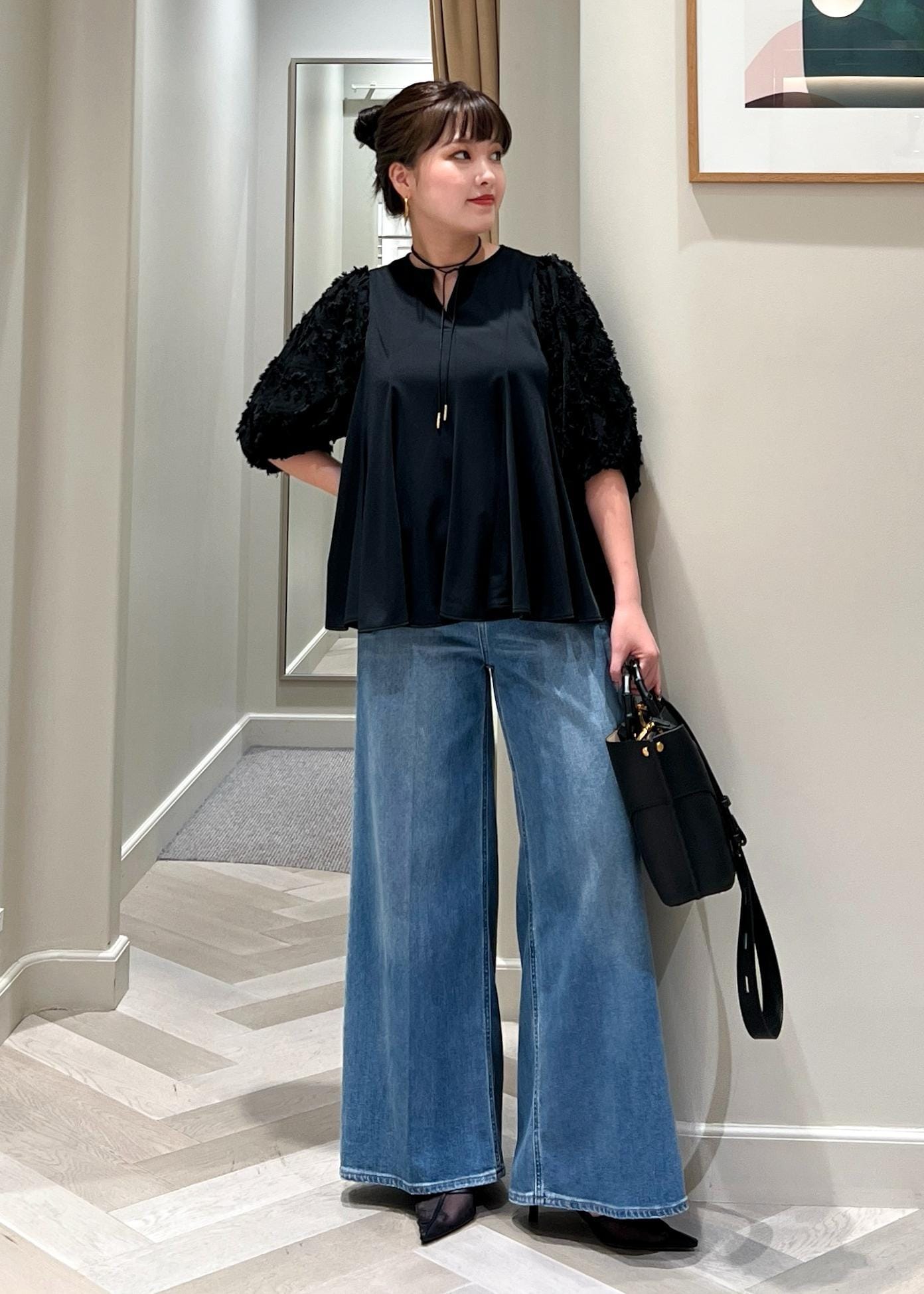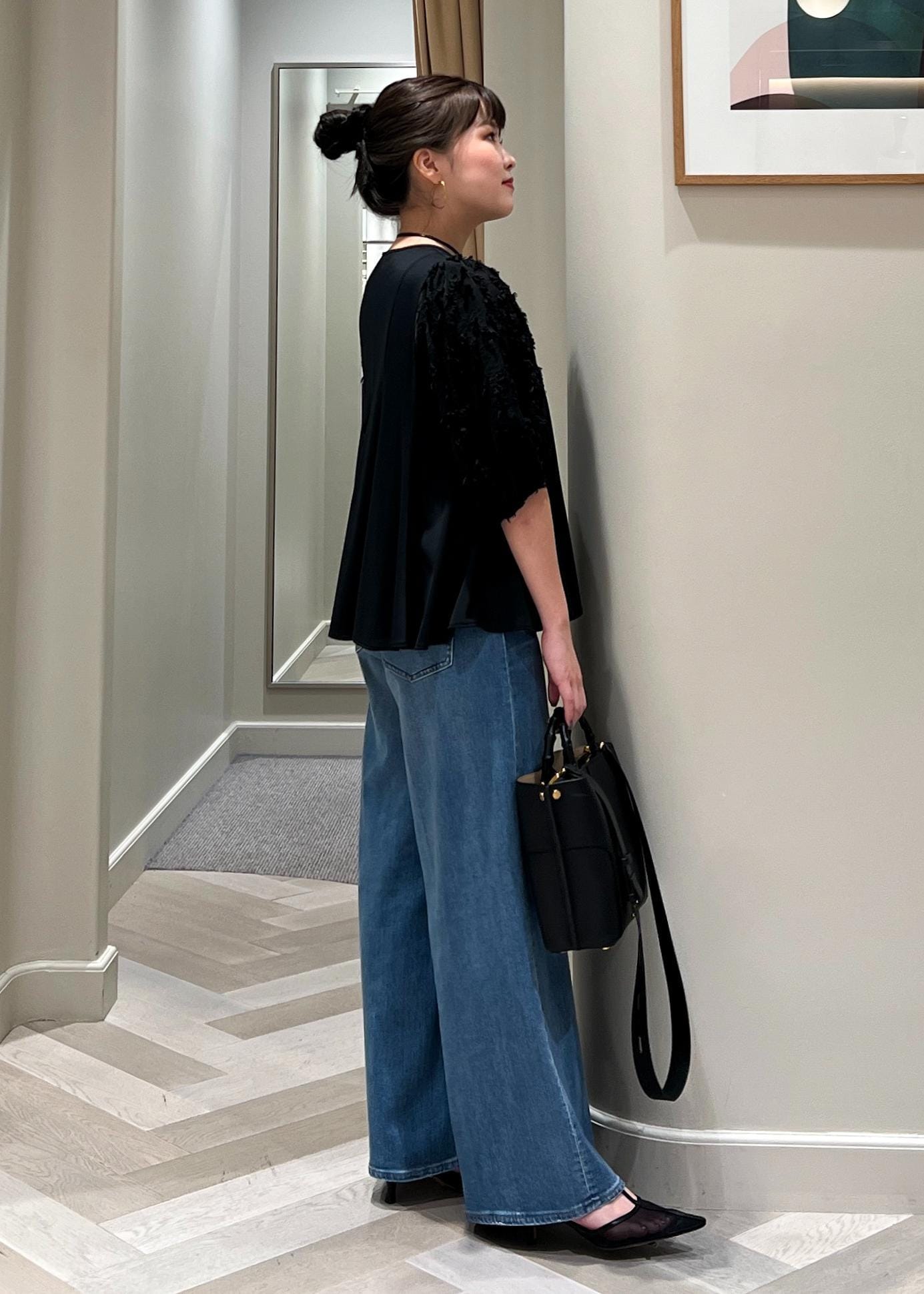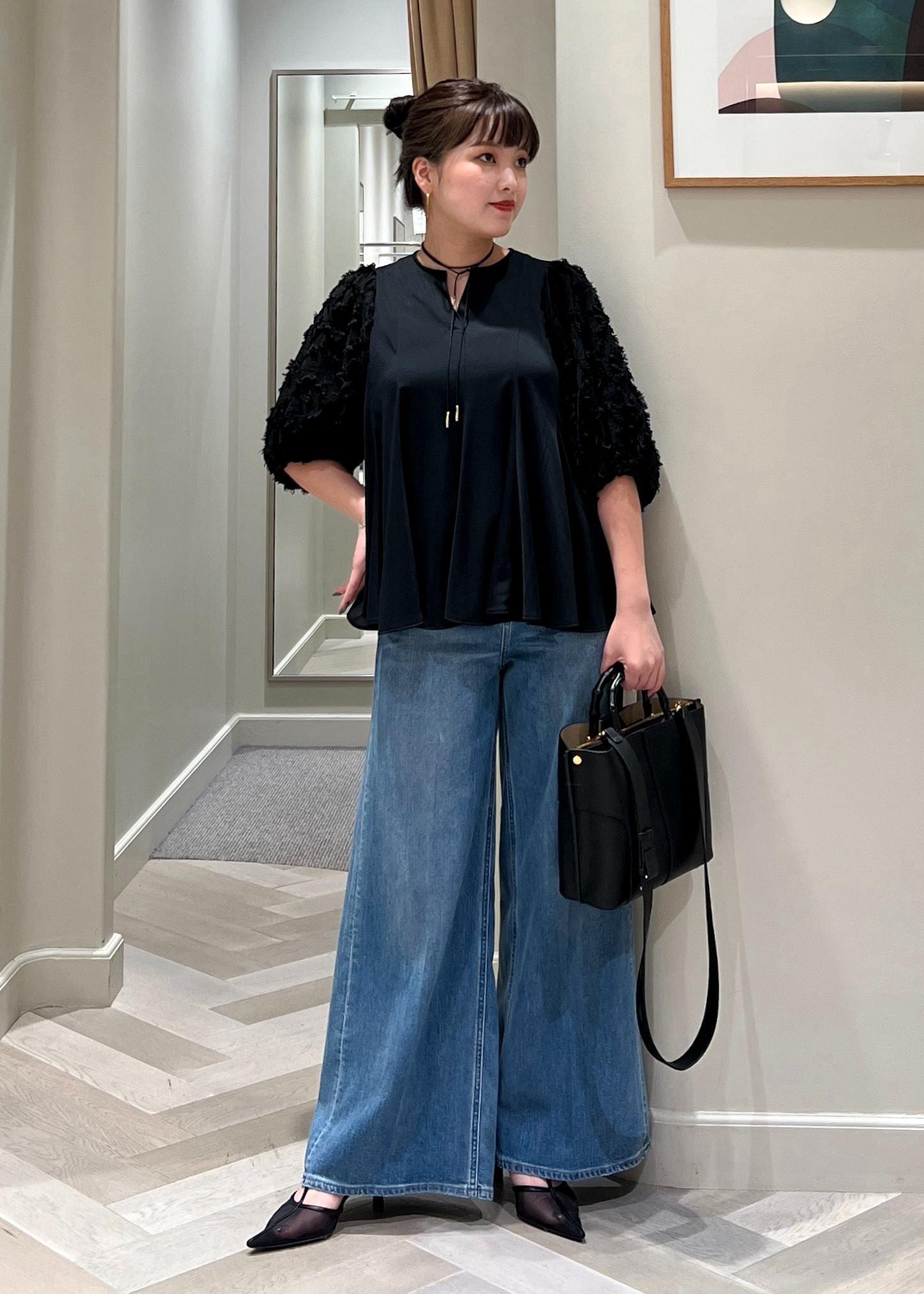 ROPÉジャガードスリーブコンビブラウス/イージーケアブラック / F¥19,800レビュー袖が肘まで隠れるくらいの五分袖で