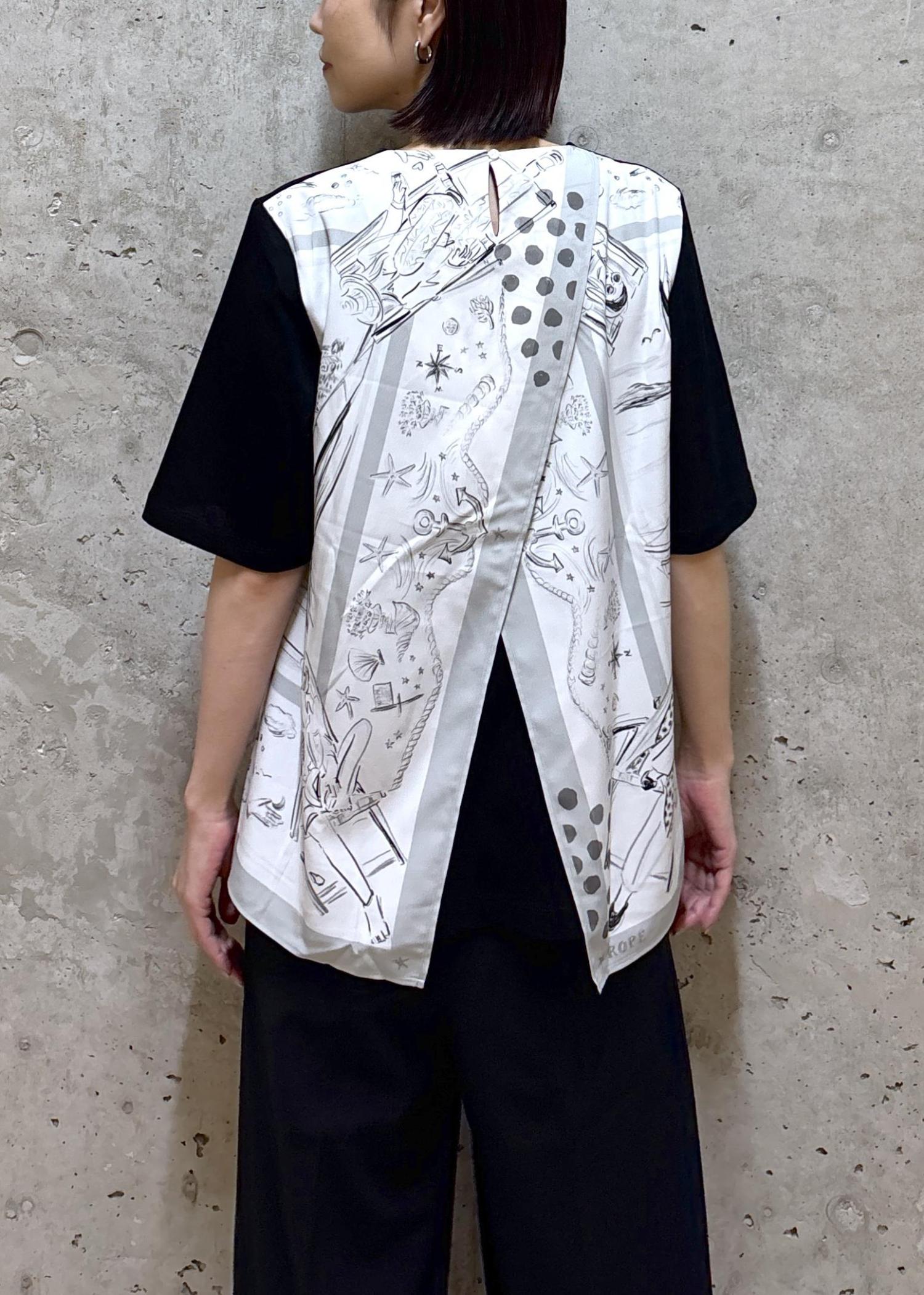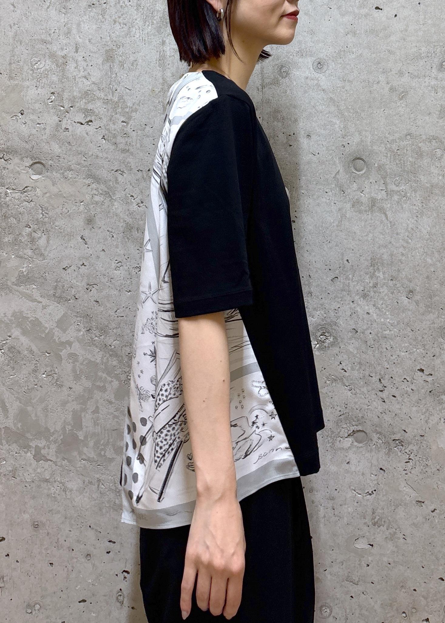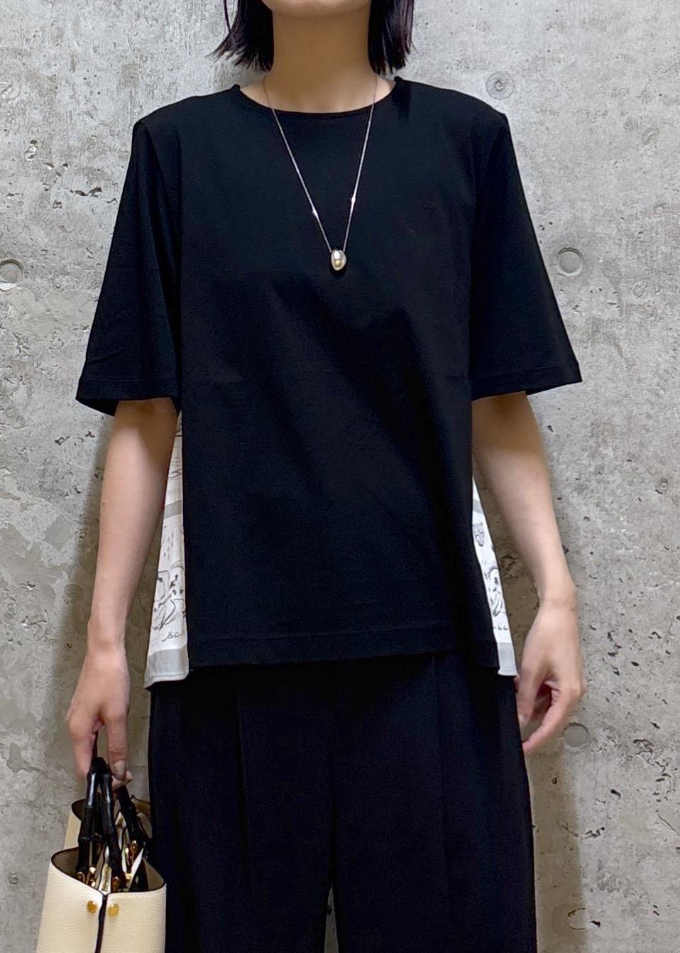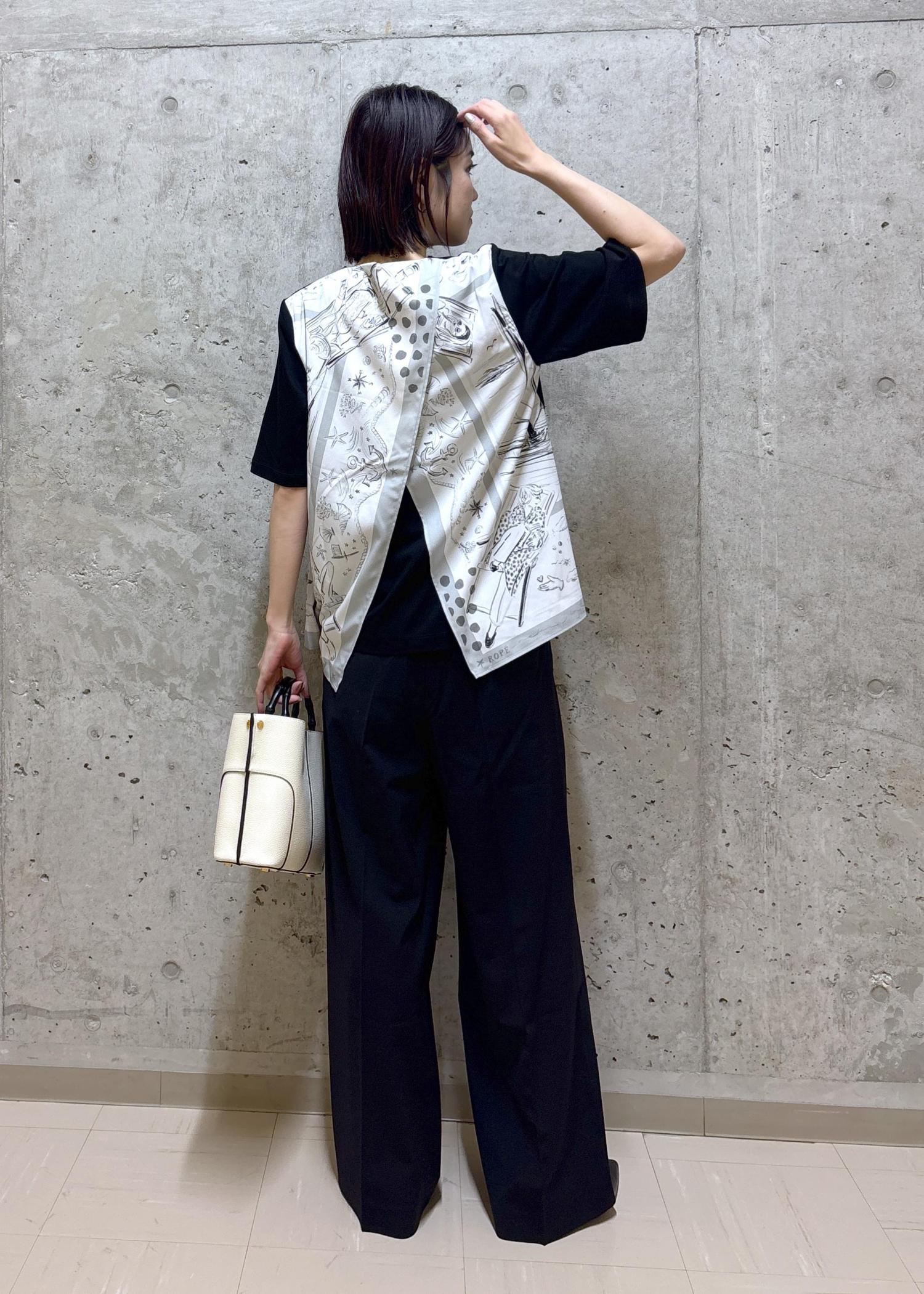 スカーフ柄カットソーを使ったモノトーンコーデ