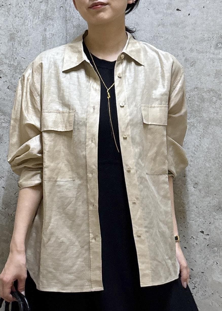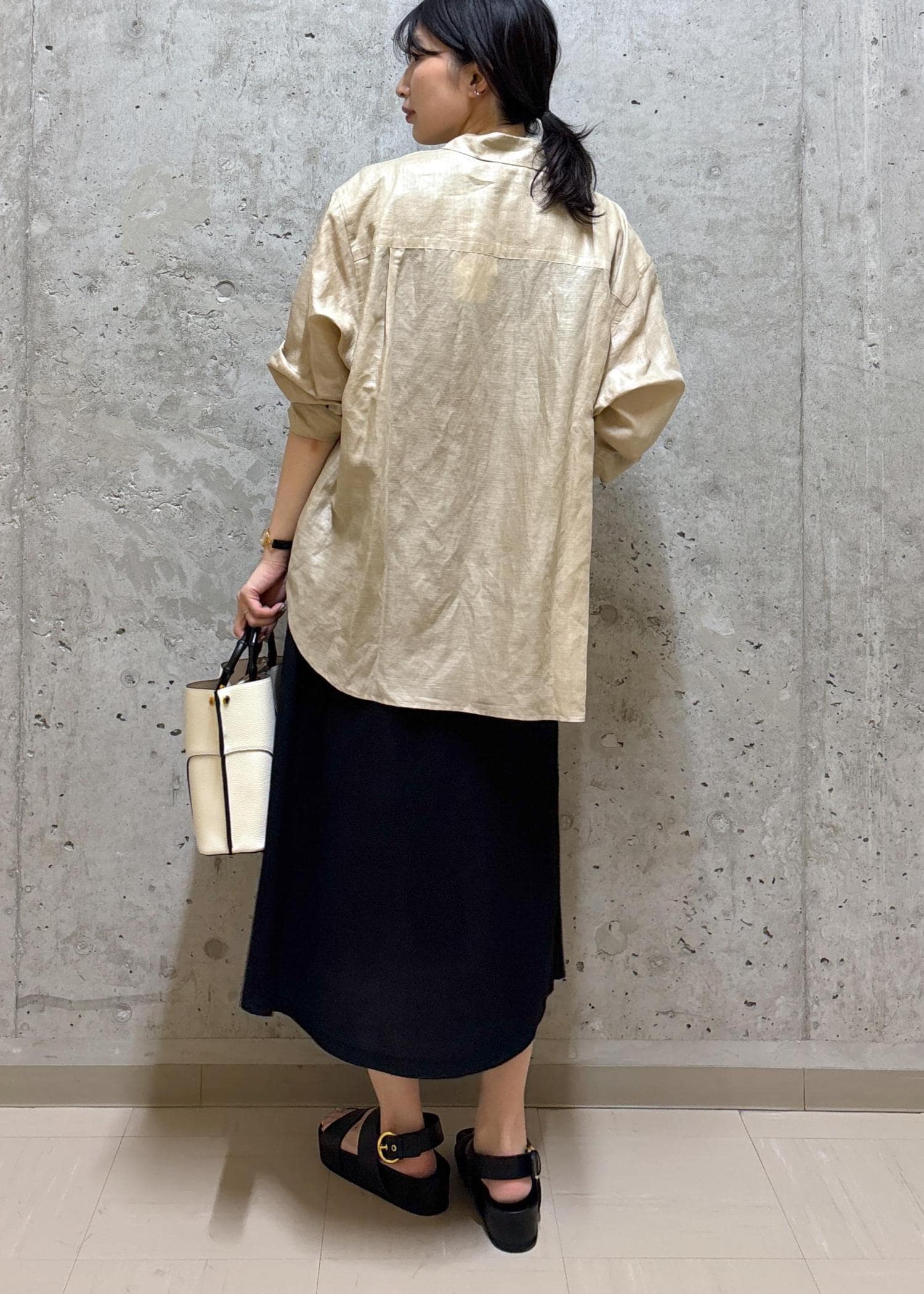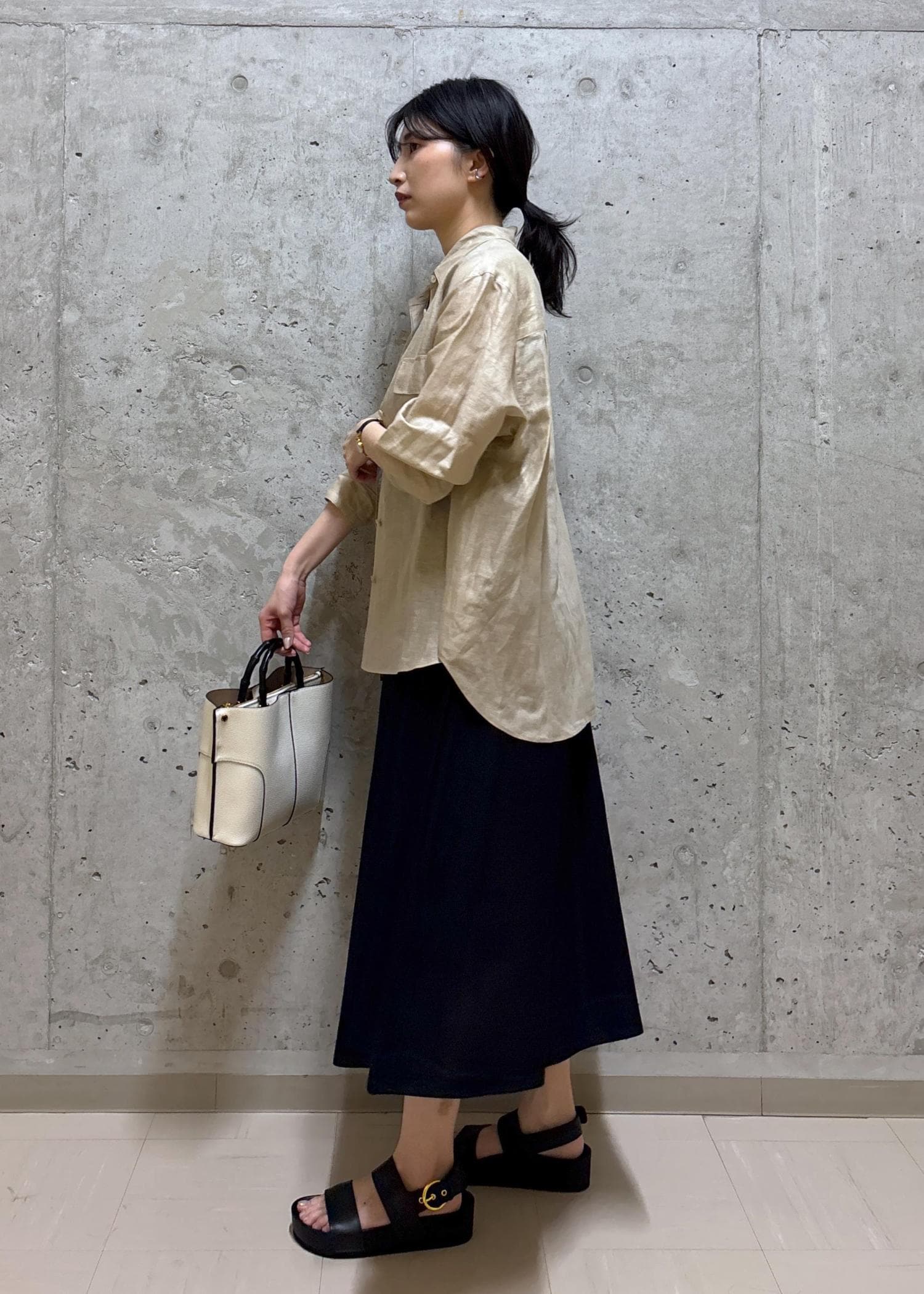 薄手でリネンのナチュラルな風合いと清涼感があり、少しツヤ感があることでキレイめな印象で着られます。