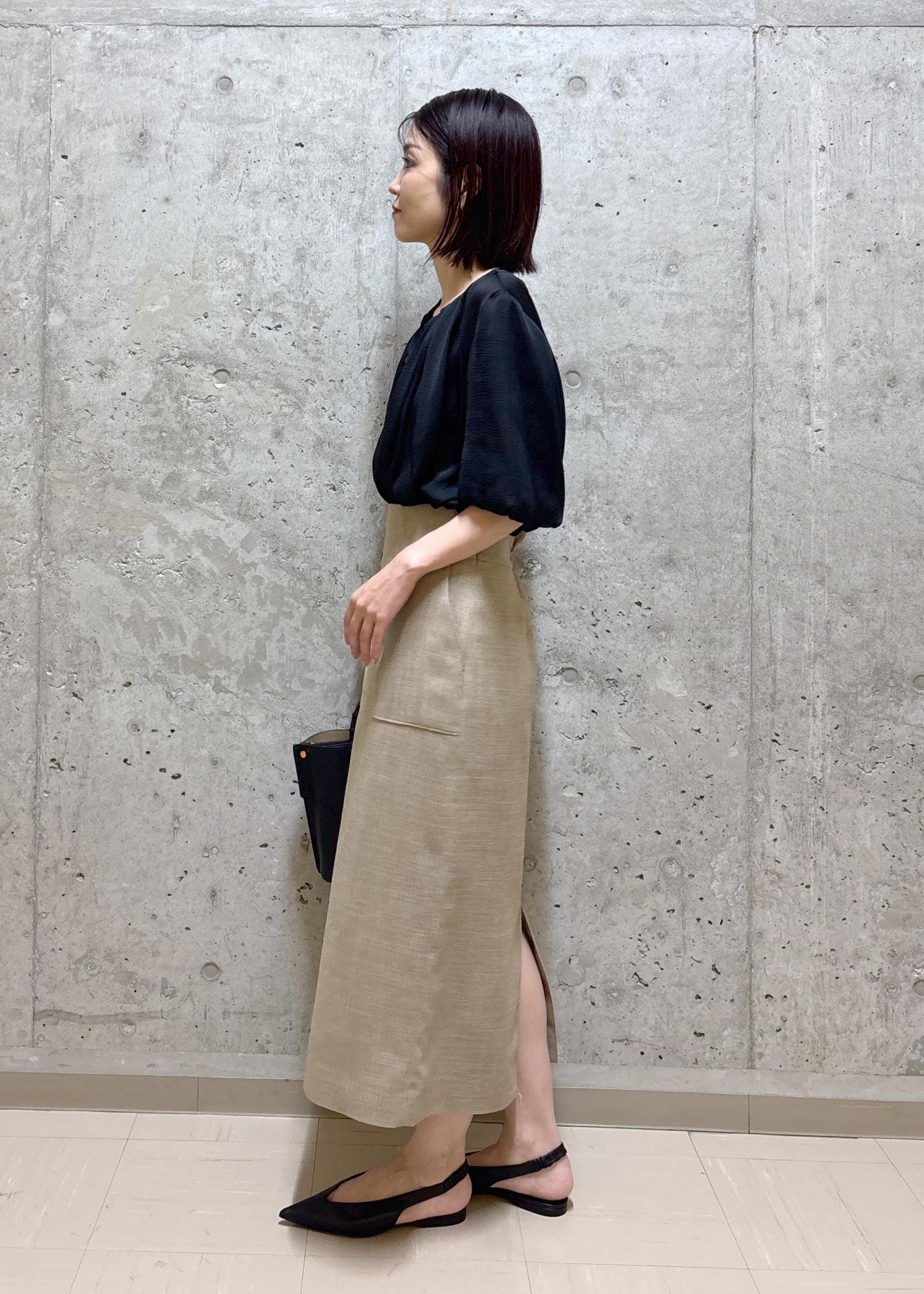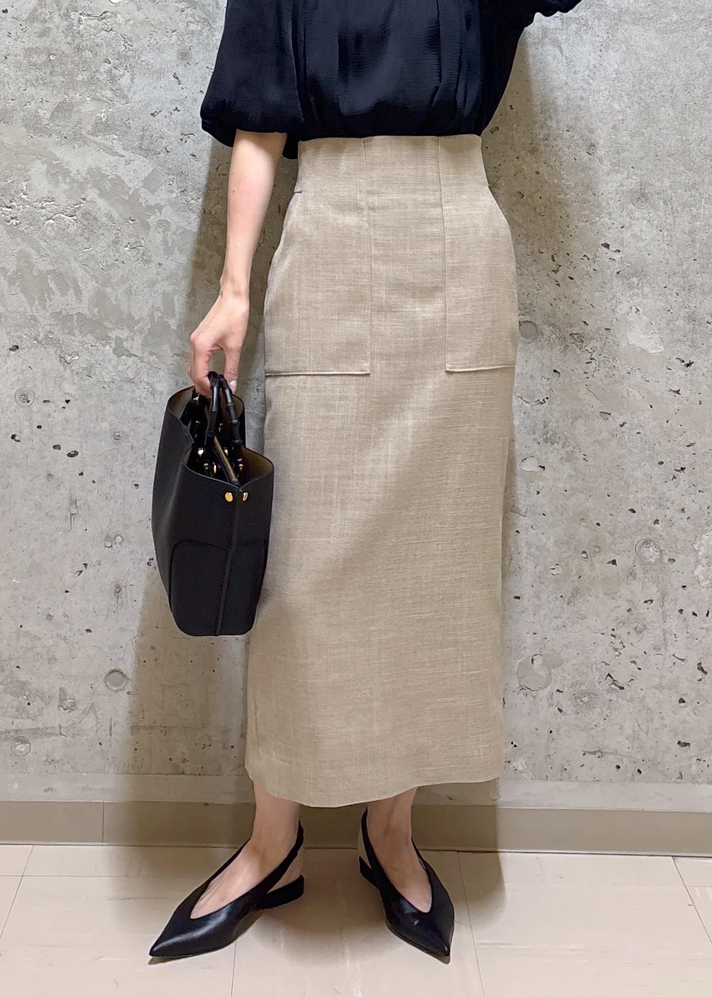 ROPÉリネンライク ポケット付きタイトスカート/イージーケアベージュ / 36¥20,900レビューウエストは手のひらが入るくらいゆとりがあり、トップスインをしてちょうど良いサイズ感です。