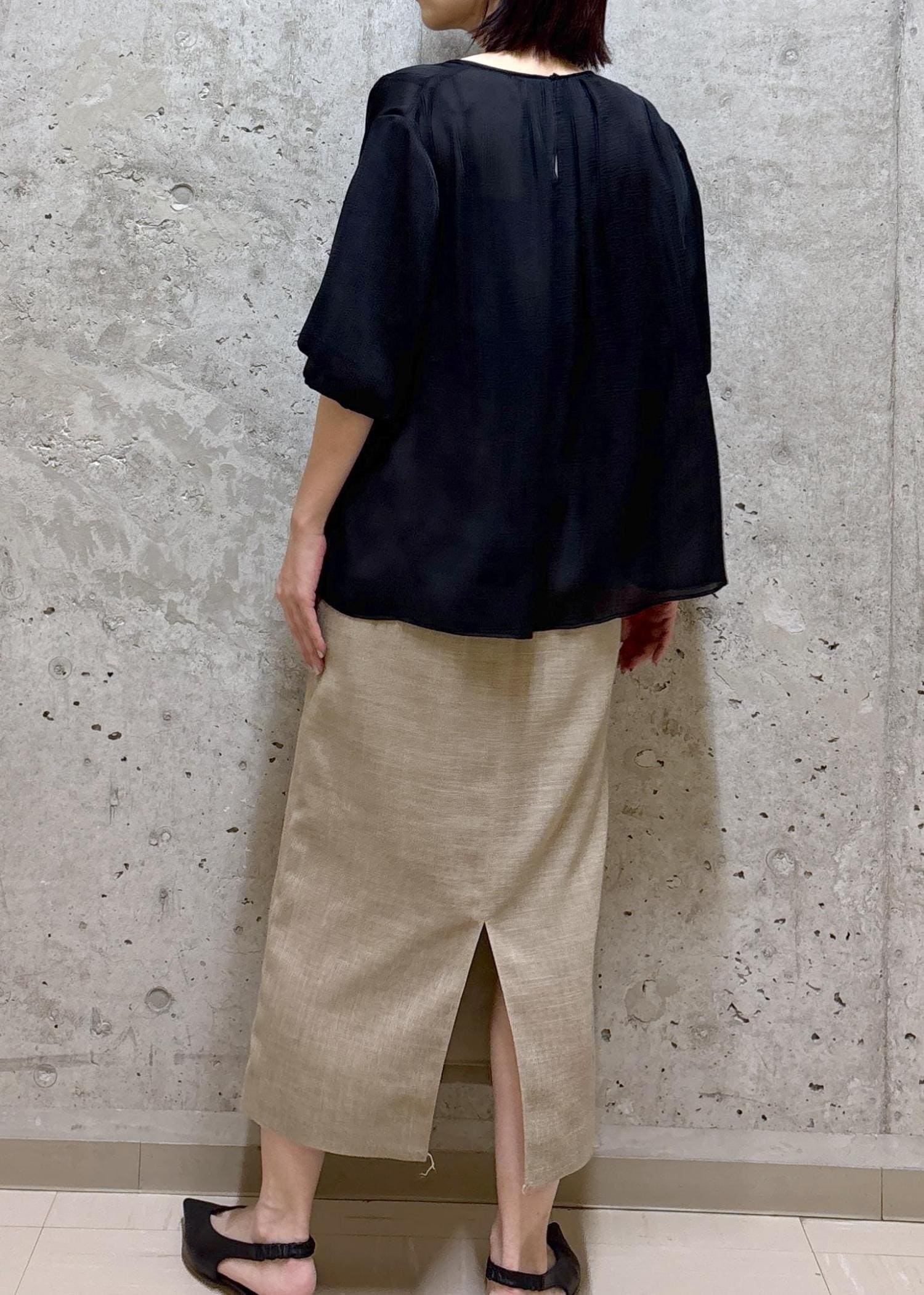 ほんのりシアーな素材なので今すぐ着られます◎