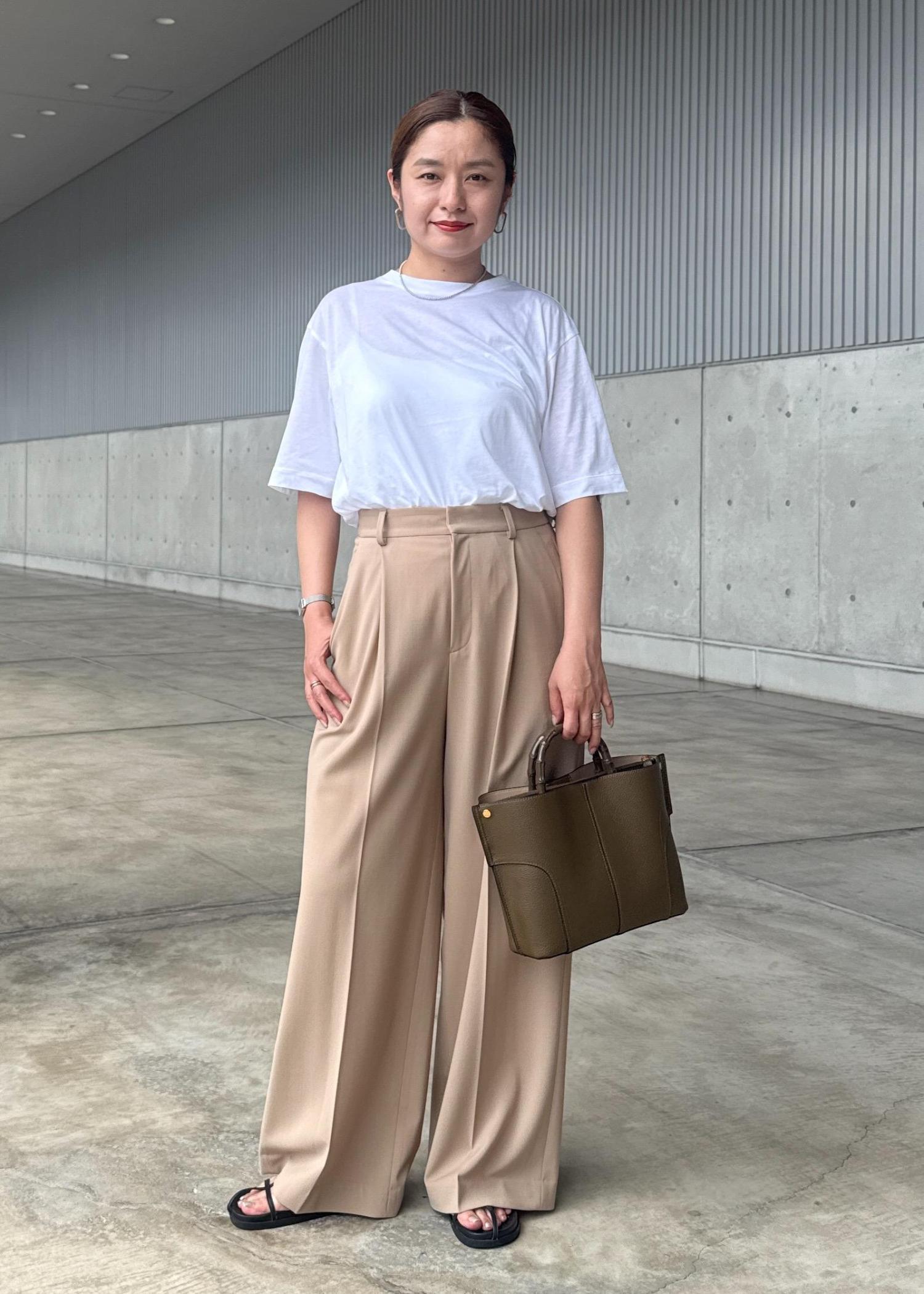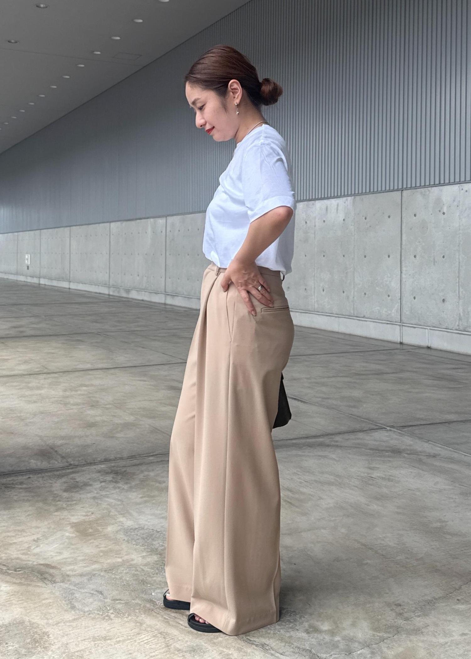 ワイドラインですが、落ち感のある生地なので、ボリュームが出過ぎることなく綺麗なラインです。