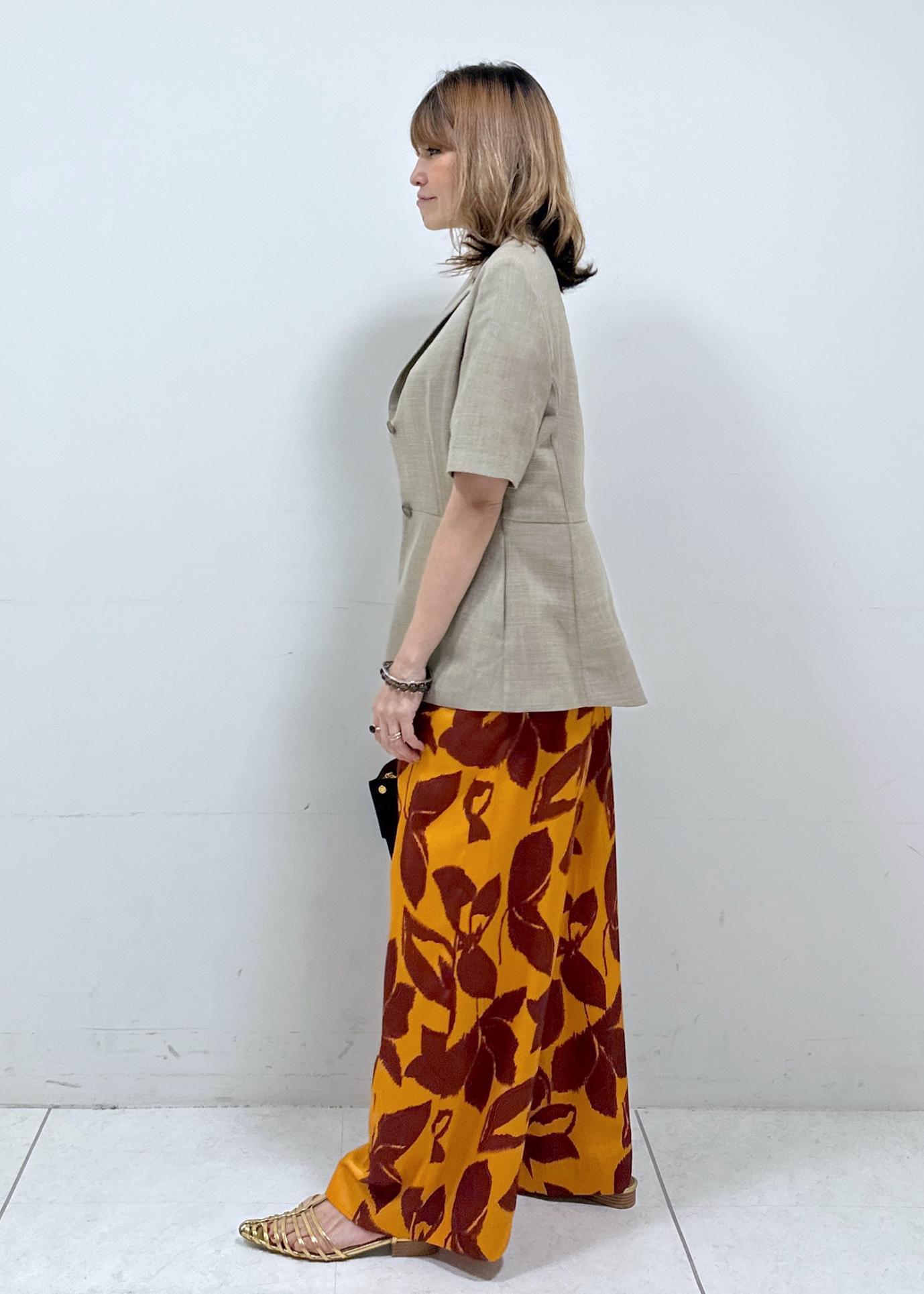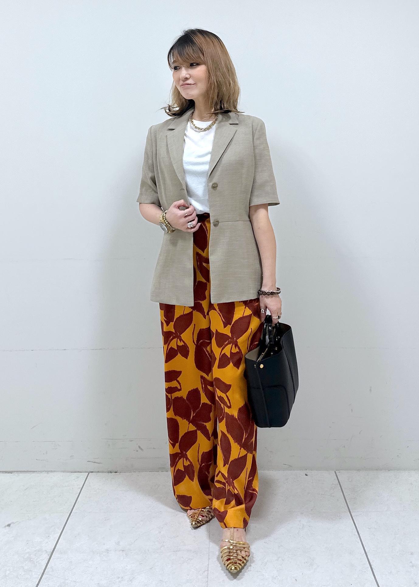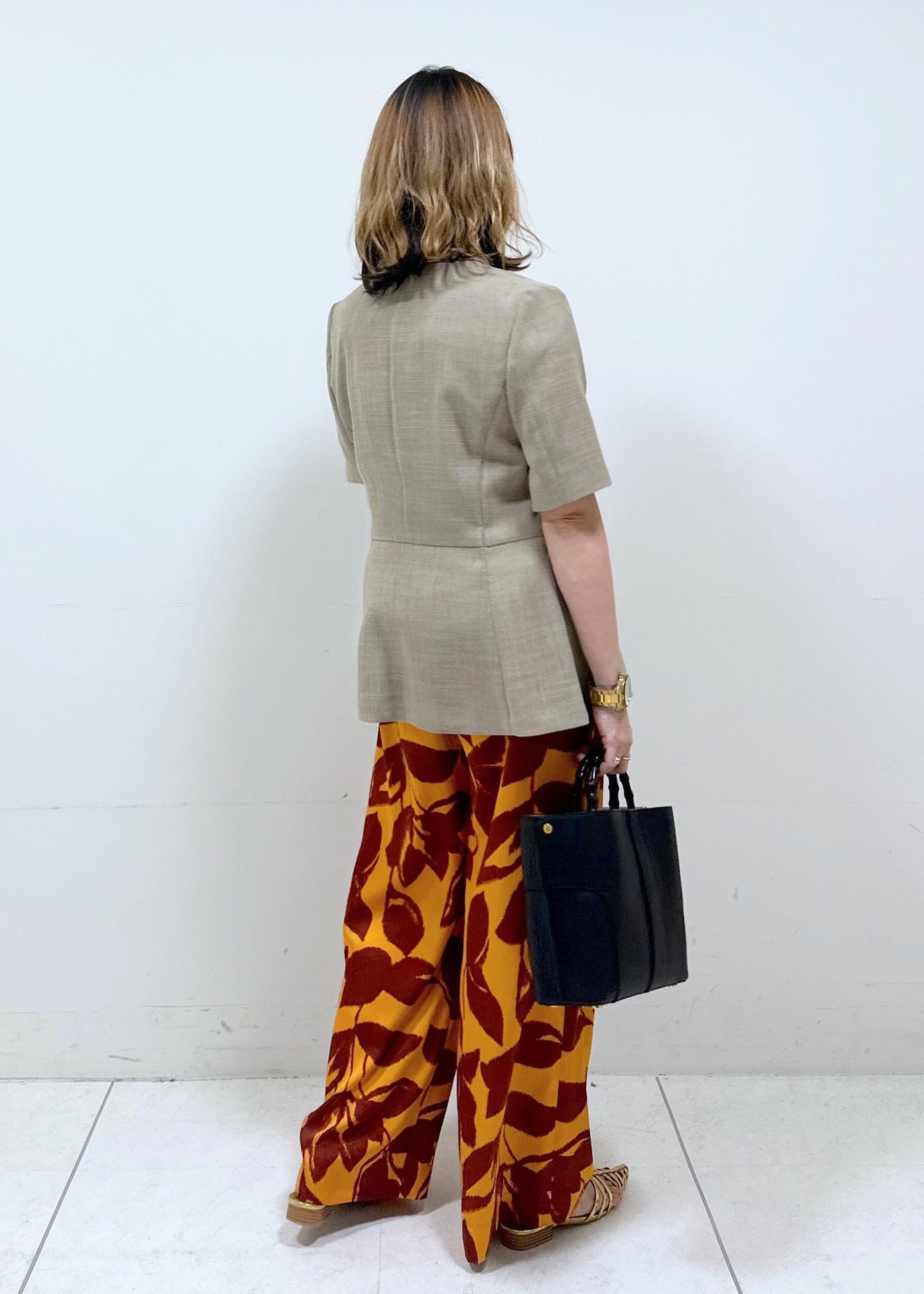 お仕事シーンにもオススメなハーフスリーブジャケットで華やかコーデ