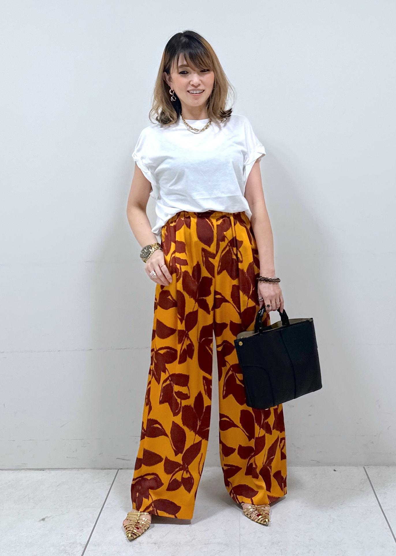DEVEAUXジオメトリックフラワーイージーワイドパンツ