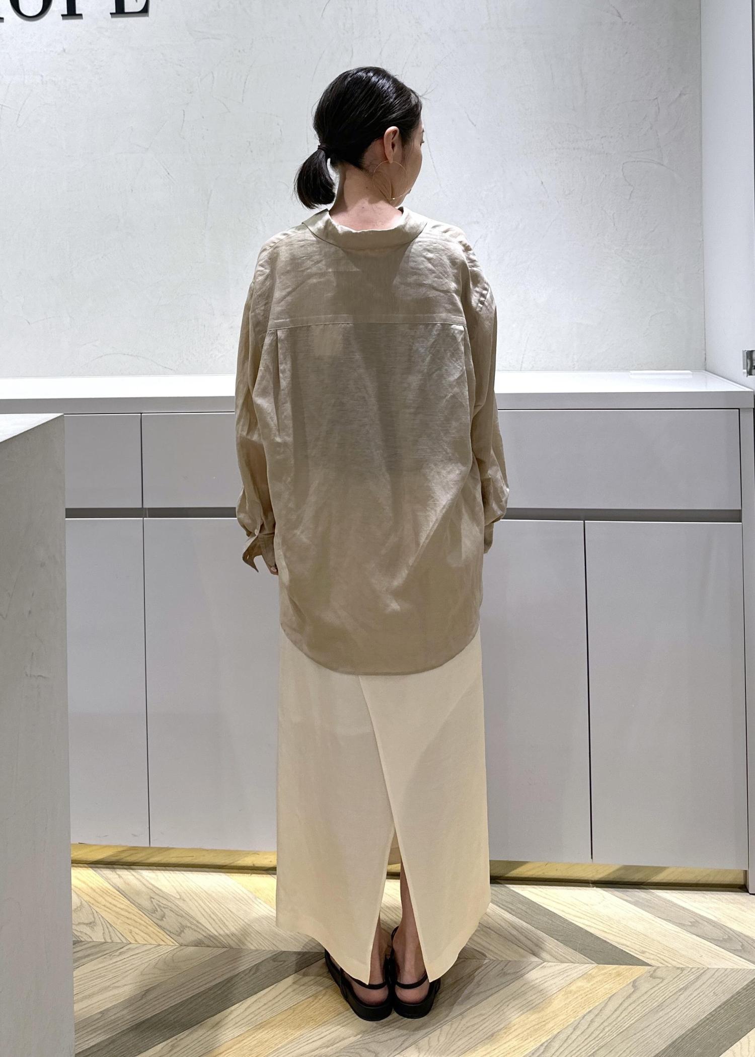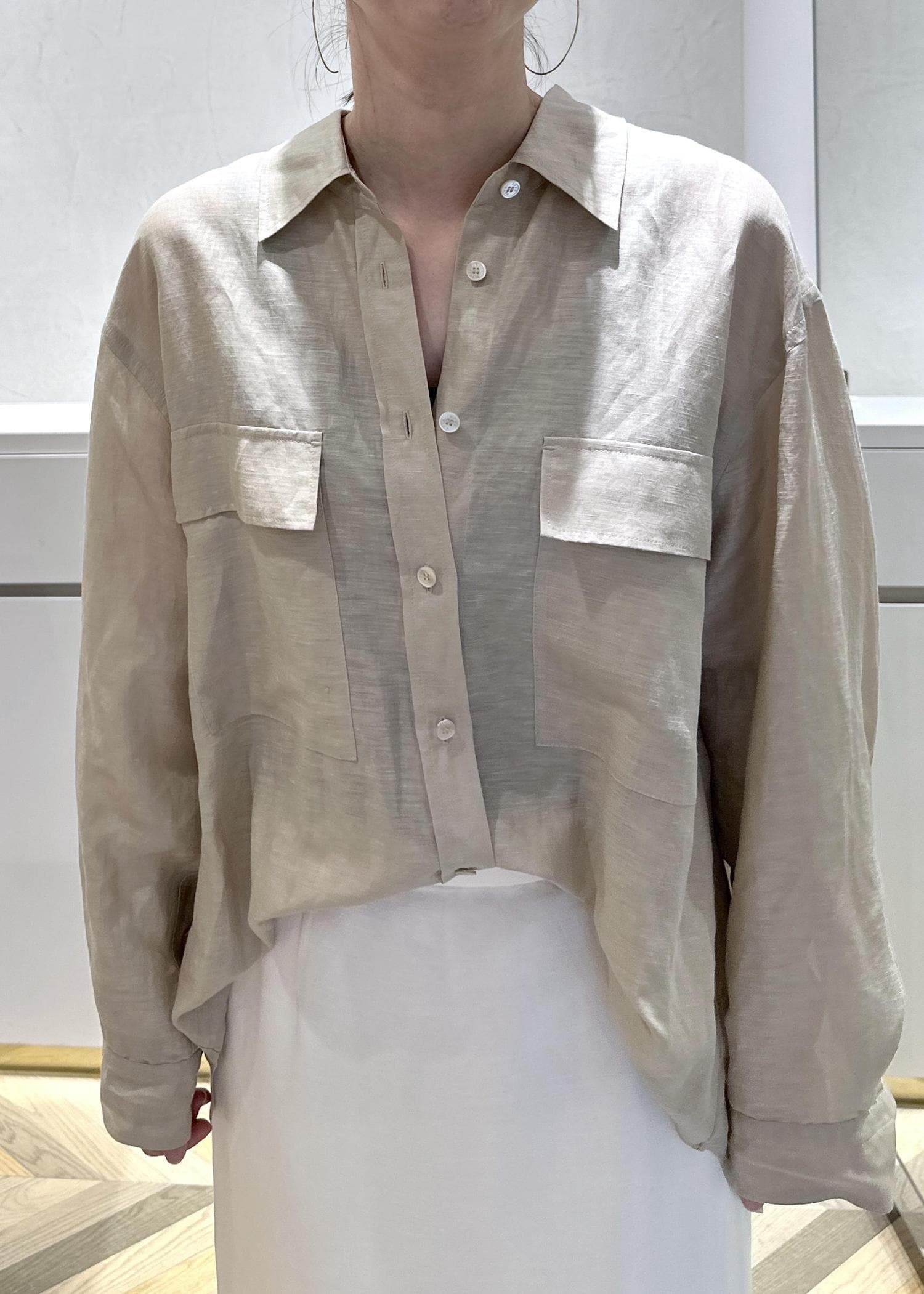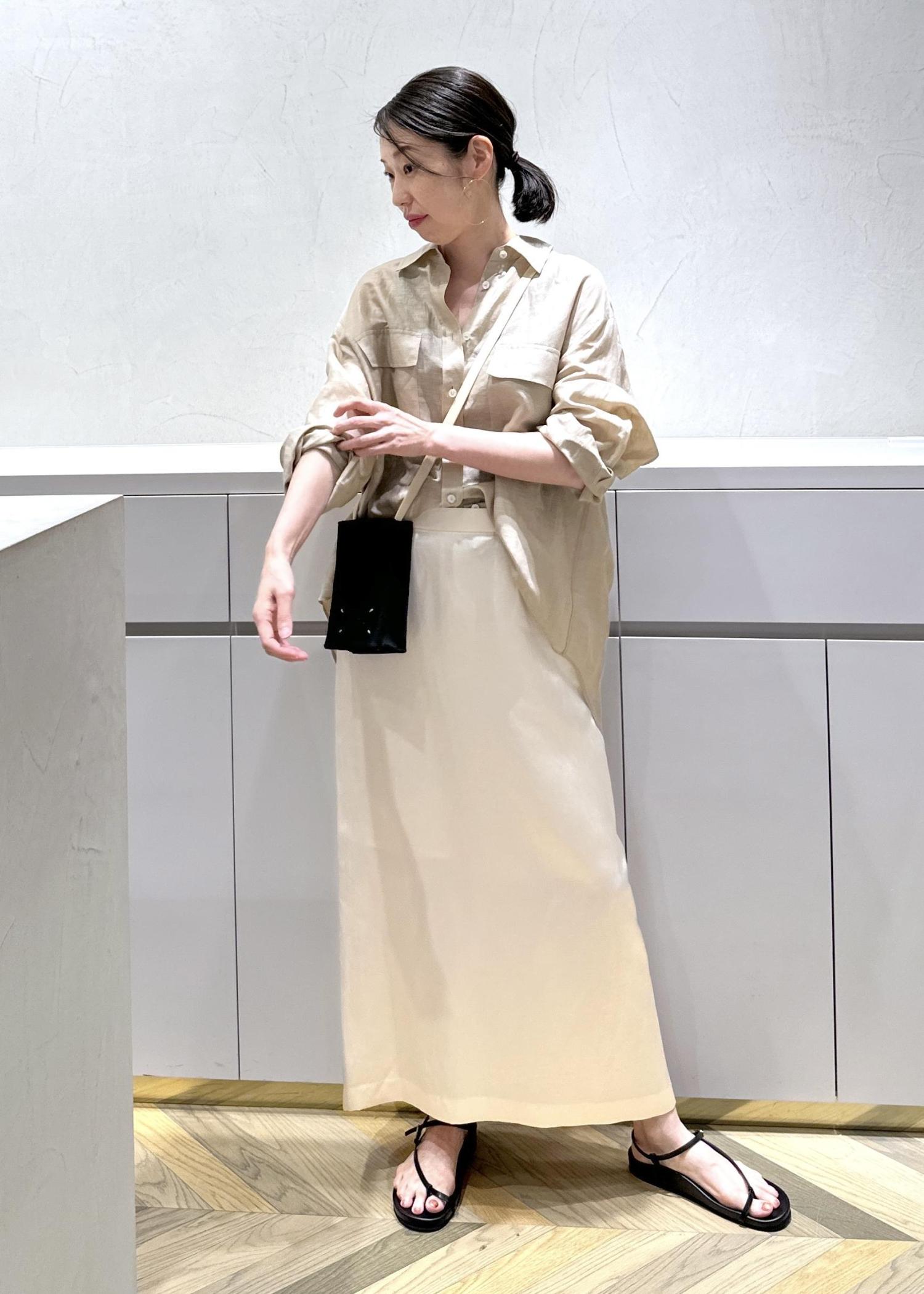 アウトレットROPÉブライトリネン フラップシャツブラウス/洗えるベージュ / F¥16,500レビュー160cmでヒップ下まで着丈があるので、全体的にゆったり着られました。