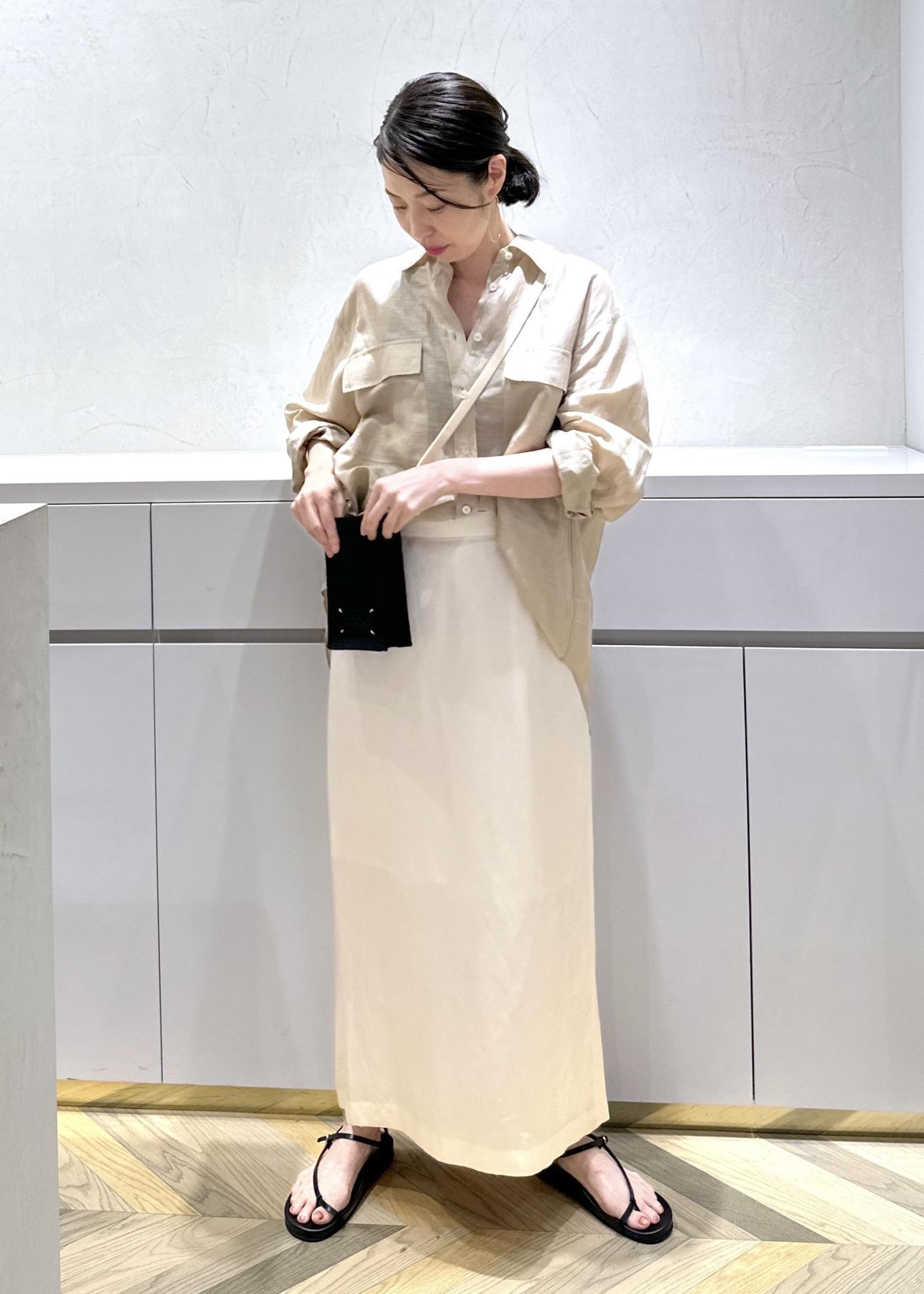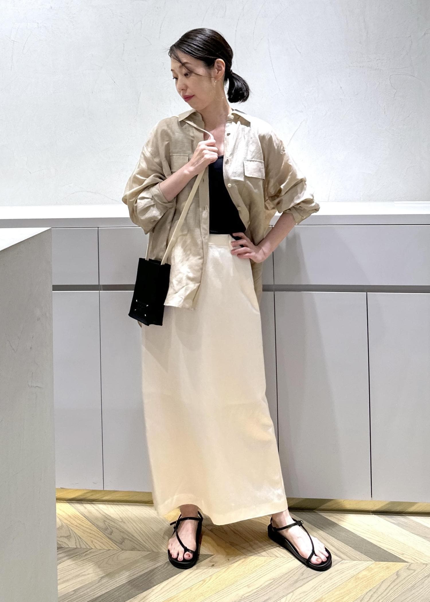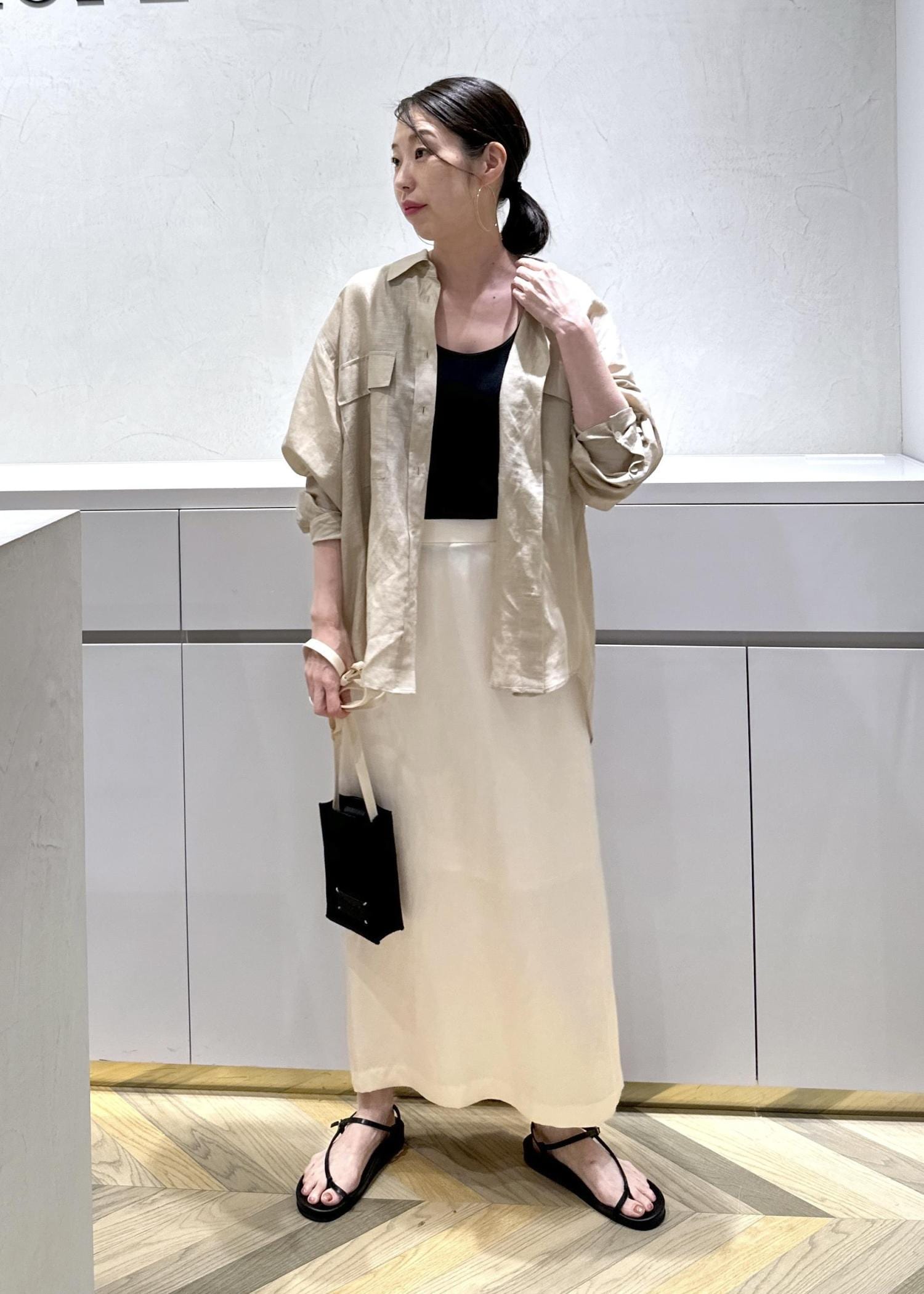 アウトレットROPÉブライトリネン フラップシャツブラウス/洗えるベージュ / F¥16,500レビュー160cmでヒップ下まで着丈があるので、全体的にゆったり着られました。