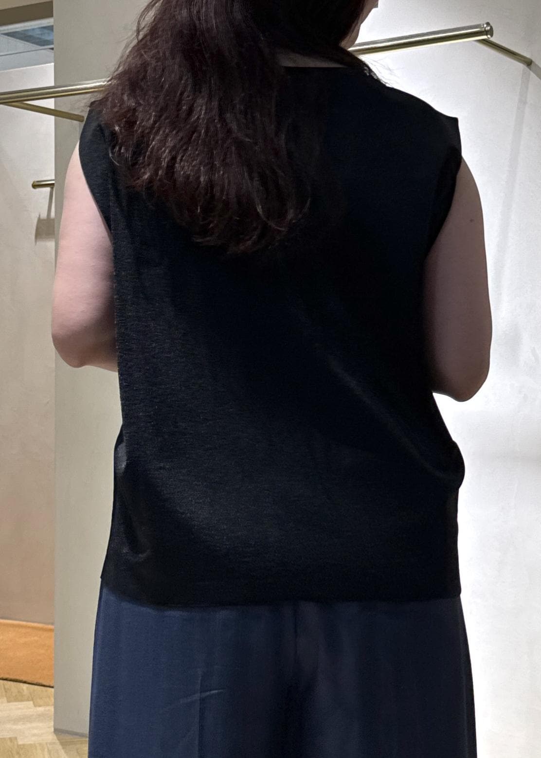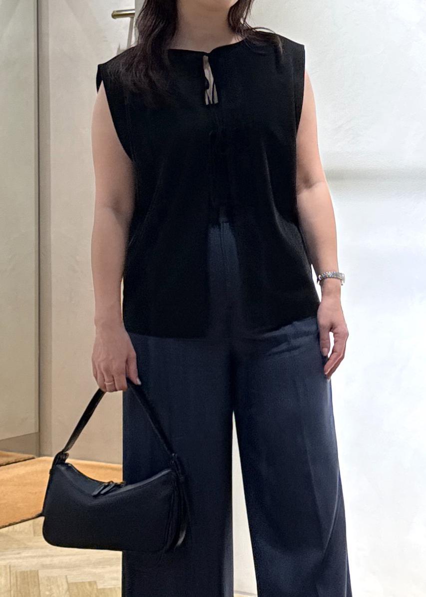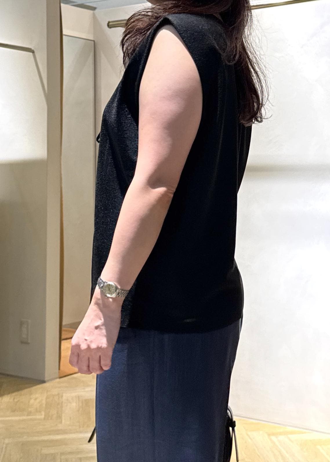 ノースリーブでも肩が隠れるディテールは腕が出ている感を軽減してくれる嬉しいポイント◯