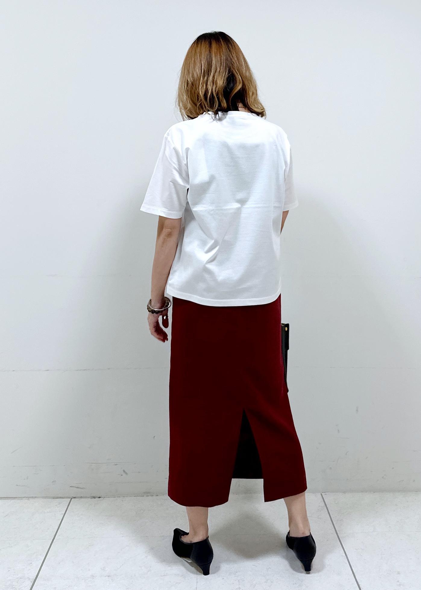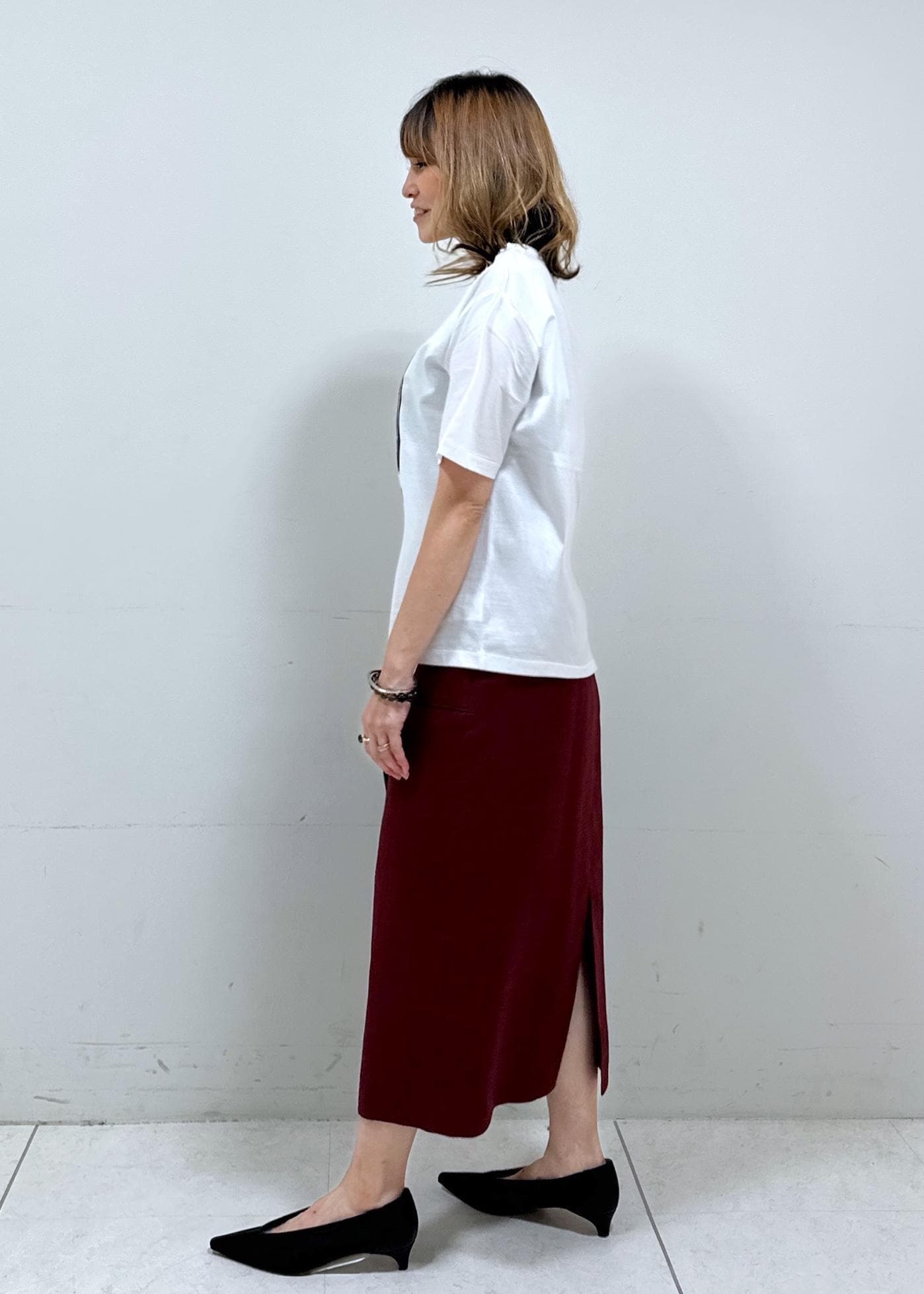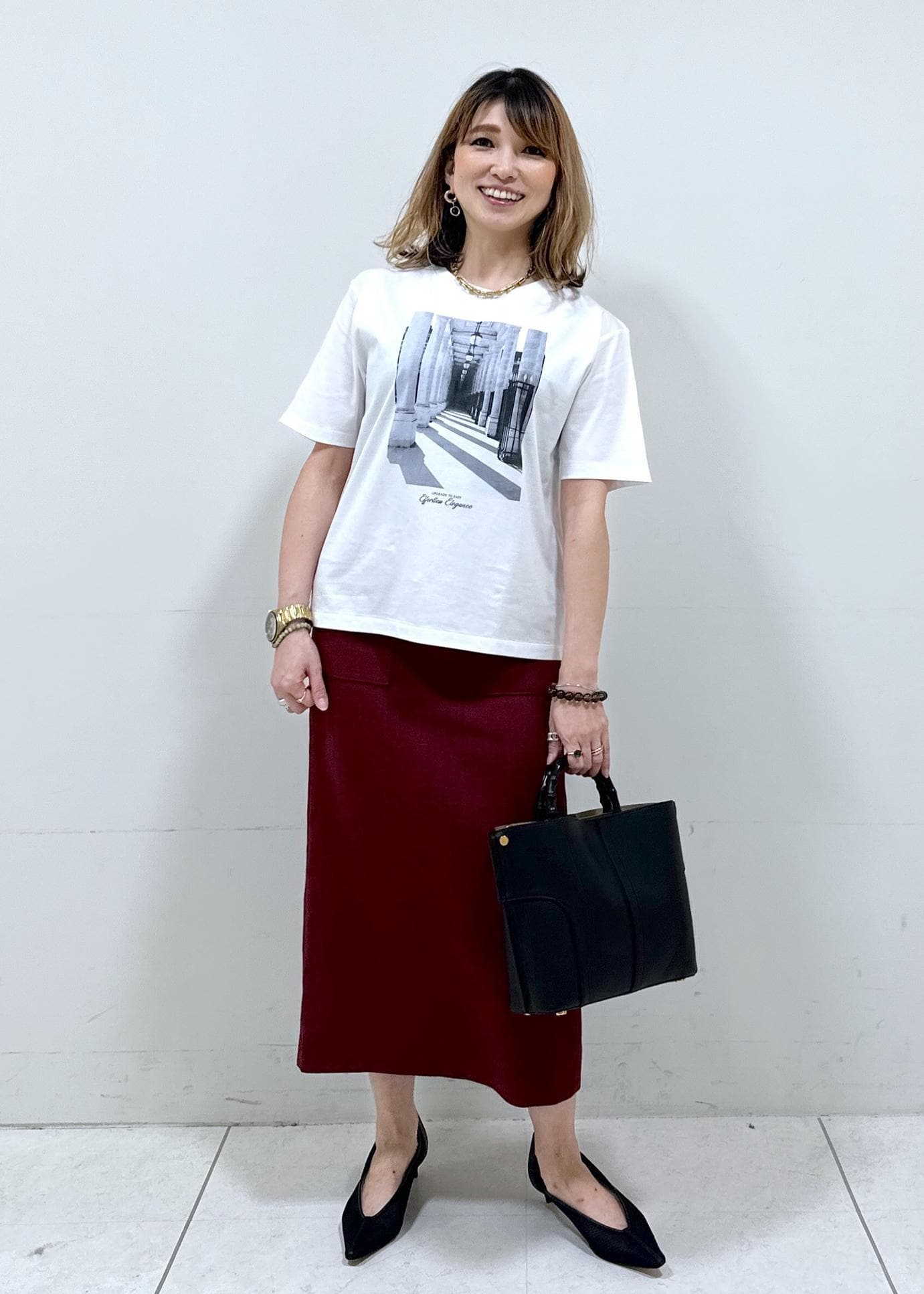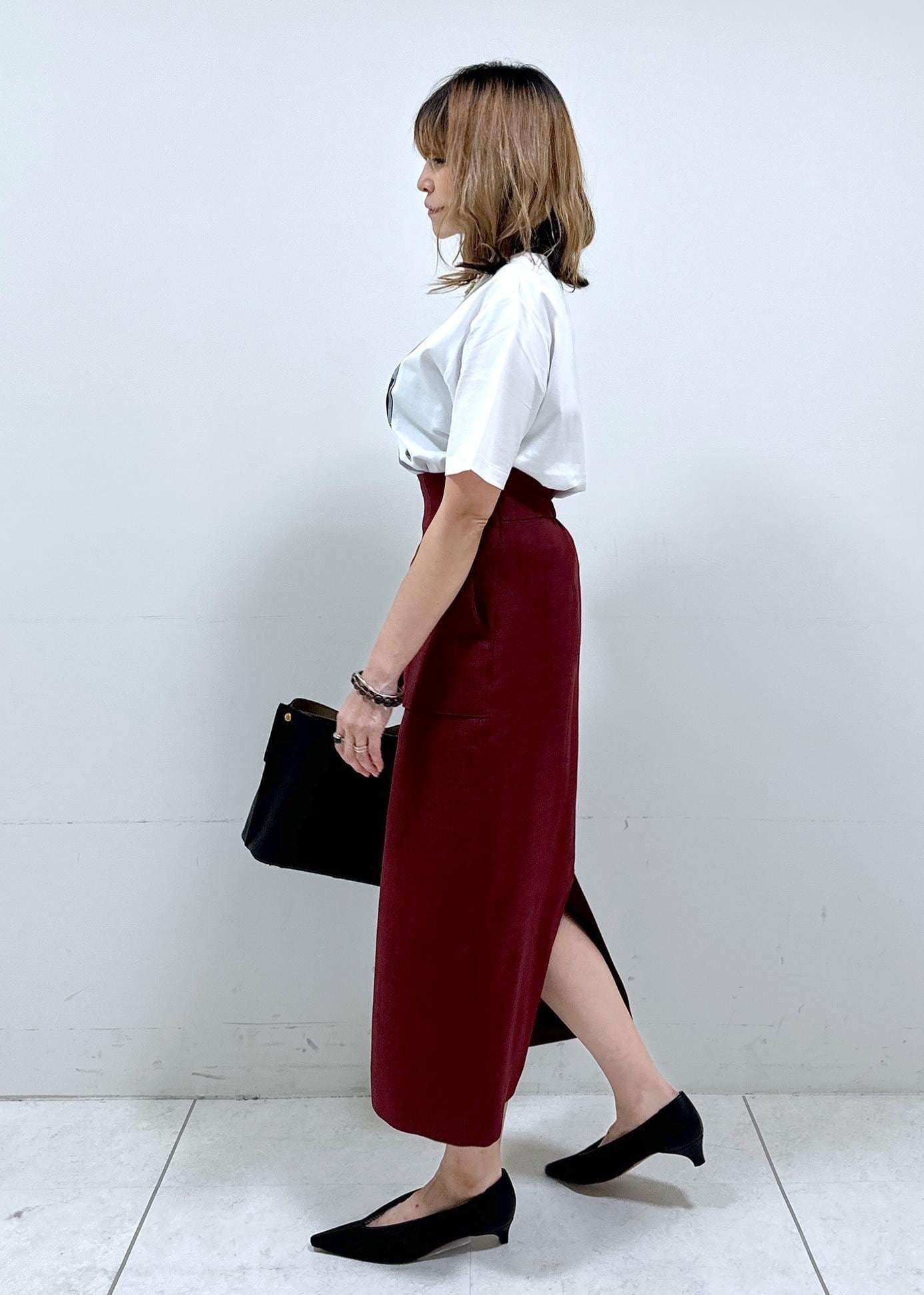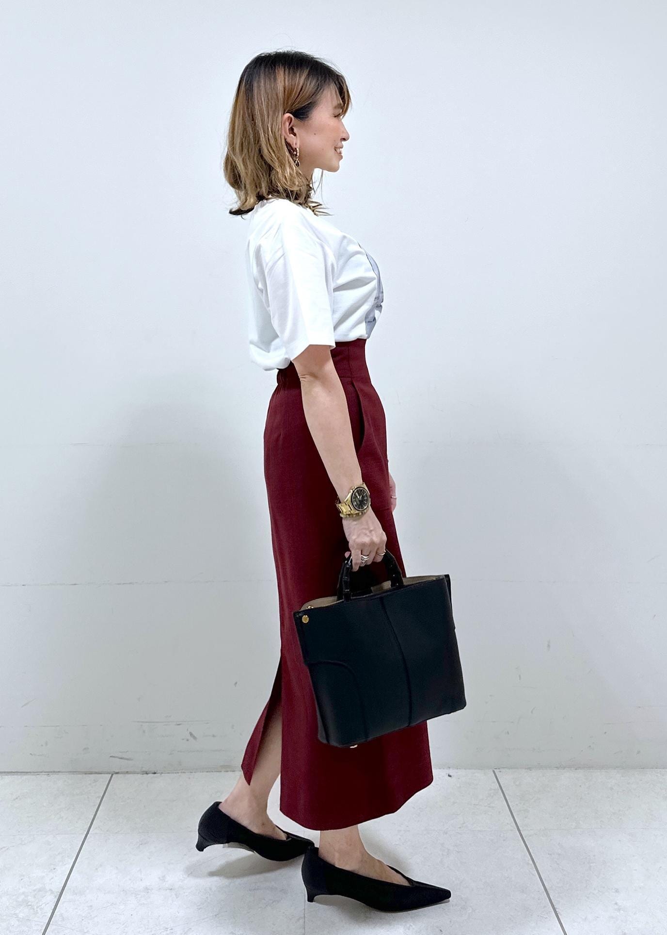 タイトスカートとTシャツで、キレイ目カジュアルコーデ