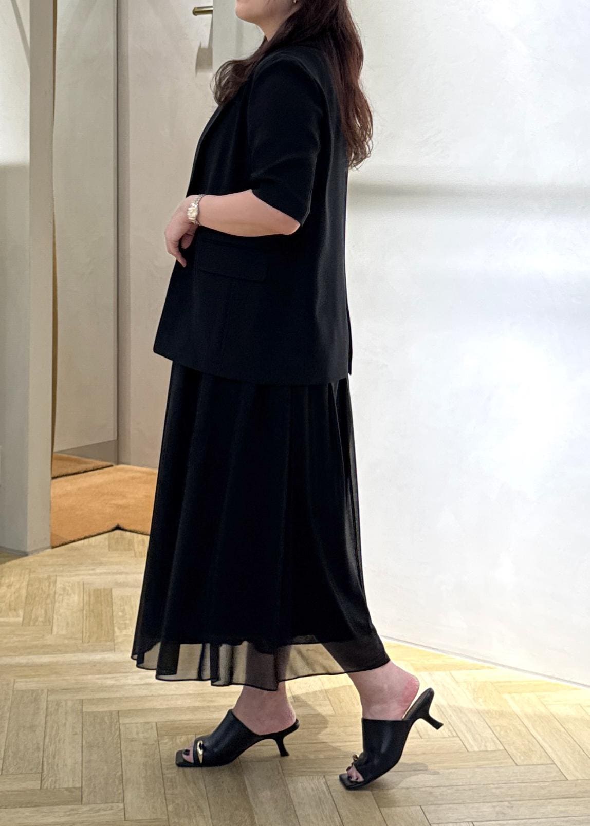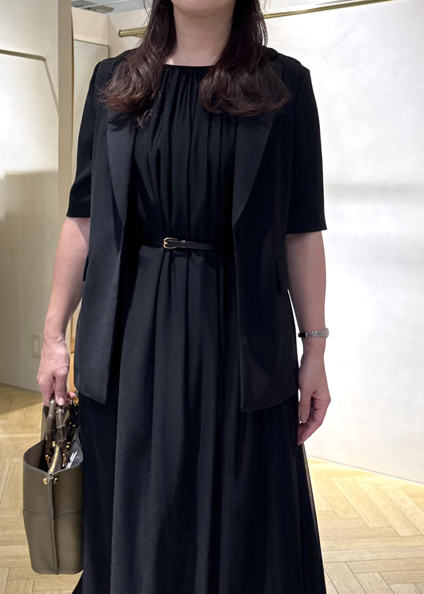シアーな夏感あるワンピースですがジャケット合わせで初秋までのスタイルも楽しめますよ♪